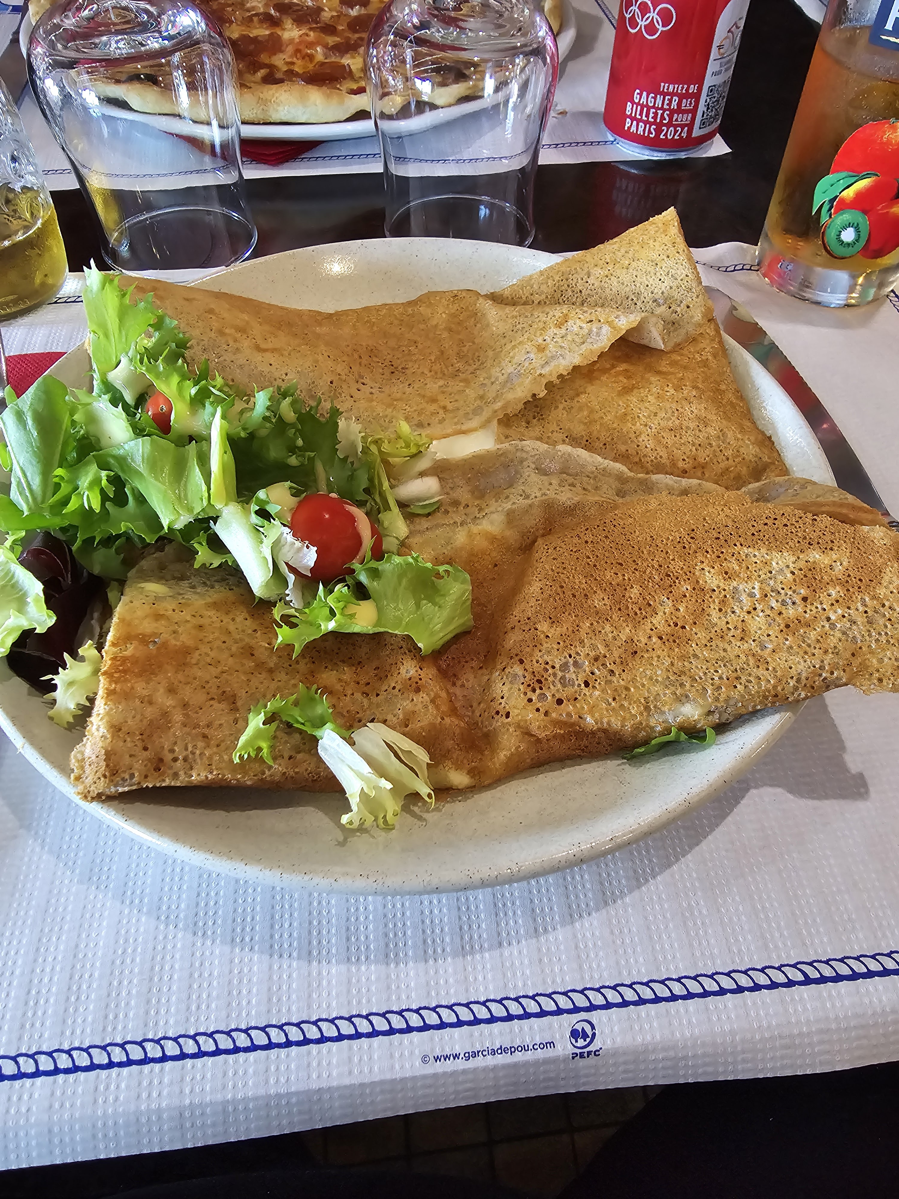Le restaurant ressemble plus à un piège à touristes qu à un restaurant.... La qualité n est vraiment pas au rendez-vous ! Pour ma part galette emmental / merguez sèche et froide, mon mari idem avec galette chorizo / merguez/ emmental. Les pizzas du couple dernière nous étaient apparemment degueu.... Bref coca / 1/2 pichet de cidre, 2 galettes, 1 badoit, 2 boules citron, 1 café liégeois et 2 cafés: 46€ ça reste sur l estomac
