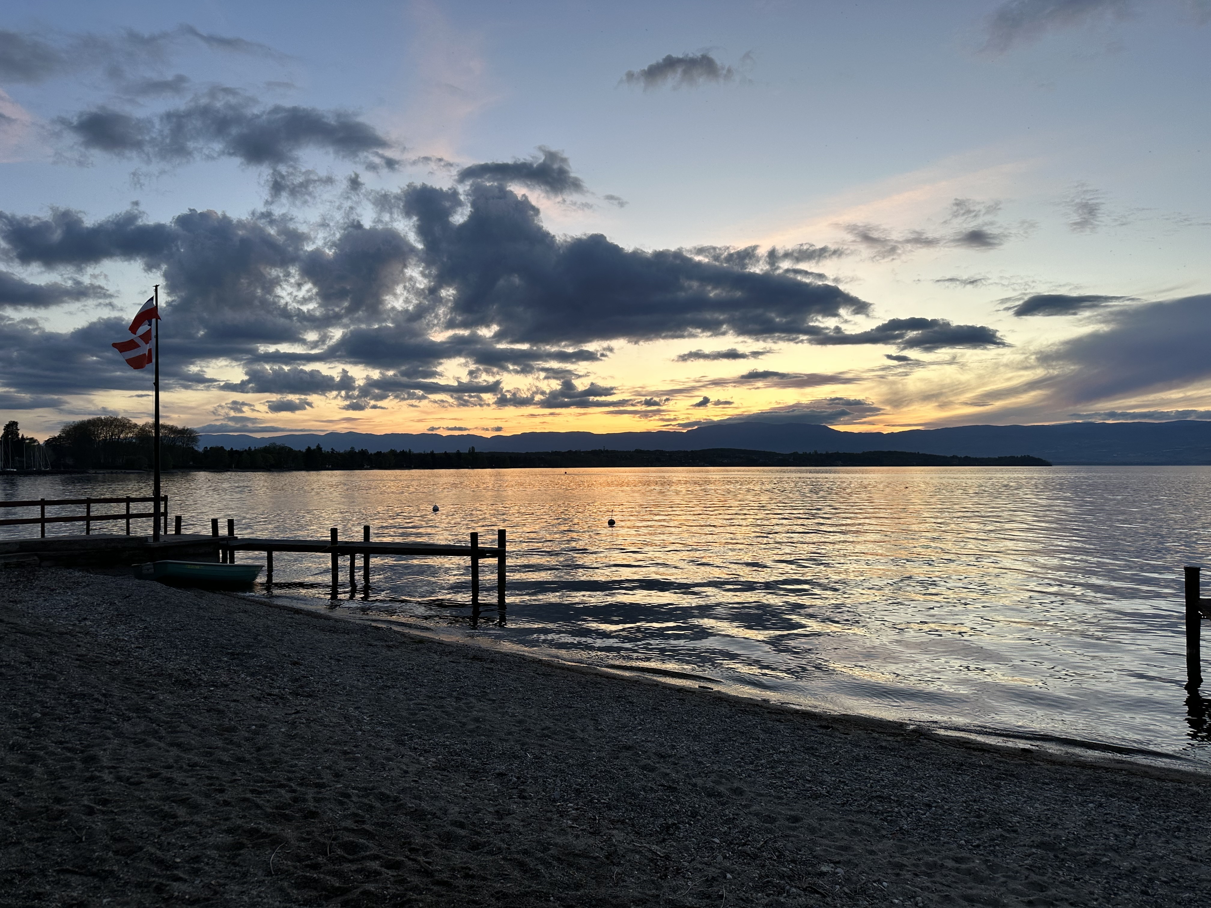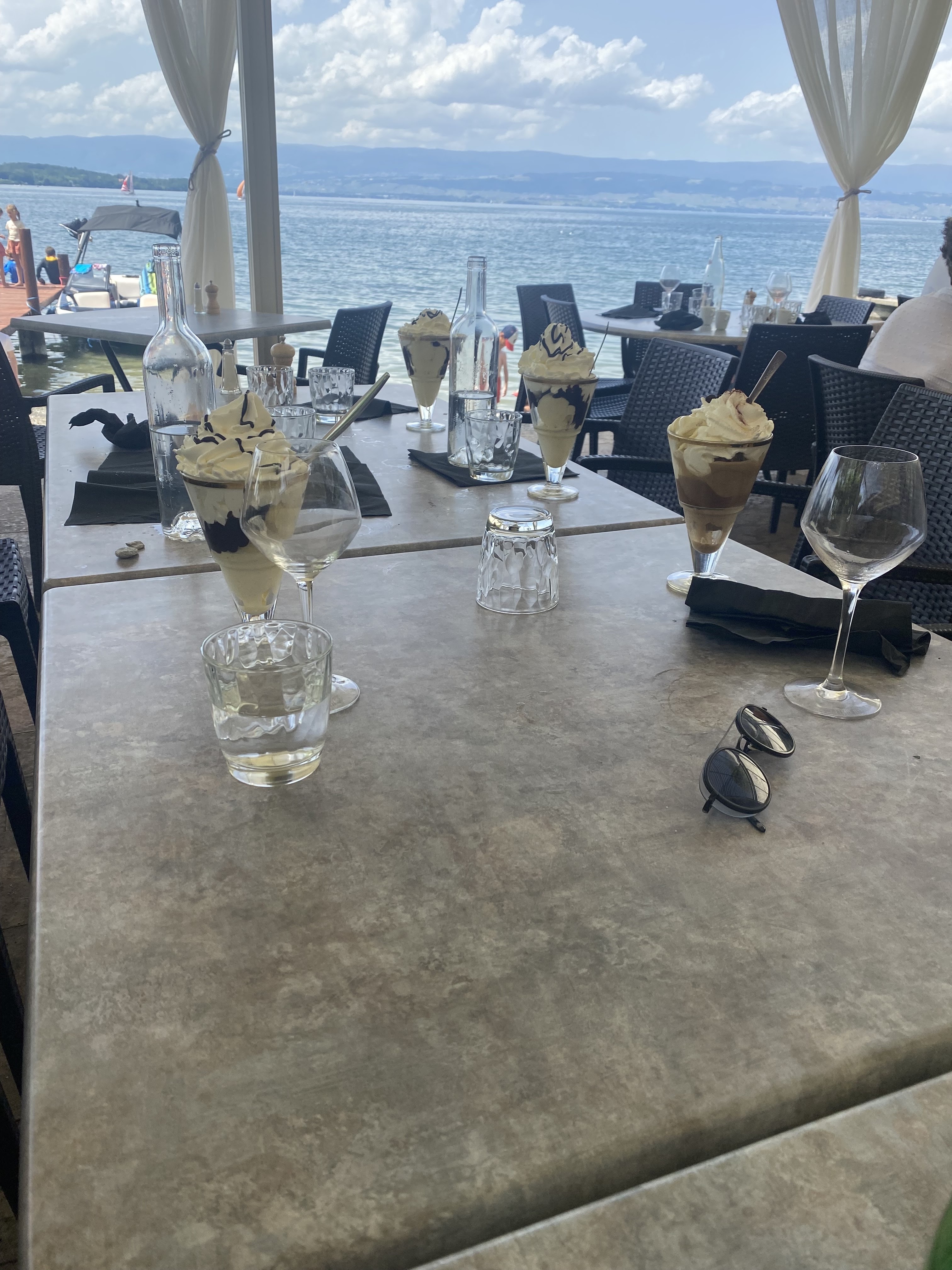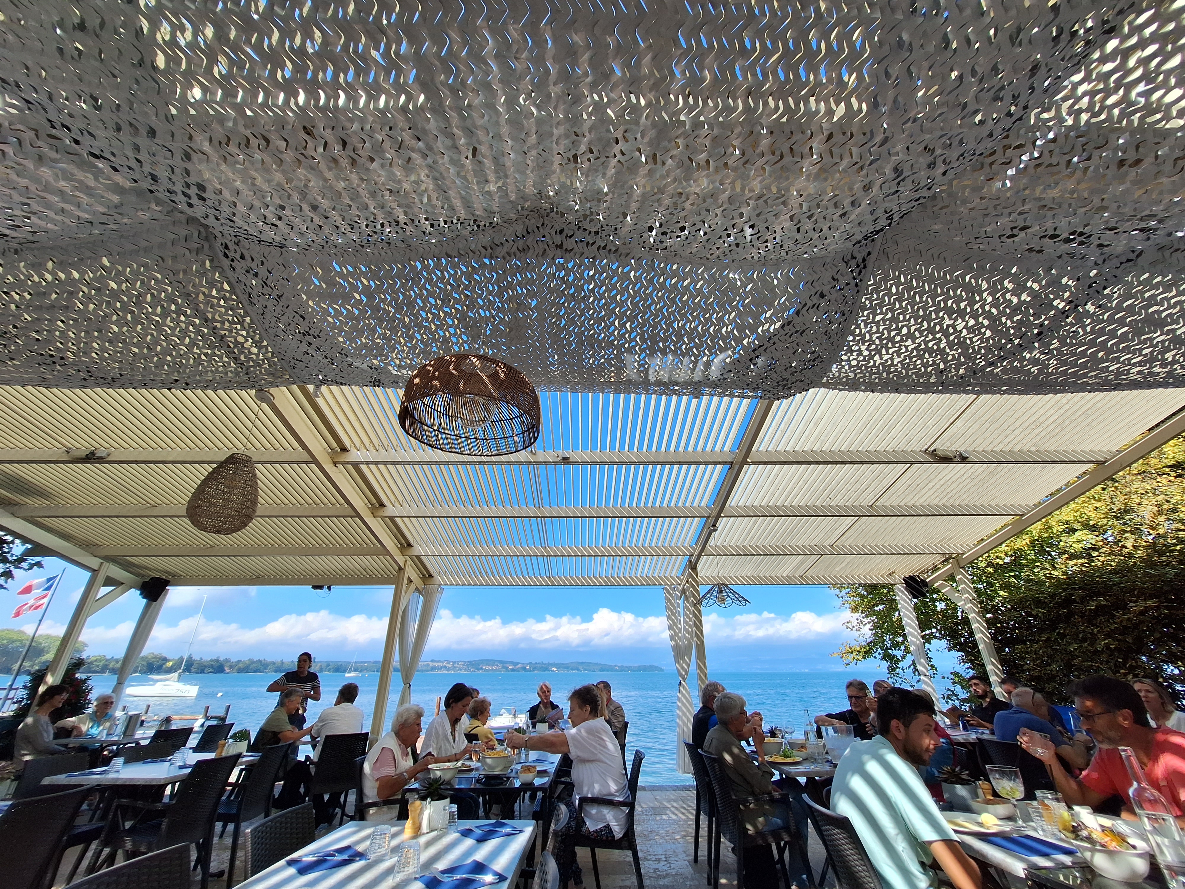 C'est un endroit fantastique au bord du lac Léman. Il regarde directement vers le coucher du soleil. Il y a beaucoup de monde et les serveurs semblaient un peu débordés, mais la nourriture était bonne.