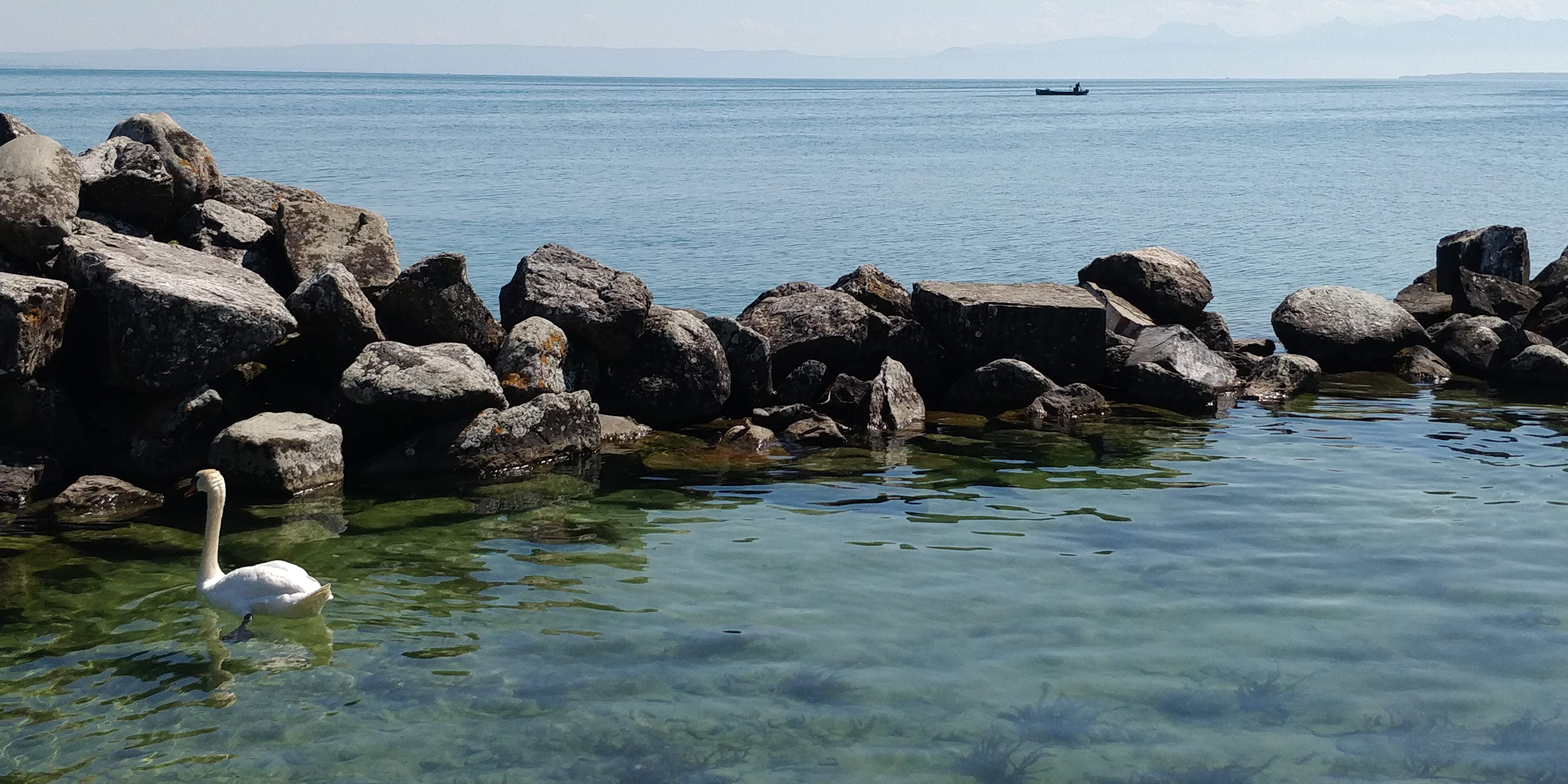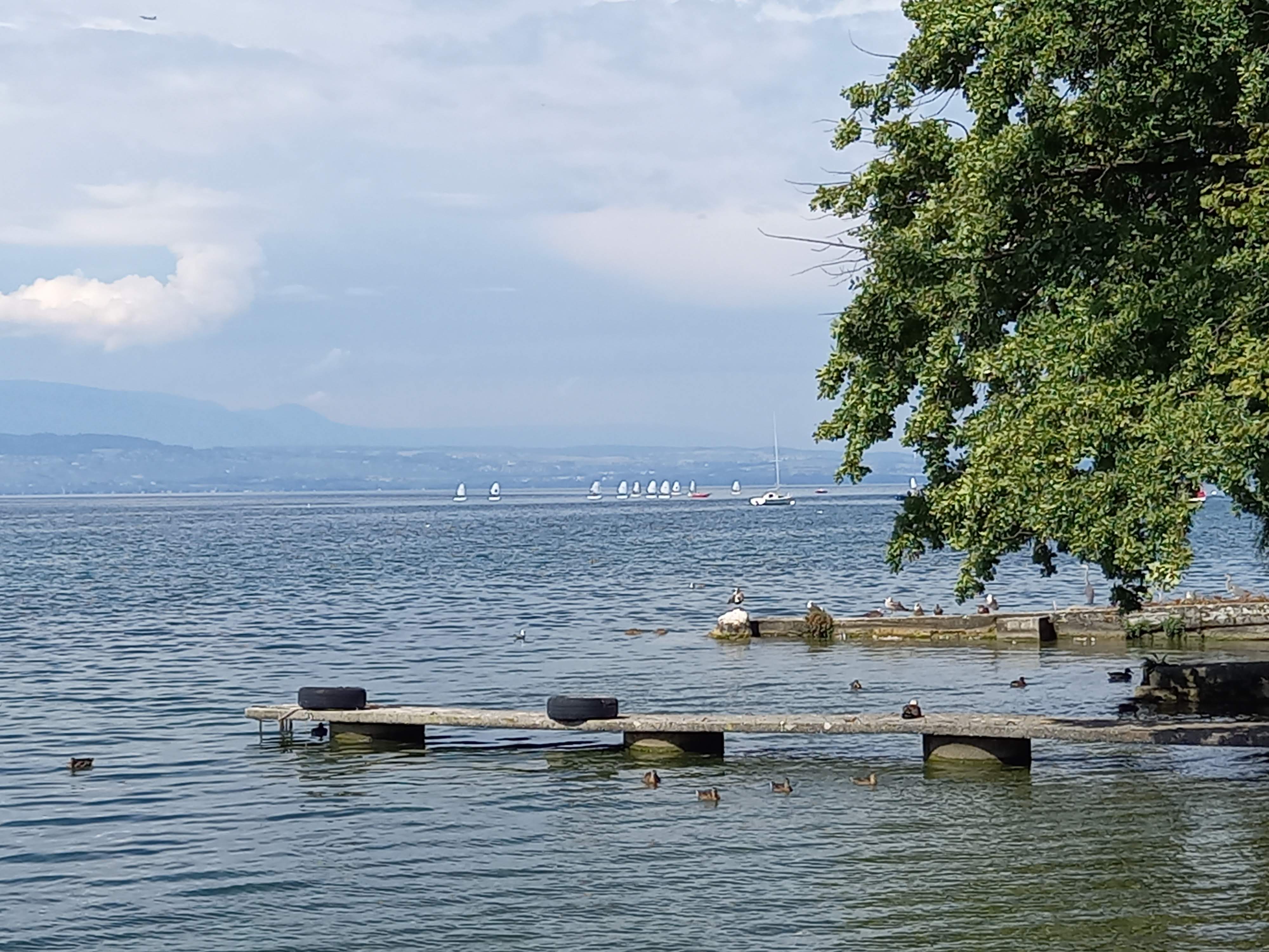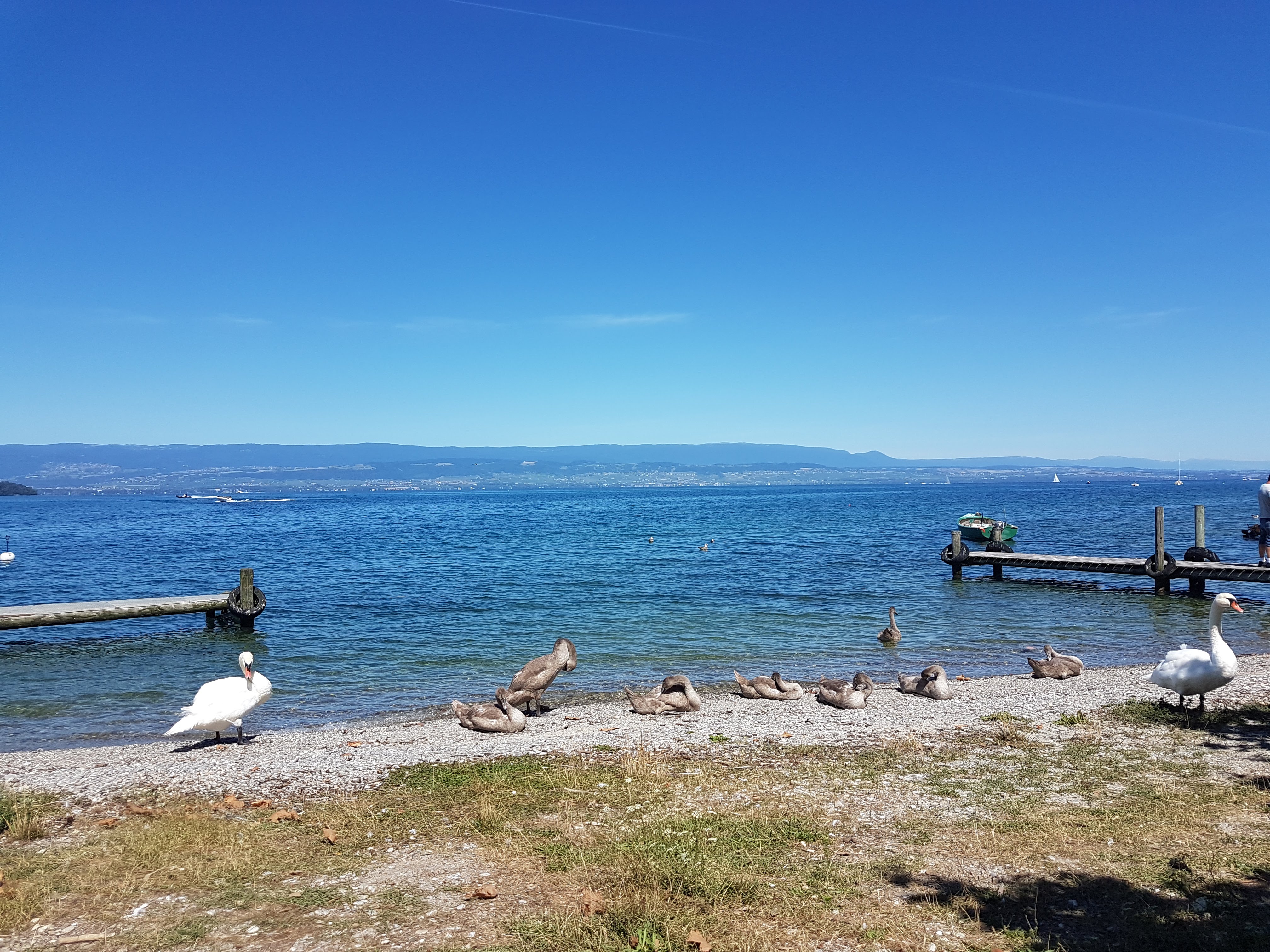 C'est un endroit fantastique au bord du lac Léman. Il regarde directement vers le coucher du soleil. Il y a beaucoup de monde et les serveurs semblaient un peu débordés, mais la nourriture était bonne.
