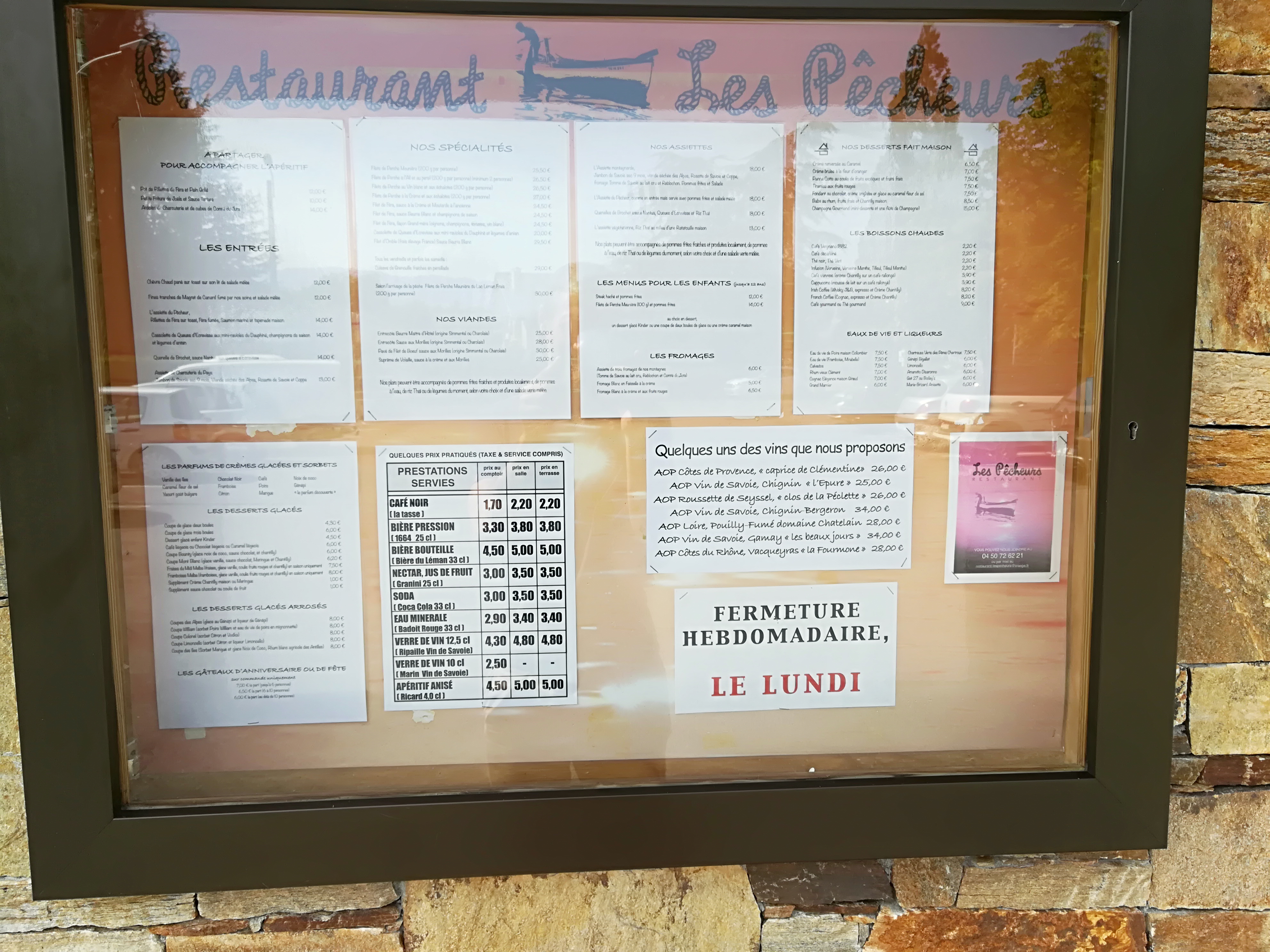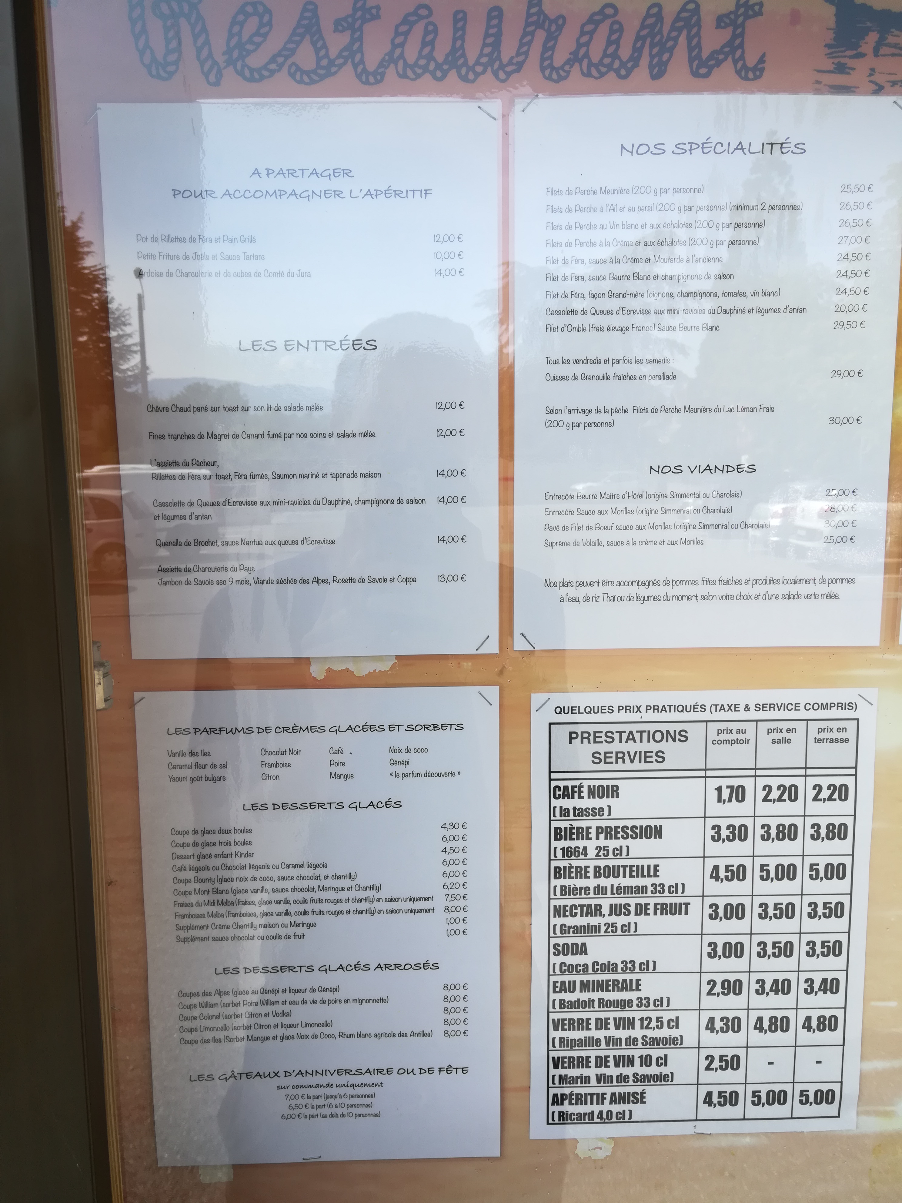 Bonjour , nous avions réservé trois jours en avance ayant vu sur votre pancarte perche du lac grosse déception au moment de la prise de commande . .. votre poisson de lac ne vien pas de lac,certainement surgelé mais en plus il vien de Pologne ( affirmation de votre serveuse )bof bof quand le fait maison et produits locaux sont a l'affiche :( ! 30€ la petite portion de poisson qui vient de l'autre côté du globe encore une fois bof . Des touristes se sentant légèrement duper