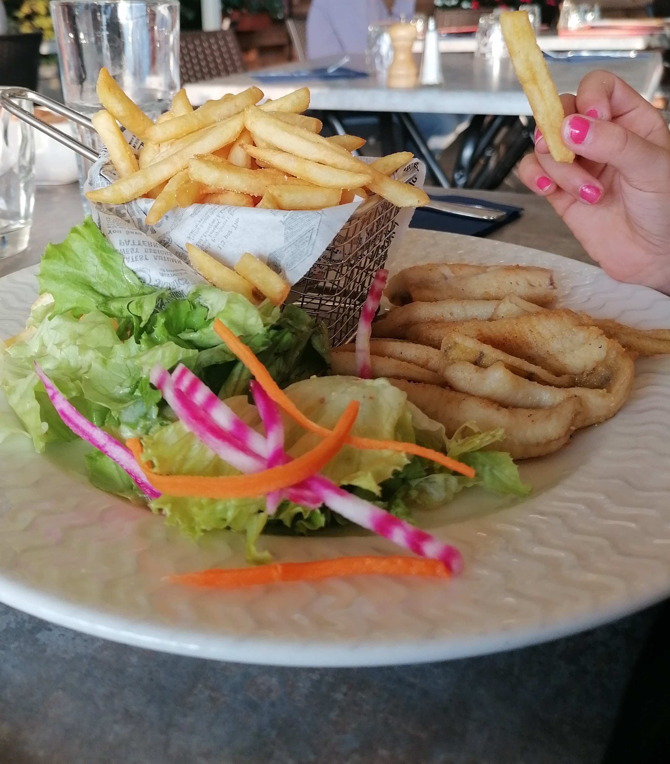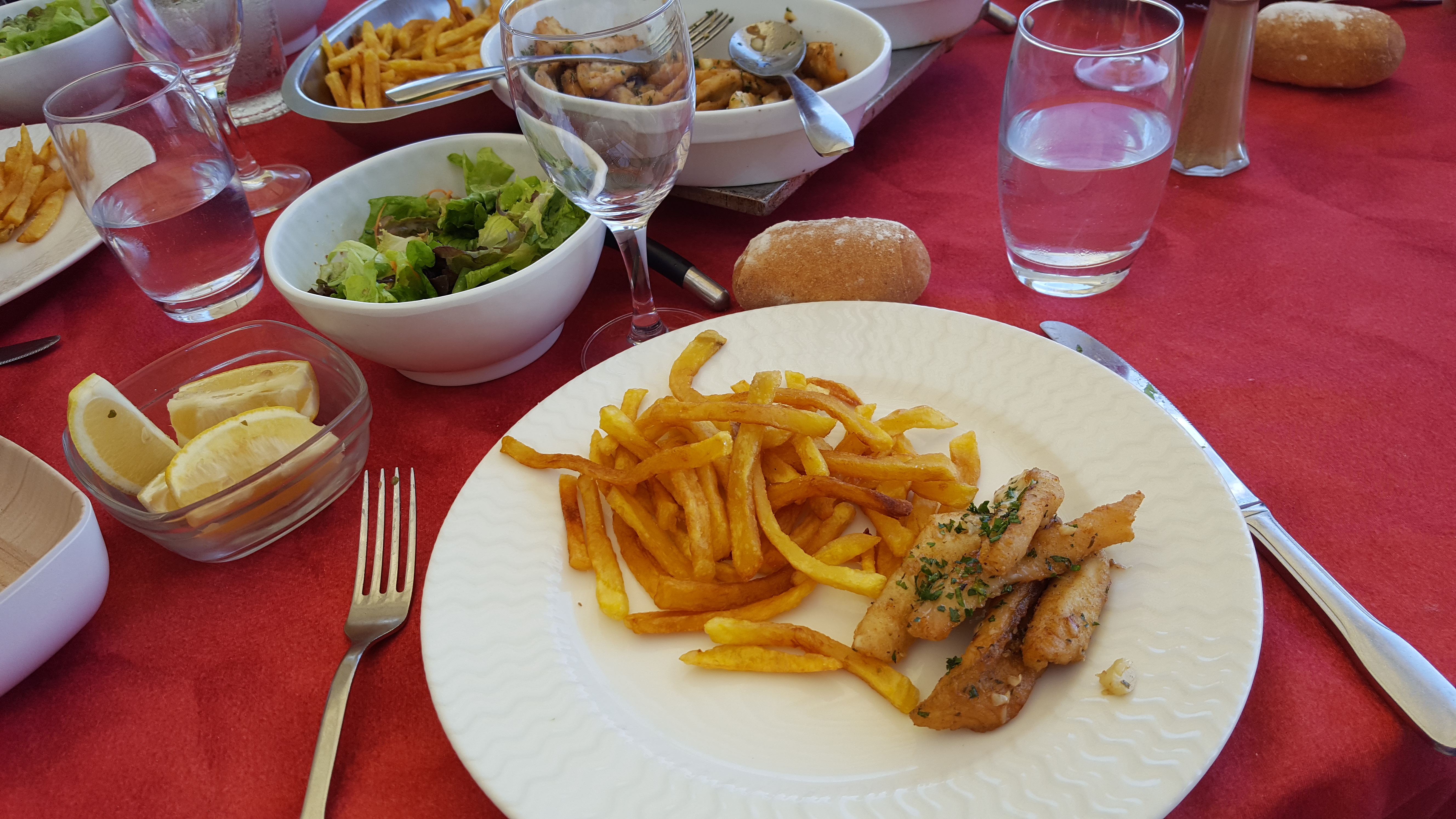 Nous y avons dîné en couple un soir. La terrasse au bord de l'eau, le cadre, le calme... Un vrai bonheur! Le poisson est délicieux et bien cuisiné. Le service est agréable. Pour ceux qui se plaignent d'attendre, il n'est pas possible de servir du poisson cuit minute à toute une terrasse aussi vite qu'au fait food ;) Un peu d'attente avec une jolie vue ça fait aussi partie du plaisir du restaurant ^^
