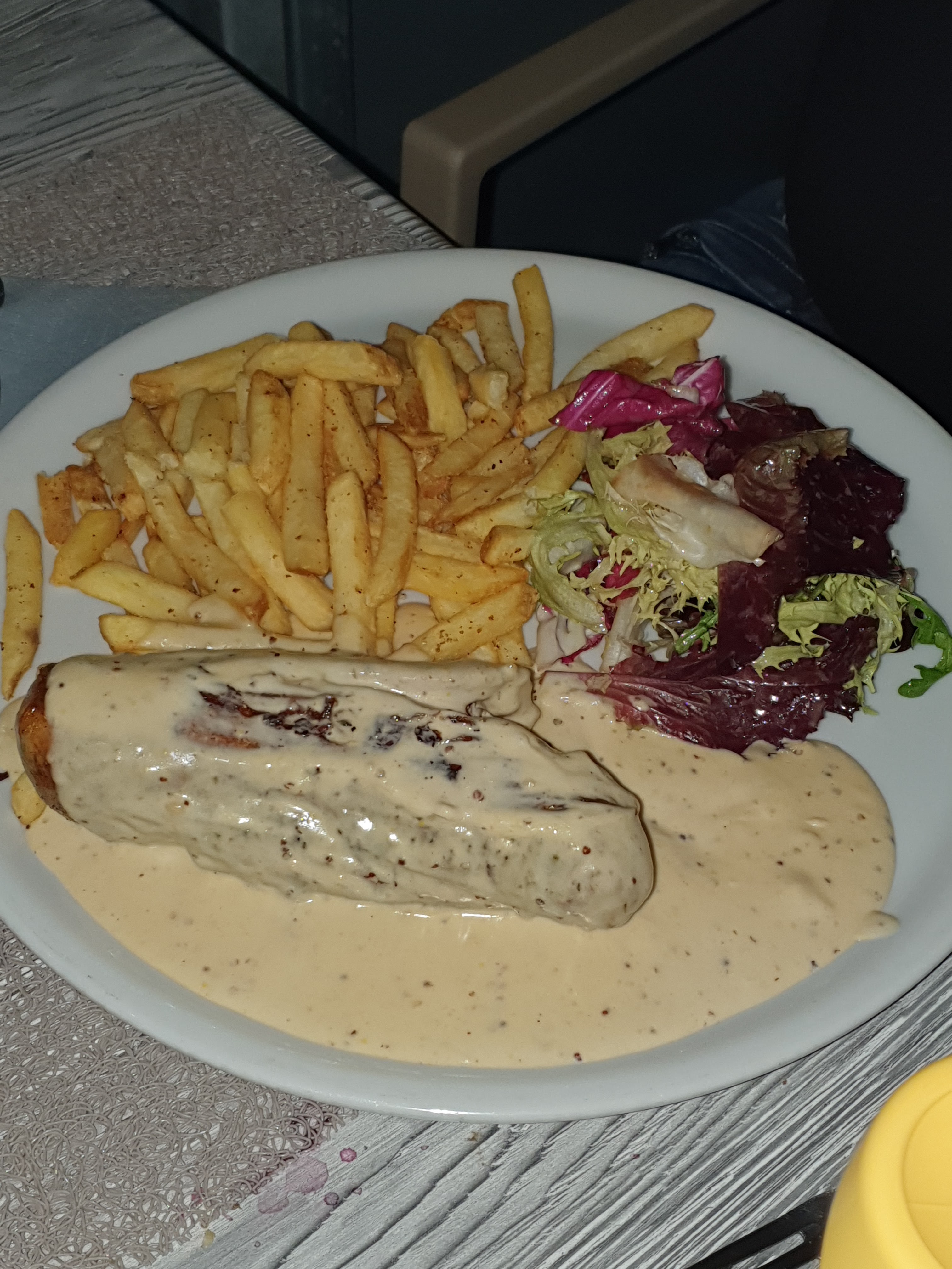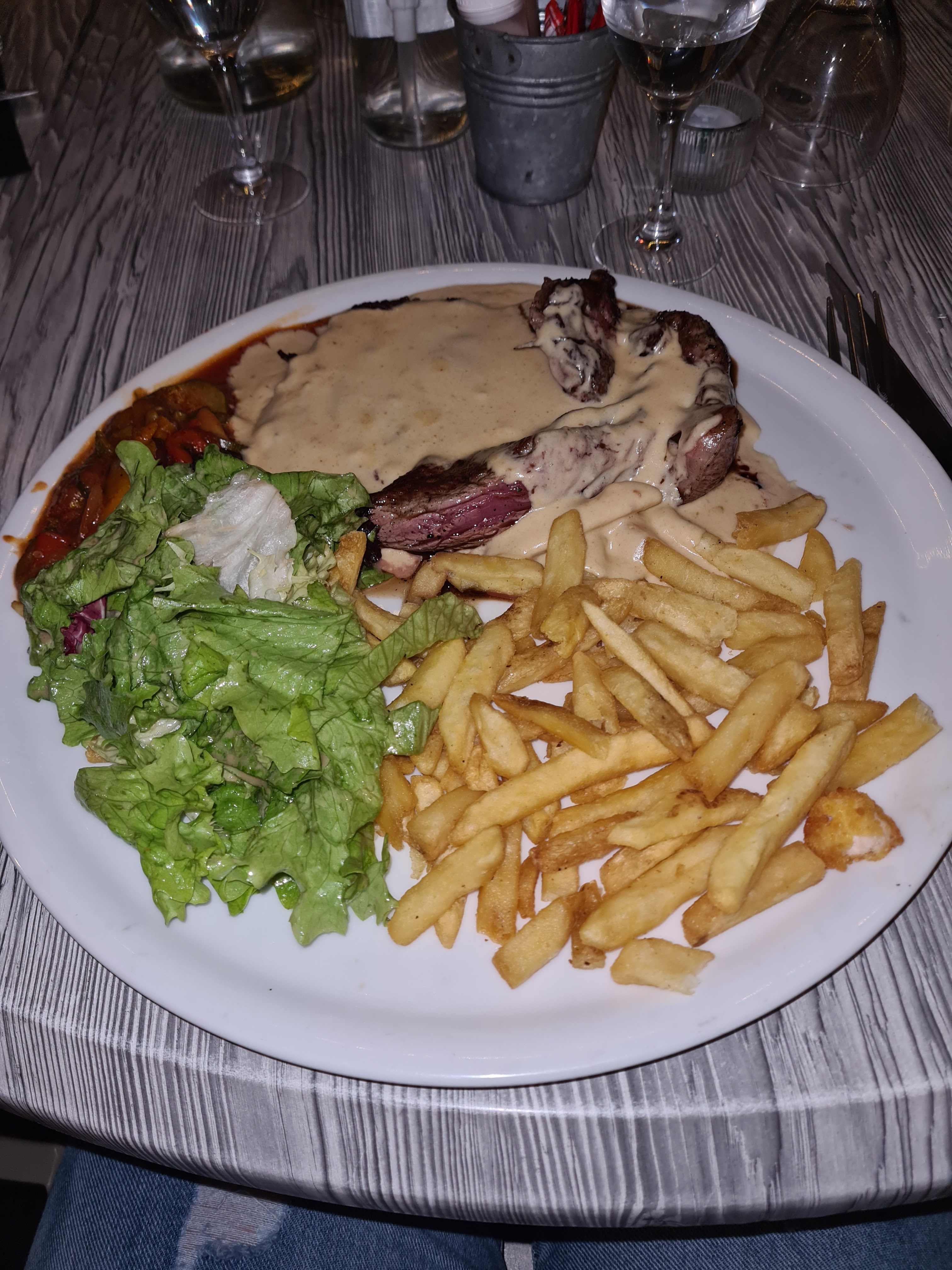 Obligé de mettre une étoile malheureusement. Service déplorable servi 1 a 1. Première personne avait fini que la dernière n’avait pas commencé. Escalope avec plein de nerf. Les moules pas du tout le goût du roquefort mais de la crème. Pizza pas cuite sois disant elle a du baigner dans la crème. Enfin fuyez si vous voulez perdre votre argent