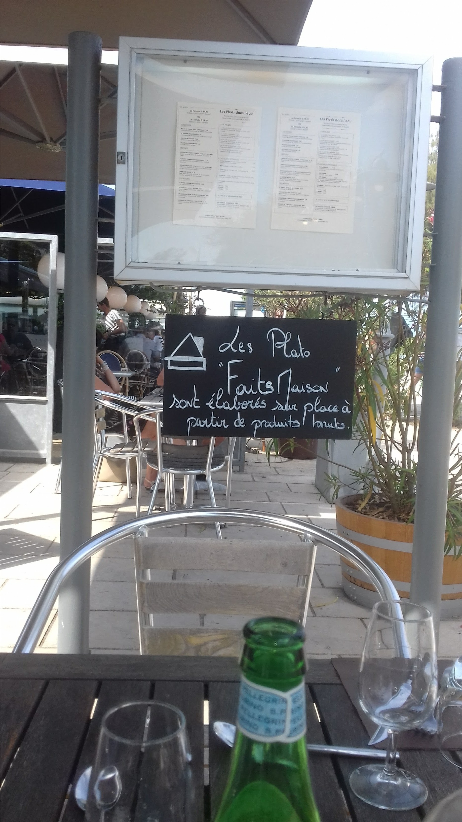 Les pieds dans l'eau, joli restaurant avec une cuisine fine et recherchée nous propose un menu de qualité à prix abordable. Belle carte des vins, menu unique avec 4 choix pour entrées, plats et desserts (le bon compromis entre choix et qualité), un accueil sympathique, une belle position à La Flotte avec vue sur la mer et à 2 pas du port. Je recommande vivement ! Attention cependant aux horaires indiqués sur leur site et leur Facebook : ce ne sont pas toujours les bons. De plus les horaires de service ne sont pas très étendus : mieux vaut donc réserver pour être sûr d'avoir une table. Mention spéciale pour l'excellent Gaspacho de tomate et basilic avec glace à la moutarde de Meaux en entrée. Puis pour le fondant au caramel à la fleur de sel (à tomber) en dessert. Il ne manque plus qu'une formule entrée/plat/dessert pour ravir les grands appétits ! Nous verrons ça en septembre :-)