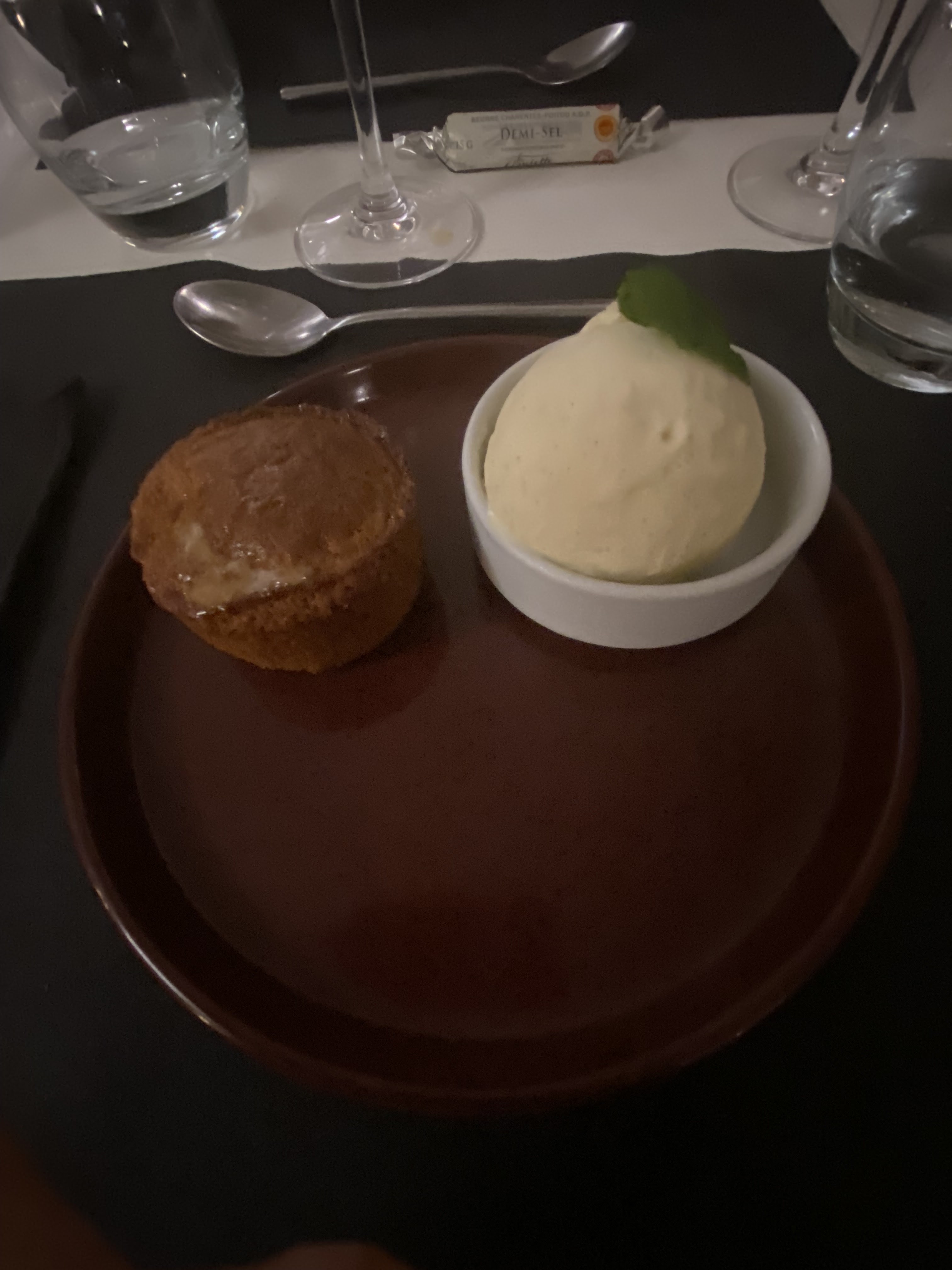 Des plats originaux simples et bons. Éclair chèvre sympa mais trop de chèvre à mon goût. Soufflé de st Jacques très bon mais plutôt flan Fondant au caramel excellent Service un peu triste mais peut être le début de la saison. Pensez à la carafe d eau. Nous reviendrons tester le reste de la carte 😉
