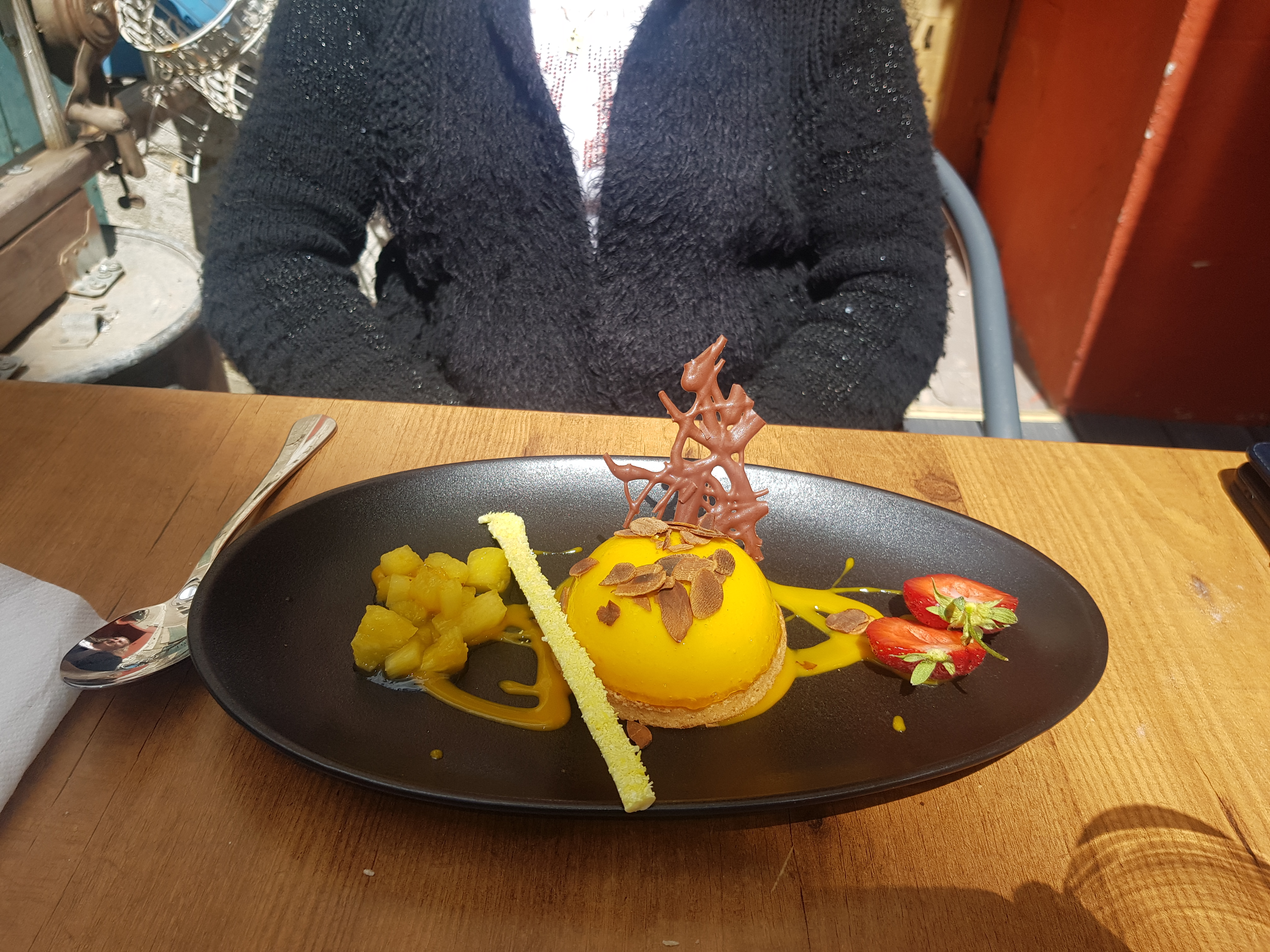 Excellent repas, qui s'est terminé sur un dessert (dôme exotique fruits rouges) qui vaut des félicitations !