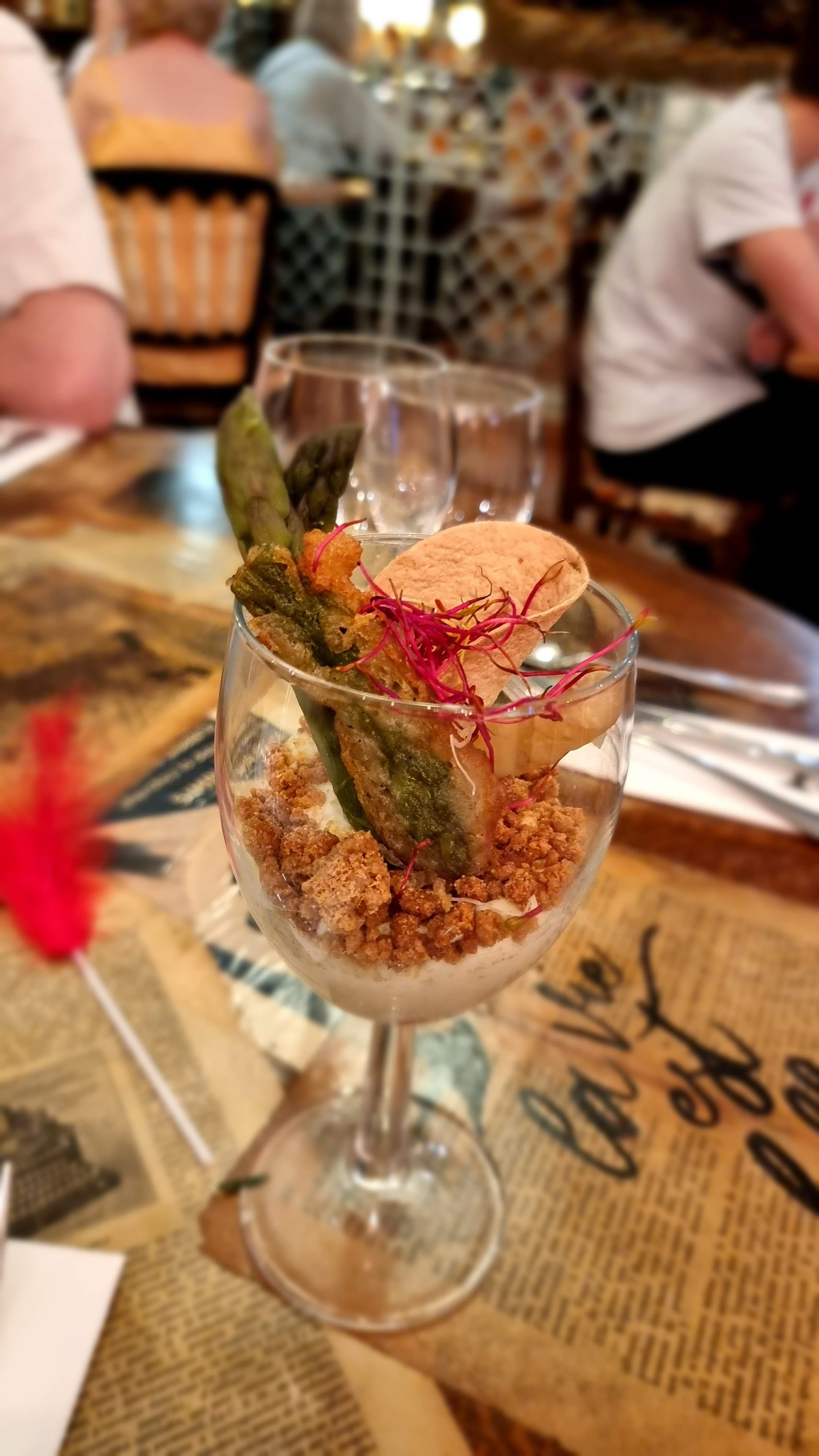 Nous y sommes allés hier soir . Ambiance et cadre très agréable, déco soignée j'aime beaucoup. Le service pro et chaleureux. Repas 3 omnivores et 1 végé Entrée de légumes du soleil, jolie assiette et bon Plat : une omelette aux asperges , On ne m'a pas demandé la cuisson mais elle était bonne. J'aurai aimé une petite salade pour compléter mon plat principal. Le dessert était bon. Il.ne restait qu'un seul.baba dommage on en voulait tous. Les plats pour omnivores, : Entrées très bonnes à 10€ Plats principaux : le bar de ma mère était remplit d'arrêtes et le bœuf était trop cuit . La tartine de poisson cru était visiblement bonne. Les cafés mystère aussi. Globalement une bonne cuisine, mais peu faire mieux et un.peu chère à mon goût. J'aime qu'il y ait du whaou.