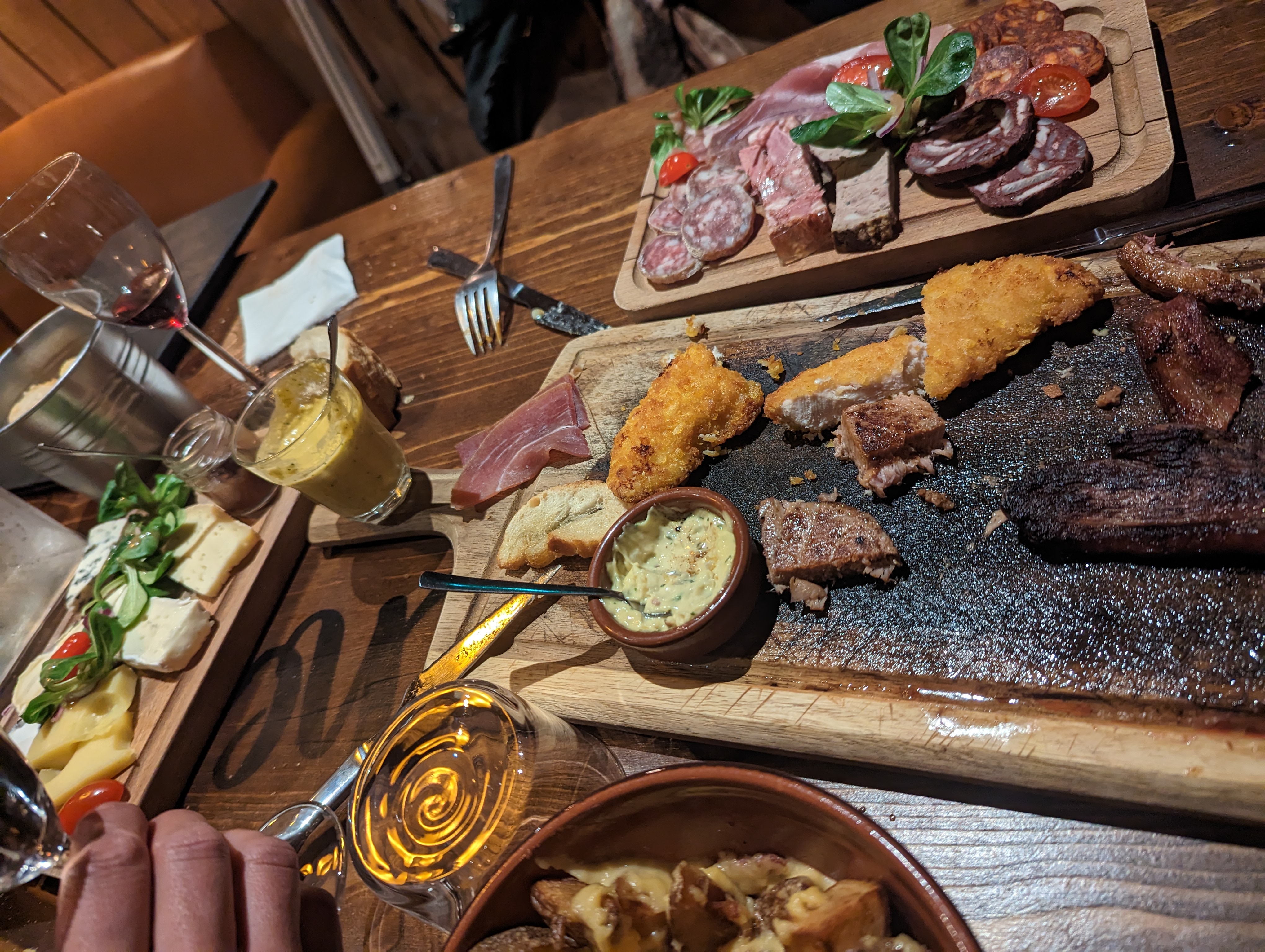 Planches bonne dans l’ensemble, nous avons bien aimé dans la globalité, le lieu est très sympa. Les plats fait maison sont vraiment super bon notamment le camembert pané mais nous avons trouvé un petit peu dommage que les tenders ne soit pas accompagnée d’une petite sauce ou d’un petit mélange d’épices peut-être qui fait qu’ils sortent de l’ordinaire mais ils étaient tout de même bon. ensuite nous avons trouvés les formage et charcuterie un peu trop salé à notre goût.