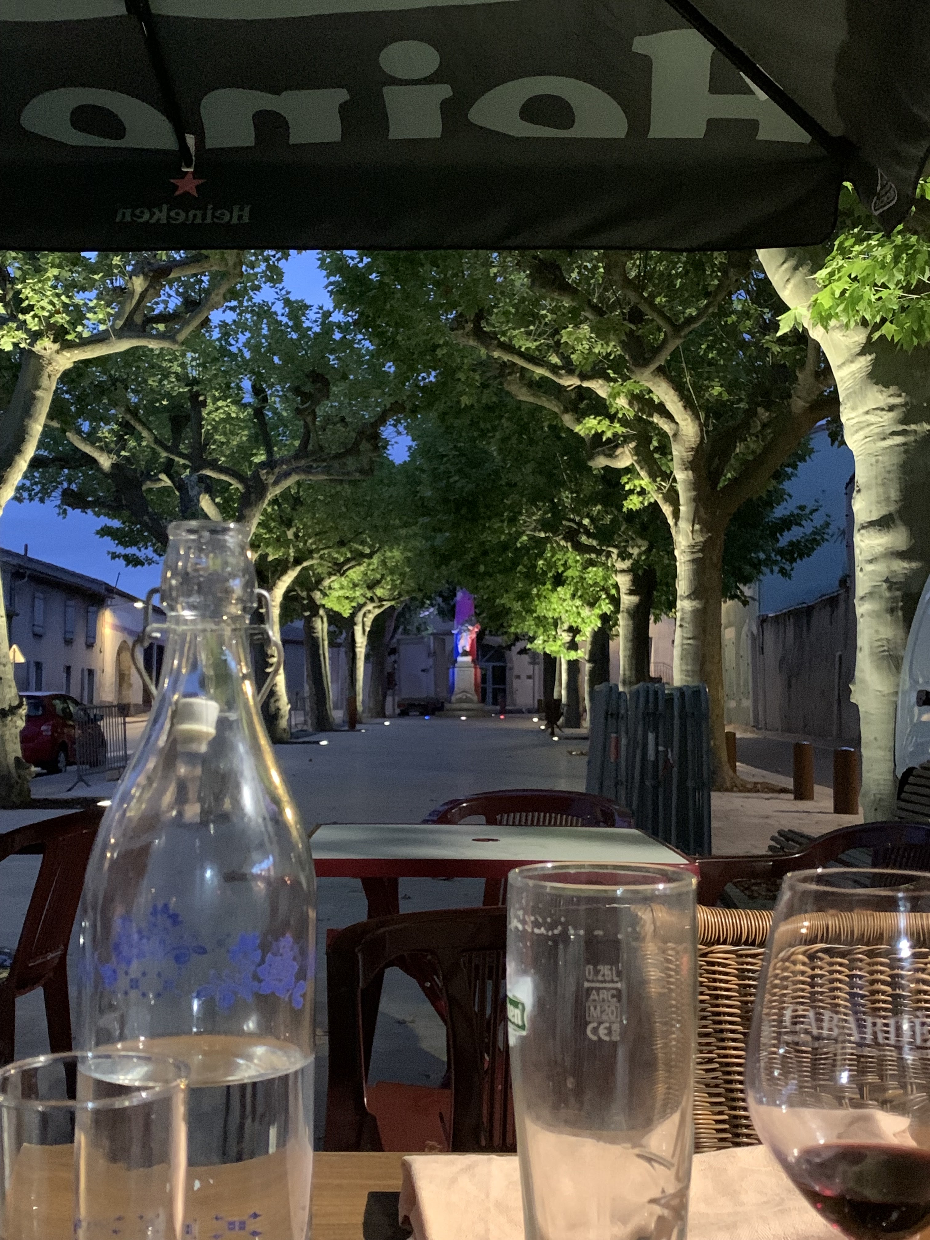 Très sympa de manger sur la place, à l'ombre des platanes