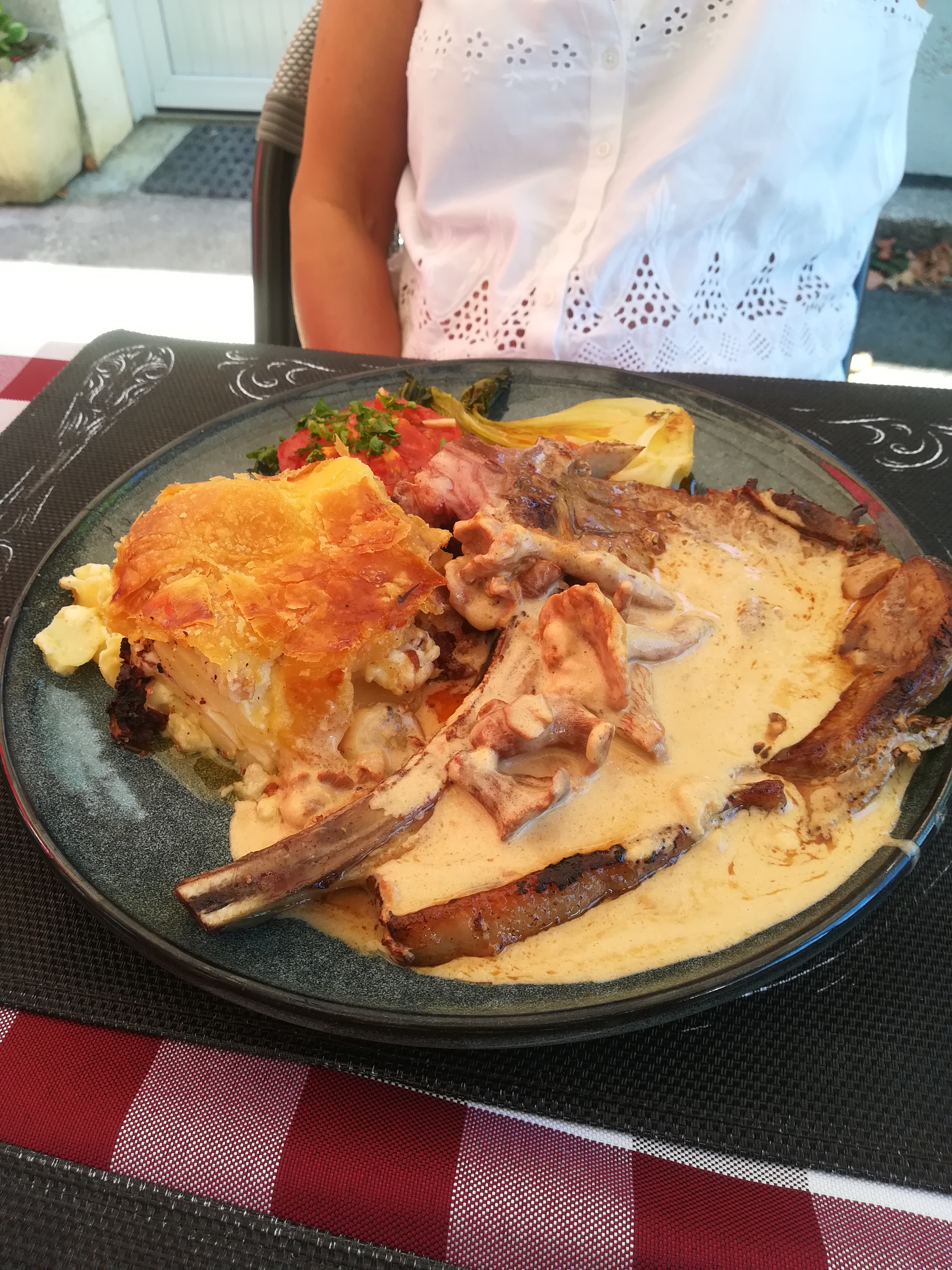 J'aurais donné 5 étoiles mais le manque d'options végétariennes laisse tomber ce lieu. Ils ont accueilli le seul légume sur notre table en préparant une omelette et des frites avec de la salade comme plat principal, mais en comparaison avec le luxe des plats de viande et de poisson, c'était un peu décevant. Le personnel est vraiment adorable, le lieu est pittoresque dans une sorte de place de village près d'un monument aux morts. Un cadre vraiment joli. Je le recommande mais attention c'est un peu cher !