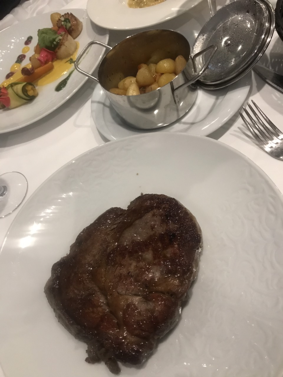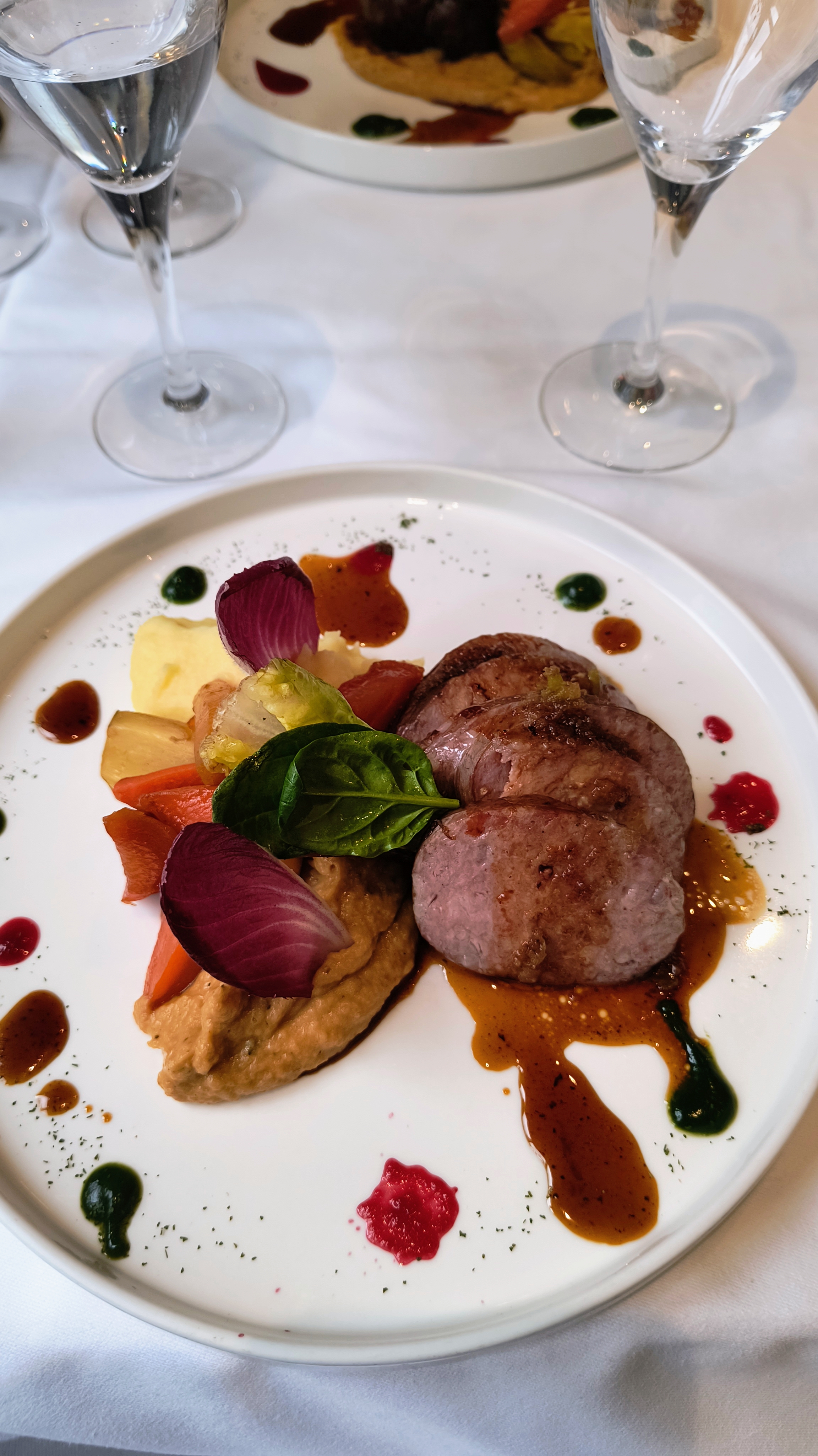 Dîner absolument magnifique. Agneau et filet de steak parfaitement cuits et délicieux desserts. Je le recommande vraiment :-)