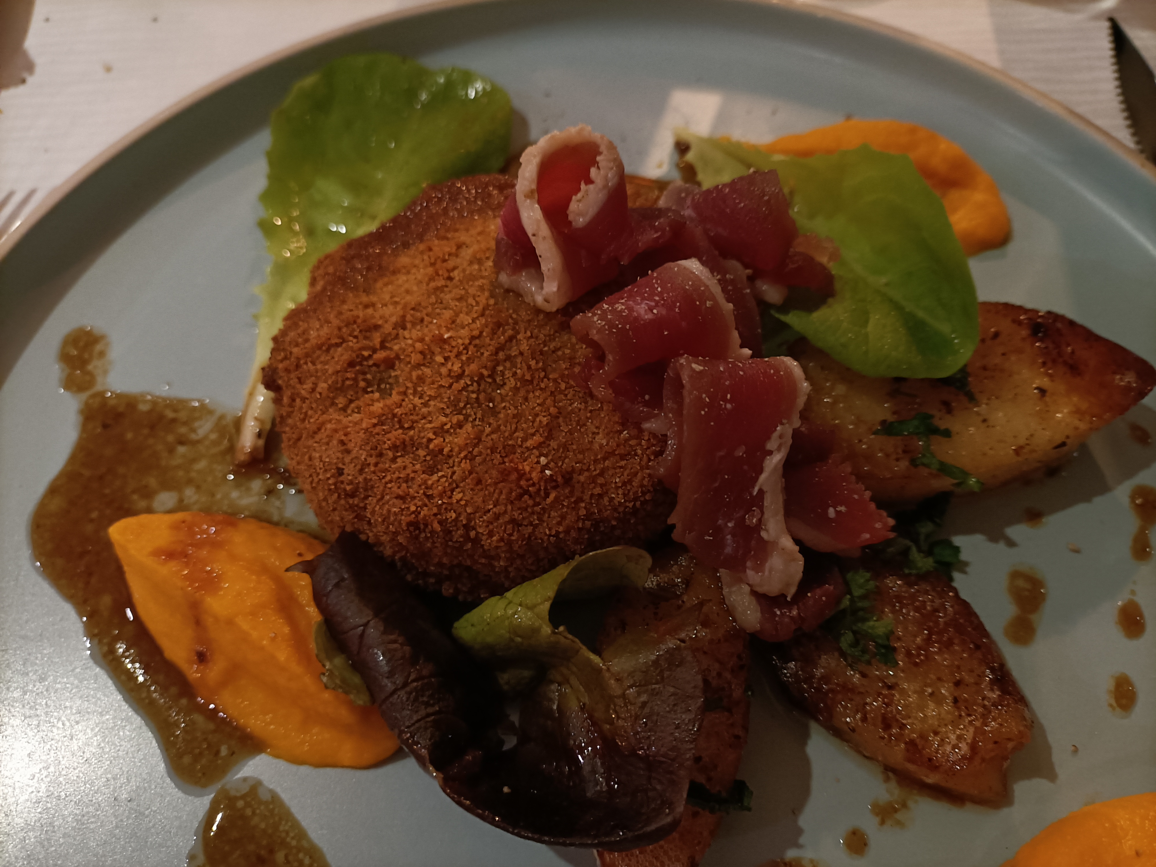 Un lieu un peu perdu... Et au final quele découverte. De la vraie belle et bonne cuisine. Beaucoup de saveurs! De la cuisson à l'assiette, je recommande sans retenue. Et le dessert au kiwi une dernière note de haut vol.