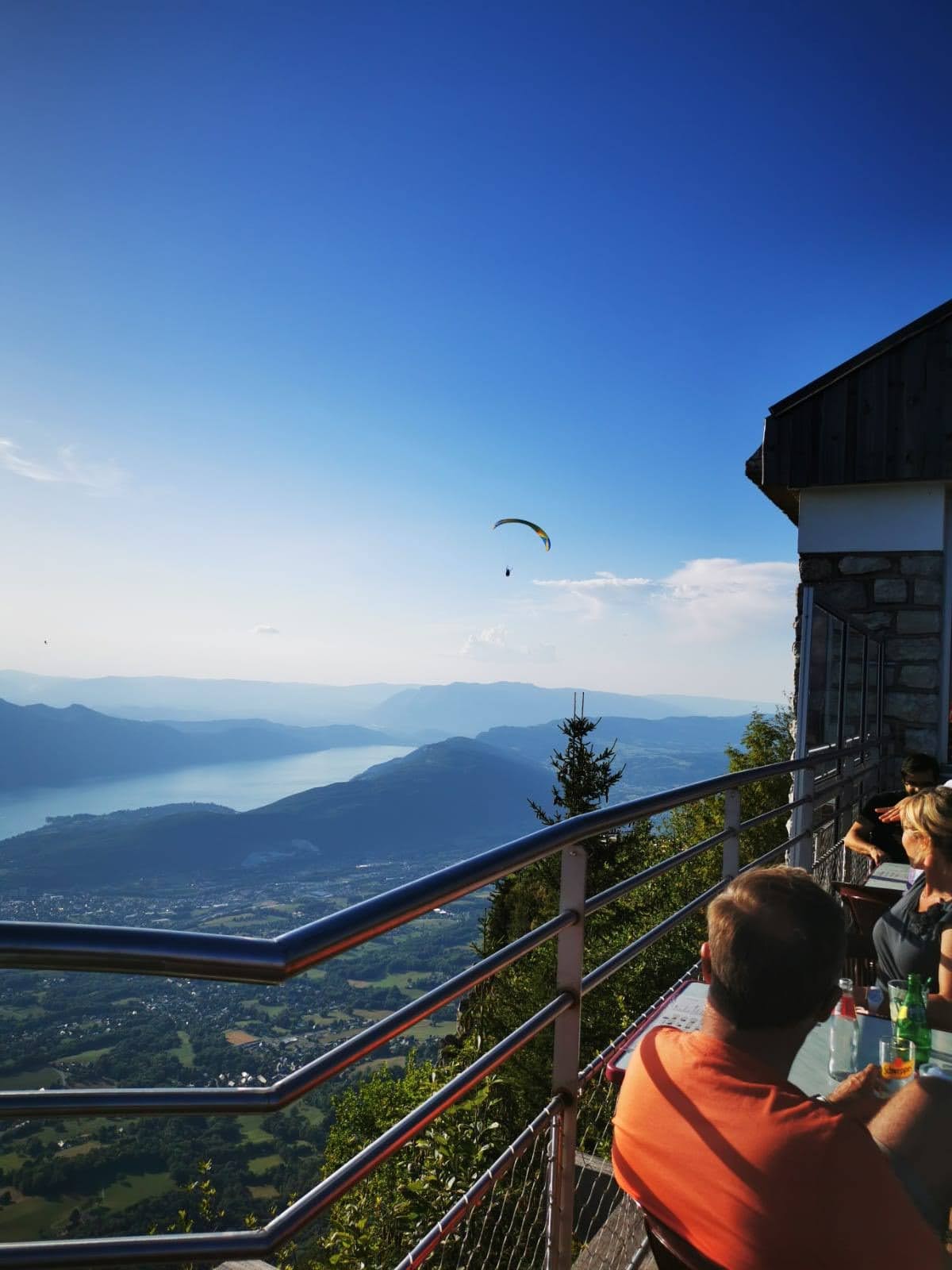Restaurant les quatre vallée sur vue et très beau panorama avec une très belle terrasse de temps à autre un parapente sur vol le belvédère.
