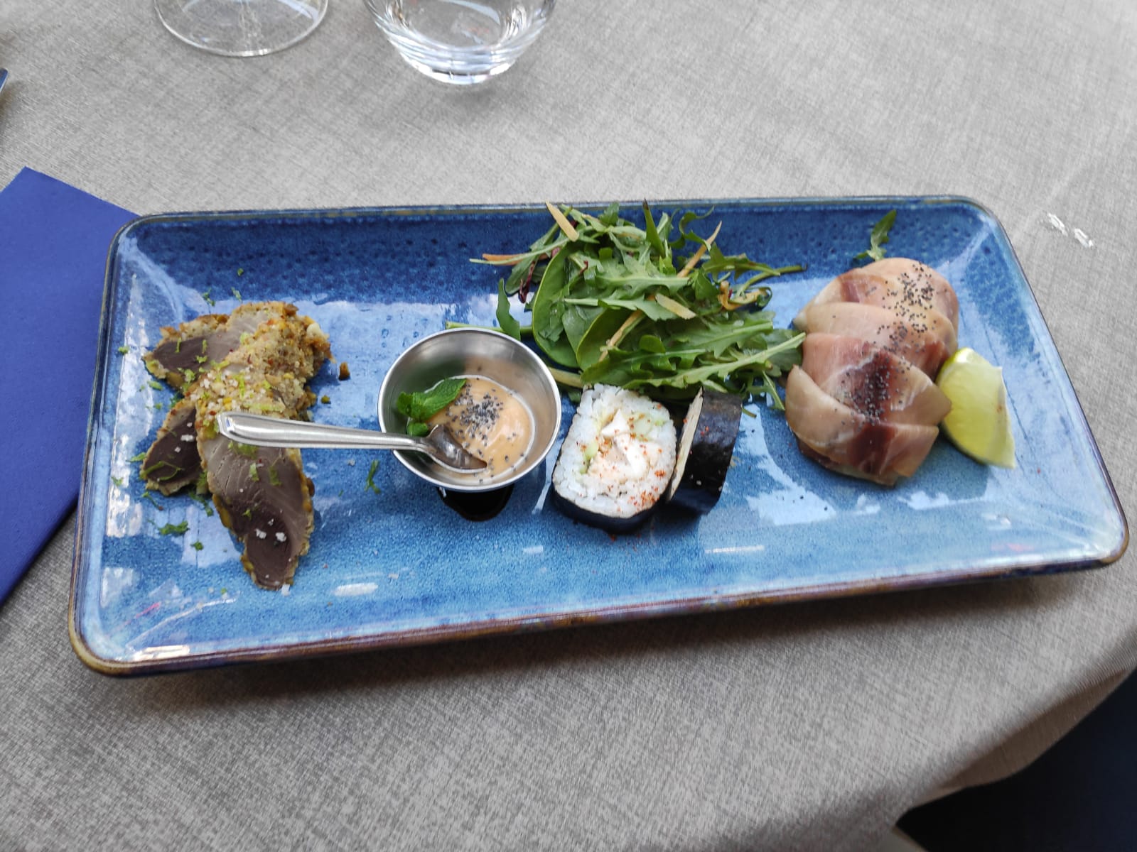 Nous avons passé un très bon moment dans ce restaurant où la cuisine est très bonne et les serveurs forts sympathiques et professionnels. Restaurant tout de même cher, pas pour toutes les bourses. Nous avons pris la trilogie de la mer et le poisson de la pêche du jour. Nous recommandons.