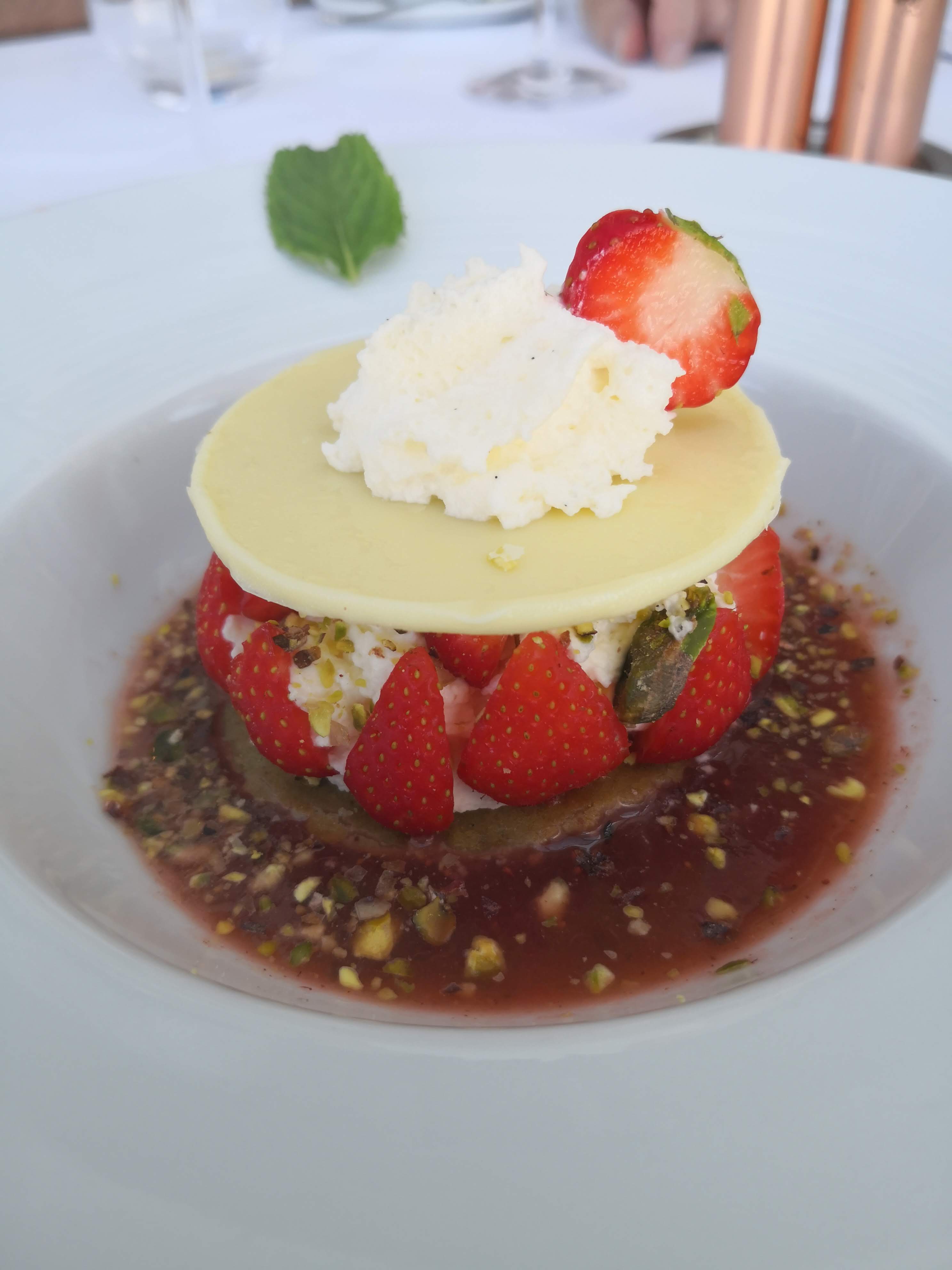 Du début, avec les moules farcies en passant par le filet de bœuf cuit à la perfection malgré une cuisson à point et en terminant par un dessert plus que parfait : le fraisier à notre façon : chocolat blanc, soupe de fraise, chantilly et pistaches, 5 étoiles avec un service attentionné. Vraiment une très bonne adresse, je recommande vivement de s'y arrêter mais surtout d'y retourner !