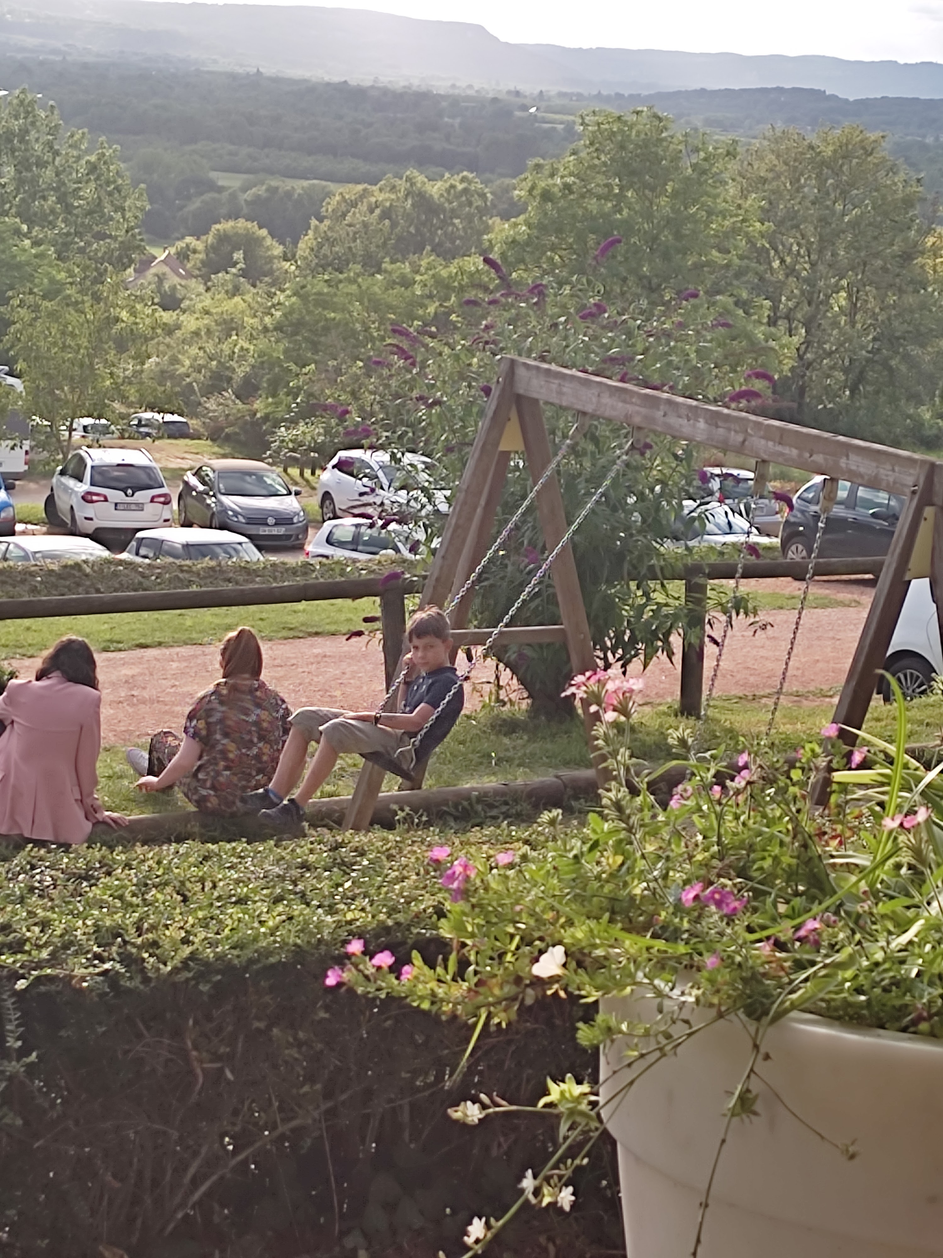 Pris en charge juste avant la fin du service du midi, à 6, nous avons été accueillis et servis avec un même niveau de professionnalisme qu'au démarrage. Repas au top, belle terrasse, vue imprenable sur le chateau et jeux extérieurs pour enfants