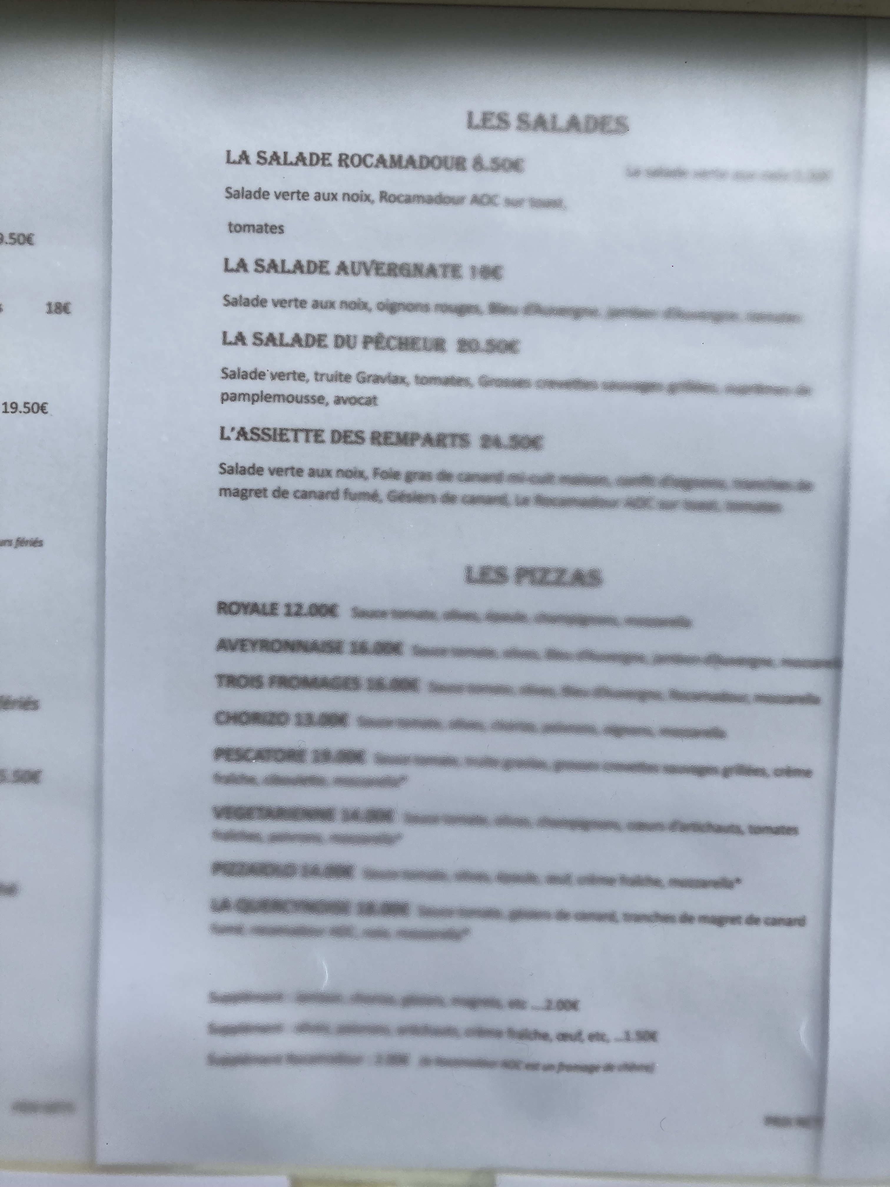 Pour manger une salade verte ,je la mange à la maison En ce qui concerne l'assiette des remparts les gesiers 3 petits morceaux, le magret absent 21€ pour beaucoup de salade, un RocAmadour,2 médaillons de fois gras aurevoir et à jamais. Et plus jamais je conseillé ce restaurant Seul le cadre les honore,mais c'est tout et en plus je suis du coin!!!!On profite du touriste . Le cadre fait pas tout