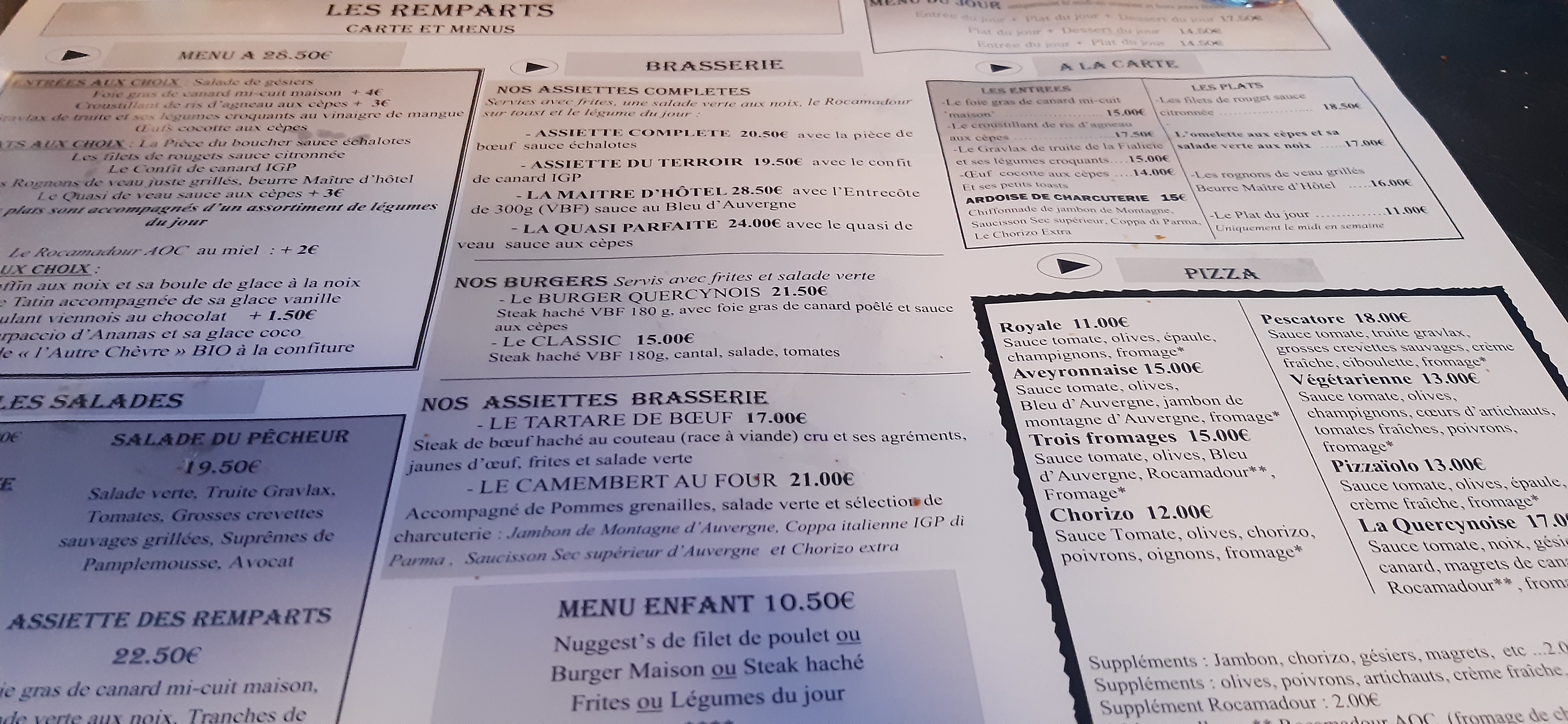 A peine arrivé, DIM 13AOUT 023 en sortant de la visite du château. En consultant la carte. Une des serveuses critiques les Aoûtiens. Ca ne nous a pas donné envie de manger au Resto ! Nous avons donc était dépenser notre argent ailleurs !