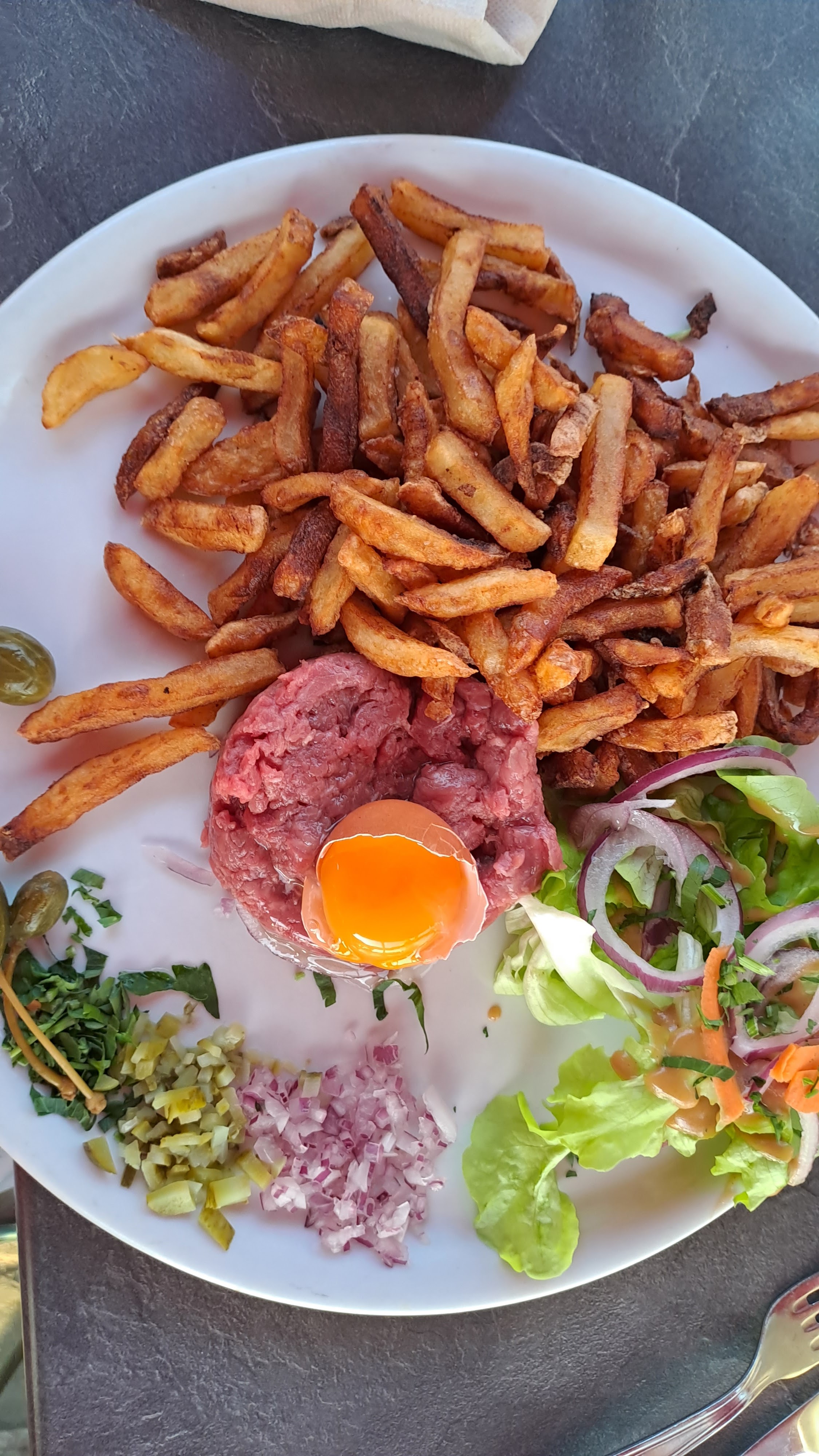 Très belle terrasse et service irréprochable. Plats de qualité sauf la pièce de boeuf entrecoupée de nerfs... au moment de l'addition l'assiette de frites devait d'être cadeau (au lieu de supplement) pour compenser... mais s'est additionnée ; dommage...