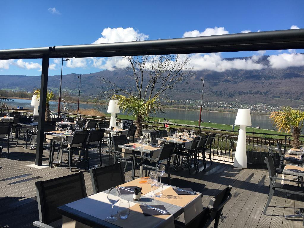 Restaurant avec une terrasse qui surplombe le lac du bourget..... repas délicieux et personnel sympa et que dire de la vue..... sublime