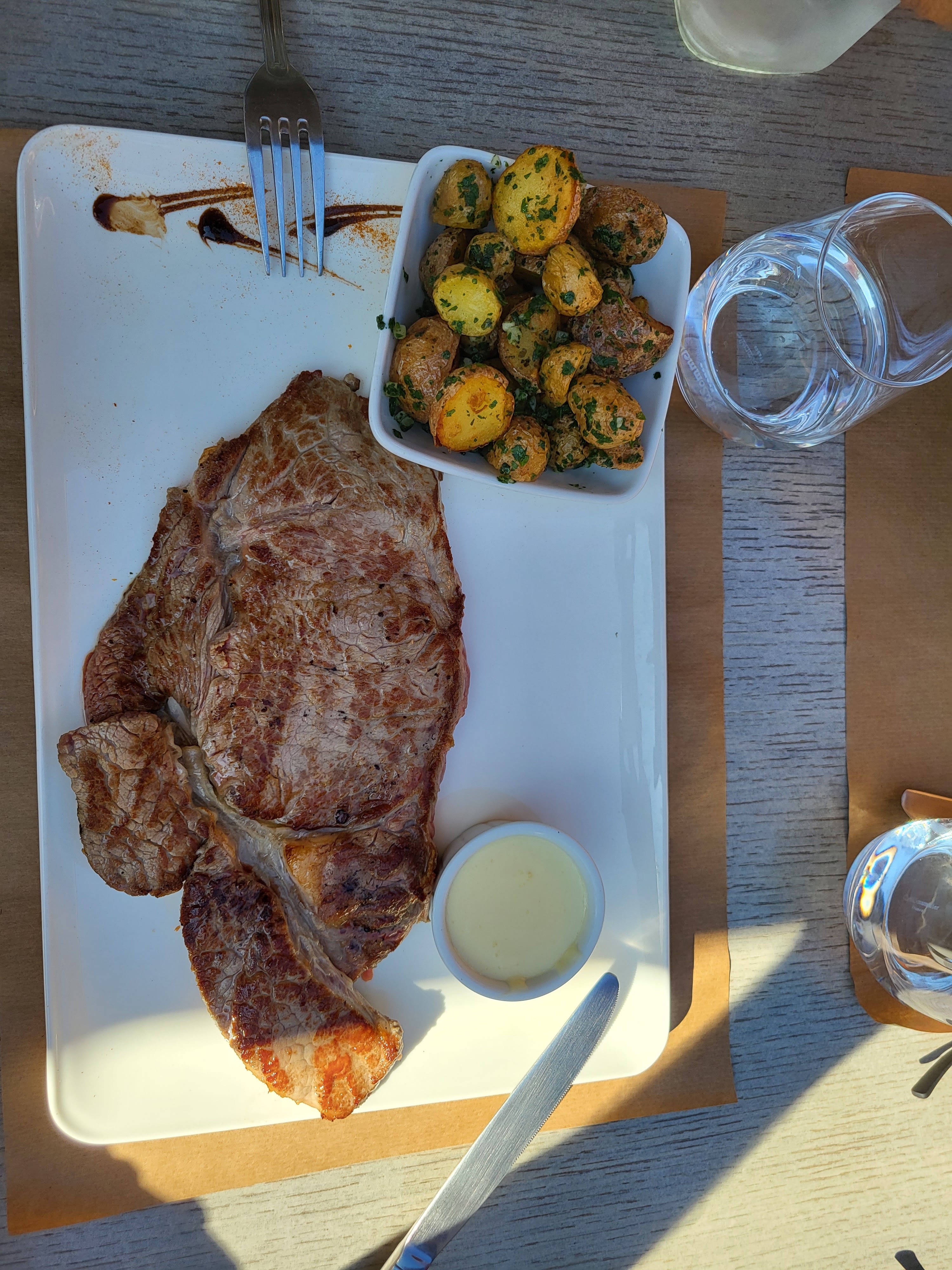 Viande très très sèche... l’entrecôte n’est pas au top, plutôt déçu et bien trop chère pour une viande de telle qualité Vue en terrasse très agréable