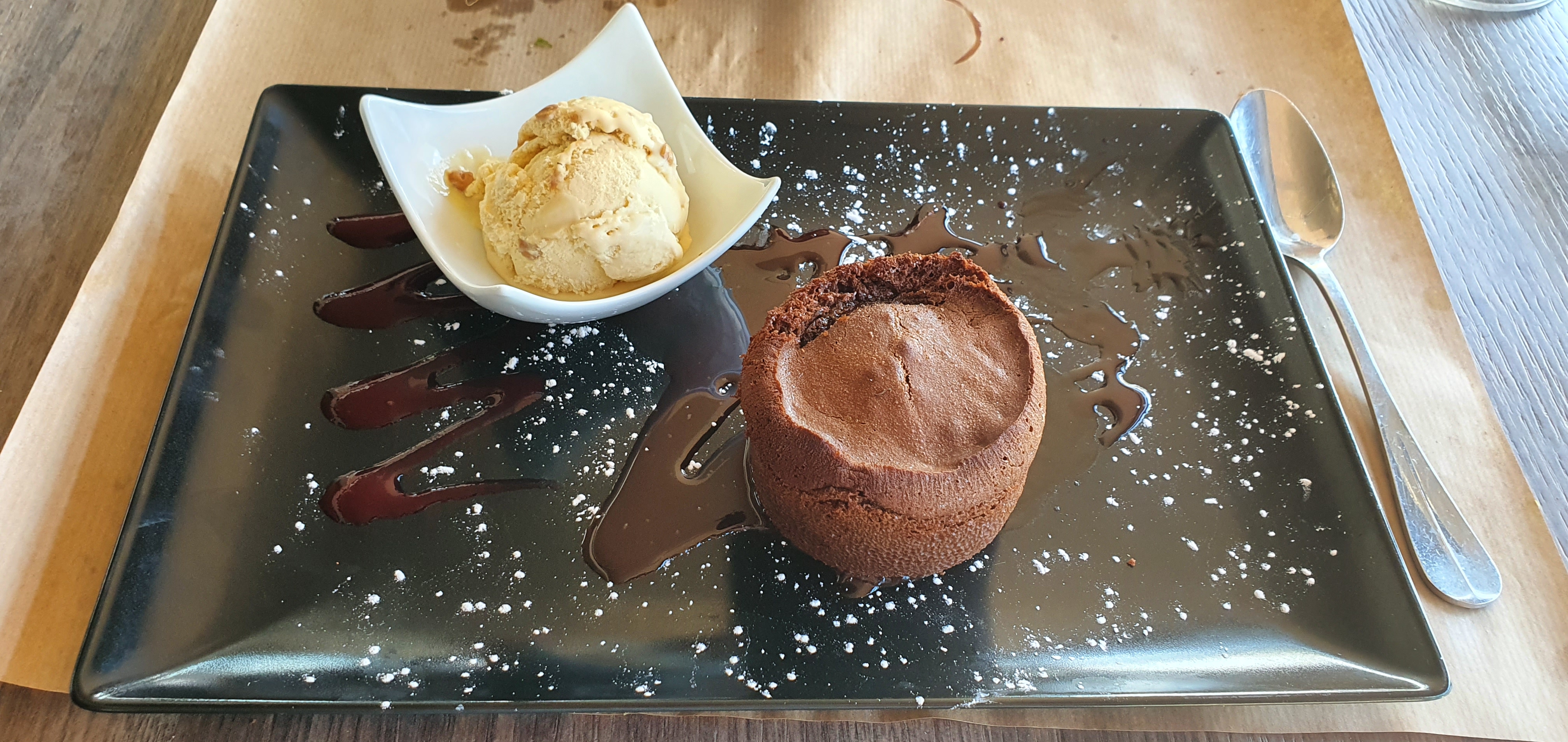 Le cadre face au lac est magnifique, le rapport qualité prix plus que correct, surtout le fondant au chocolat 😉 et la serveuse très souriante et agréable