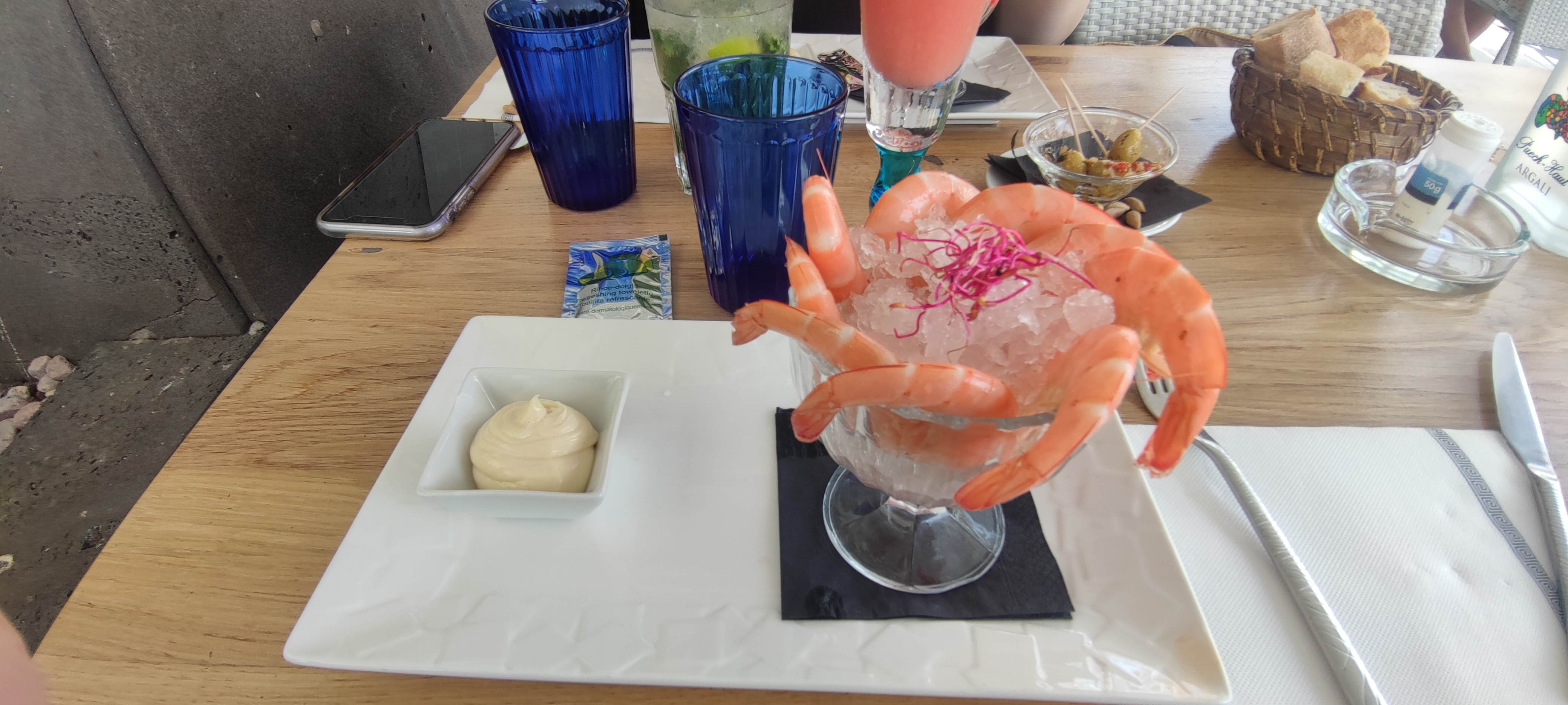 Pizza 🍕 très bonne mais attention à l'épaisseur de pâte , crevette 🍤 ok , portions moules assez petites , tequila sunrise et mojito délicieux 👍
