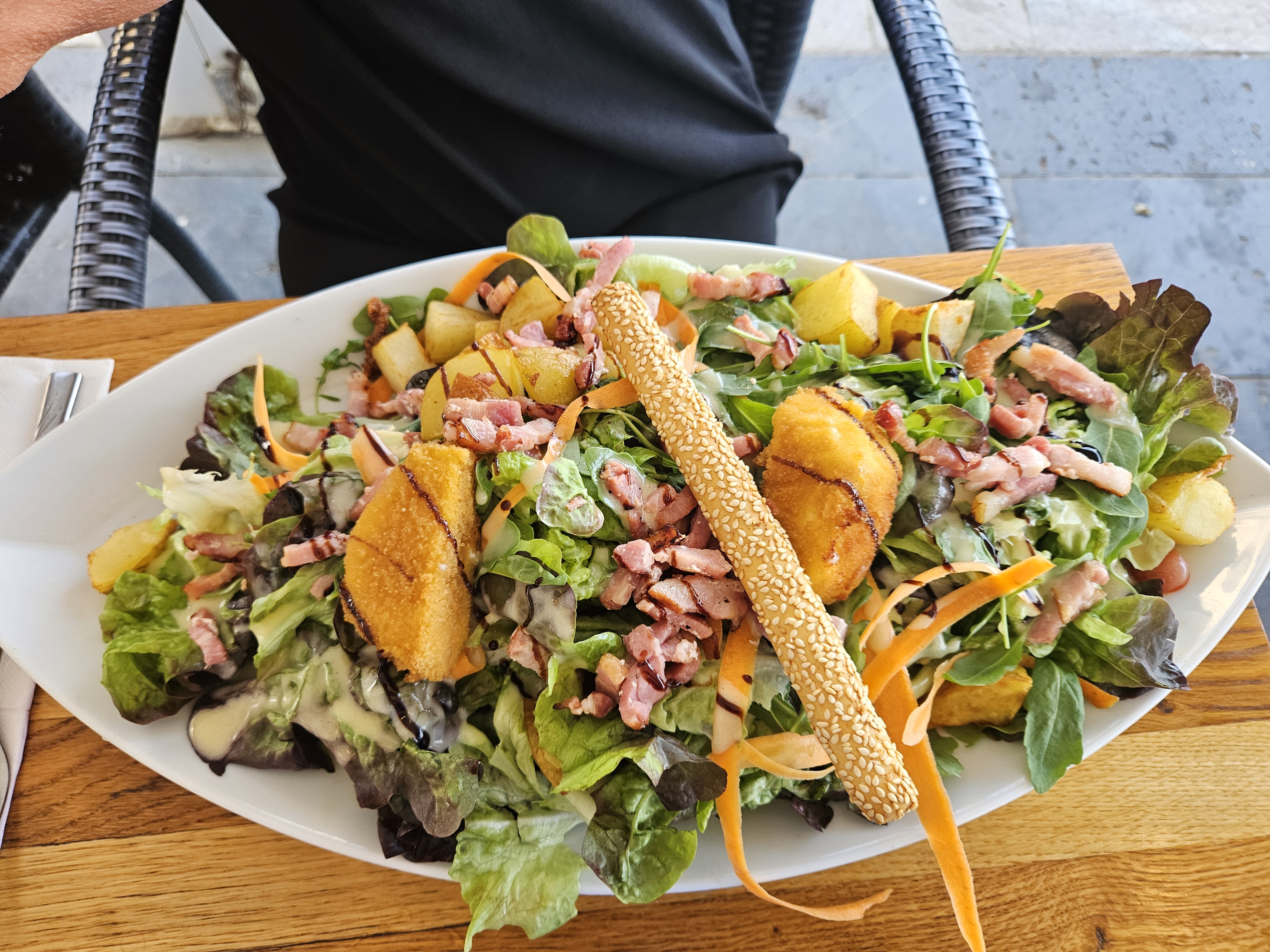C'est vraiment un attrape touristique. Les salières/poivrières sales auraient dû nous servir d'avertissement. Comme nous passons plusieurs semaines par an au Cap, depuis 25 ans, et que nous avions évité le Roche Marine en raison de mauvaises expériences antérieures, nous avons voulu lui donner une chance aujourd'hui. Salade végétarienne (repas): grande portion mais C'était plutôt de la mozzarella jeune et non de la burrata. Elle était recouverte d'une sauce au pesto huileuse qui n'avait aucun goût, et surtout pas d'huile d'olive. De plus, le pesto n'est pas mentionné sur la carte. Il y avait aussi des croûtons qui n'étaient pas sur la carte et qui étaient gommeux, tout comme la baguette qui était servie avec. La salade verte ne semblait pas très fraîche. Et pour finir, la sauce de salade était comme une mayonnaise liquide, huileuse et sans goût. Si j'en ai mangé la moitié, c'est parce que j'avais faim. Roche Marine, plus jamais, désolé