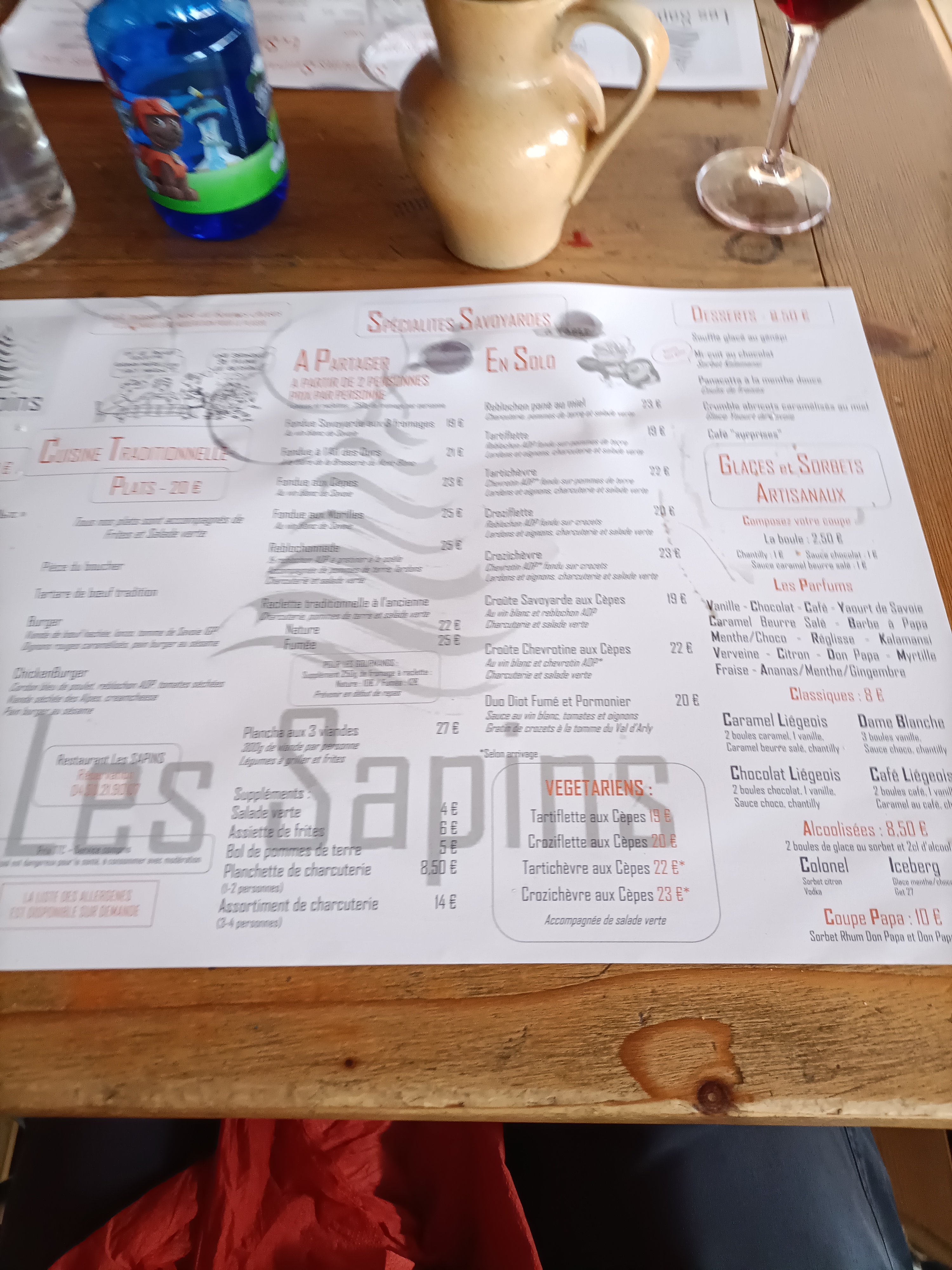 Nous nous sommes laissés guidés par les avis existants, et vraiment pas déçus ! Très bonne découverte, un service en toute simplicité mais efficace. La serveuse, le serveur et le cuistot sont très agréables, beaucoup d'humour, les plats délicieux, on s'est régalés. Rapport qualité prix rien à dire, et pourtant nous sommes des bons mangeurs. Et pour clôturer cette belle soirée, un petit génépi nous a été offert ! Si vous chercher un restaurant simple mais qui va à l'essentiel allez aux Sapins