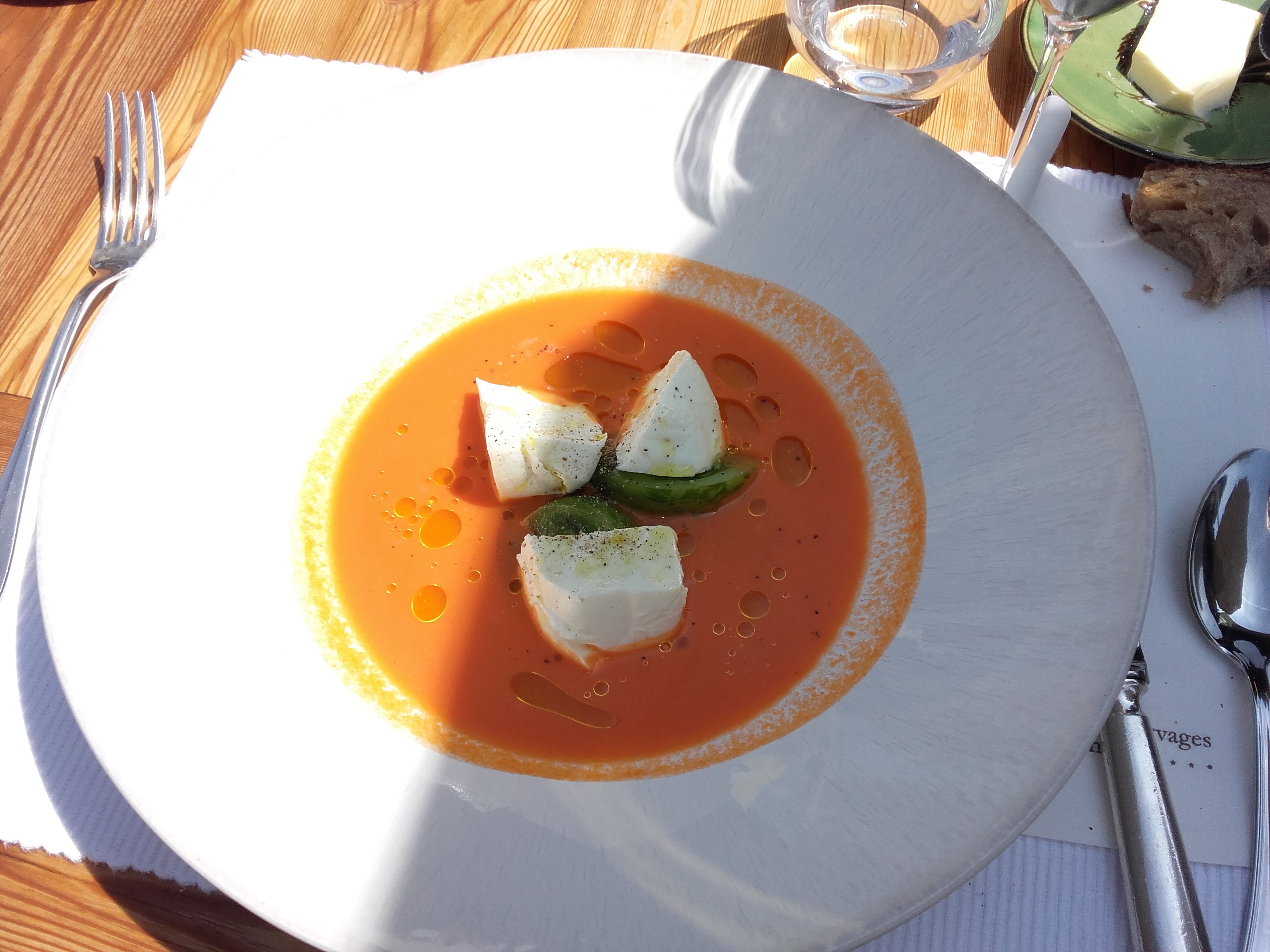 La cuisine est bonne, bien maîtrisée, avec de bons produits. Trop peu de produits locaux à mon goût, toutefois. Le rythme est bon, pas de temps mort, c’est appréciable. La vue de la terrasse est fabuleuse. La carte des vins est bien fournies, mais les tarifs sont trop élevés