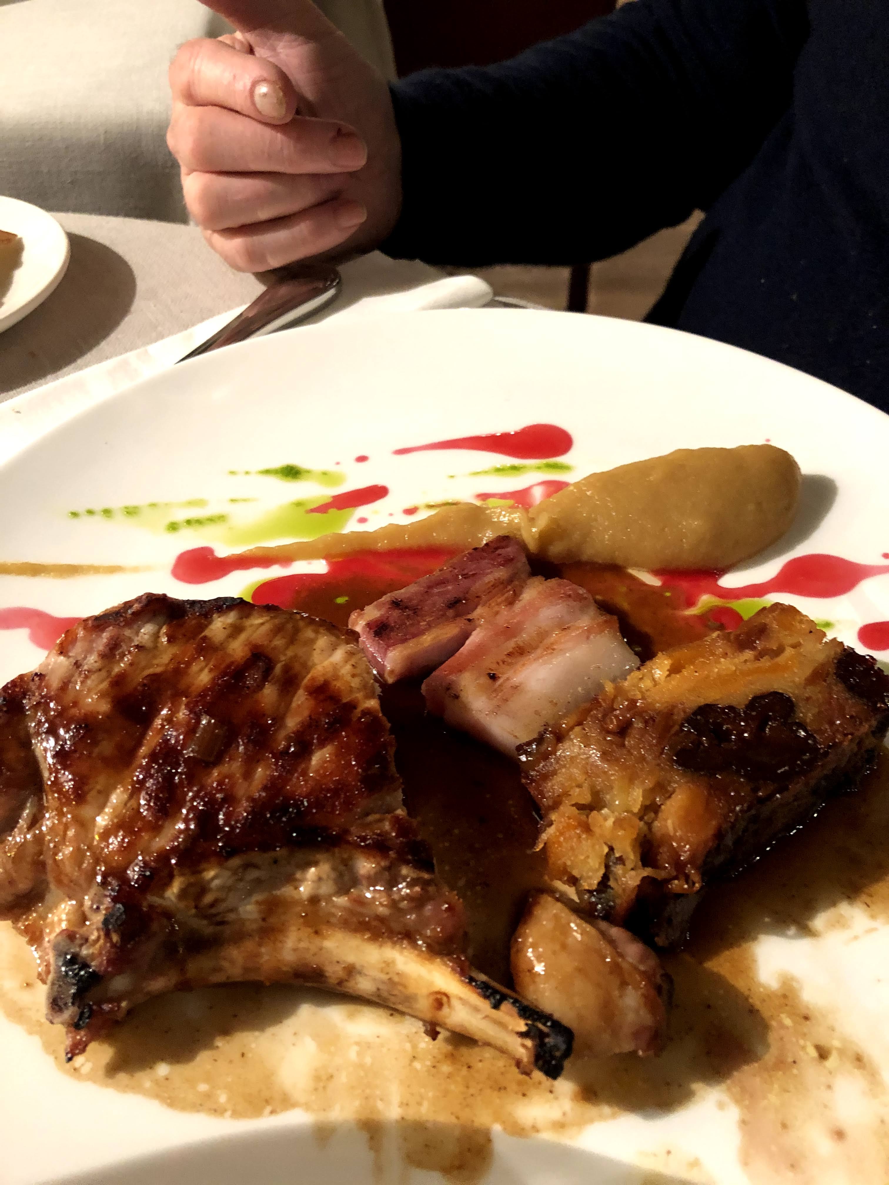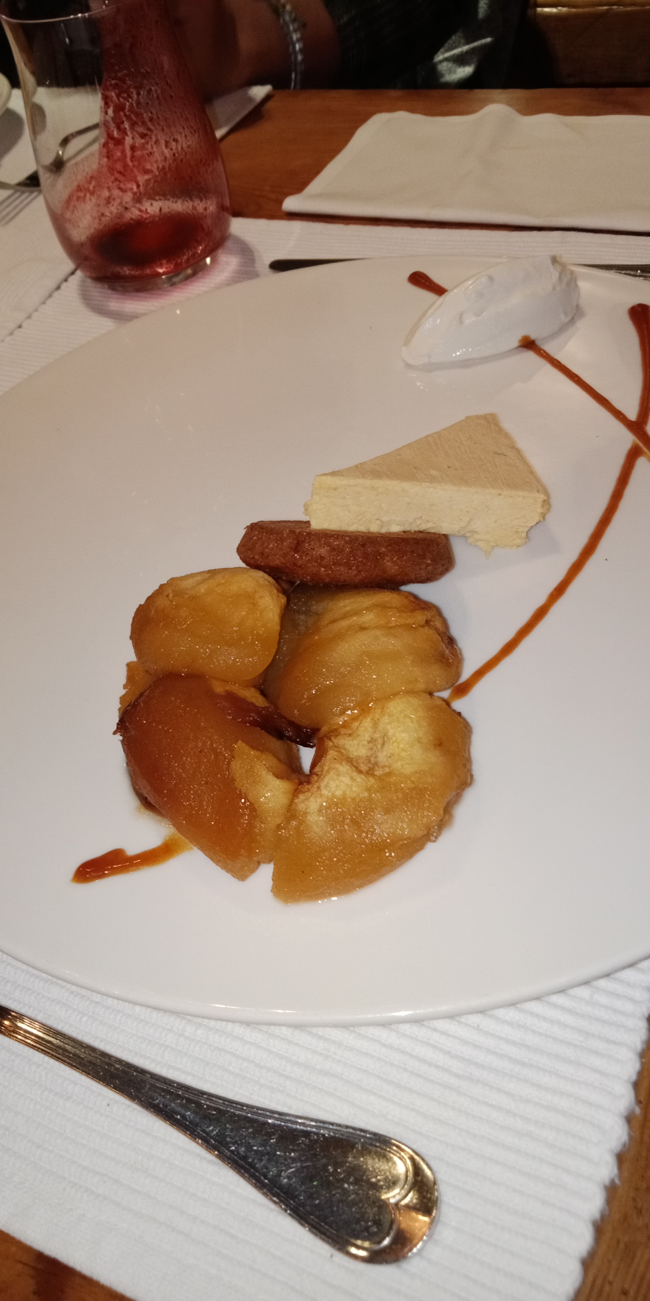 Petit dîner en tête à tête pour clôturer la saison. Rien que du plaisir du début à la fin avec un bon Pauillac comme compagnon de dîner. Balotine de fois gras pain toast pour se mettre en jambes mais la buratta avait l'air aussi très appétissante. Carré d'agneau cuit rose très tendre accompagné de grosse tagliatelles...sauce qui relève le tout. Sinon risotto aux asperges vertes tellement bon que je n'ai pas eu le temps de goûter chez mon voisin ! Dessert 🍨 et pousse. Bel endroit relaxe et raffiné sans être compassé. Une fois de plus un chouette moment.