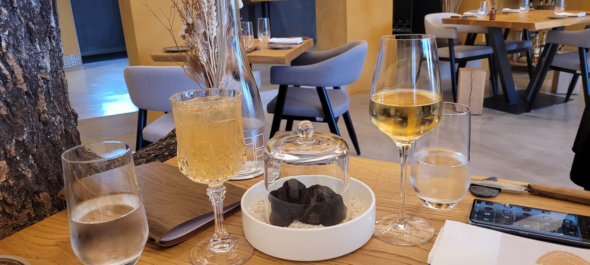Ce qui nous a d'emblée frappé c'est la beauté et la qualité du cadre. On se sent tout de suite dans un endroit à part. Nous avons été immédiatement pris en charge par l'hôtesse qui nous a installé à notre place juste en dessous de l'arbre spectaculaire qui fait le trait d'union entre le sol et le plafond. Les plats sont magnifiquement présentés et leur cuisson est parfaite. Ce qui est magique c'est la synergie entre les mets et les sauces. Par exemple le mariage de la volaille avec l'ail noir est incroyable, ce dernier venant sublimer le premier. Il s'agit de menus surprises mais le chef improvise en fonction des arrivages locaux ce qui fait que les tables au cours du même repas n'ont pas forcements les mêmes plats, j'adore le concept et l'esprit qui y préside. Ce qui nous plonge également dans l'univers des restaurants gastronomiques étoilés c'est le ballet des équipes aux petits soins qui viennent vous servir avec délicatesse et qui sont en permanence aux aguets afin de s'assurer que tout est parfait pour chacun des convives. Petit point d'amélioration : le choix dans la carte des vins. Il ne fait aucun doute que le chef Louis Festa obtiendra sa première étoile d'ici l'année prochaine, il n'hésite d'ailleurs pas à venir faire le tour des tables pour recueillir en direct les impressions de ses clients dans un soucis d'amélioration et de convivialité. Il n'est pas étonnant qu'il ait déià travaillé sous la férule du chef étoilé Stéphane Gaborieau à Paris. Expérience magique au delà de nos attentes. Nous reviendrons.