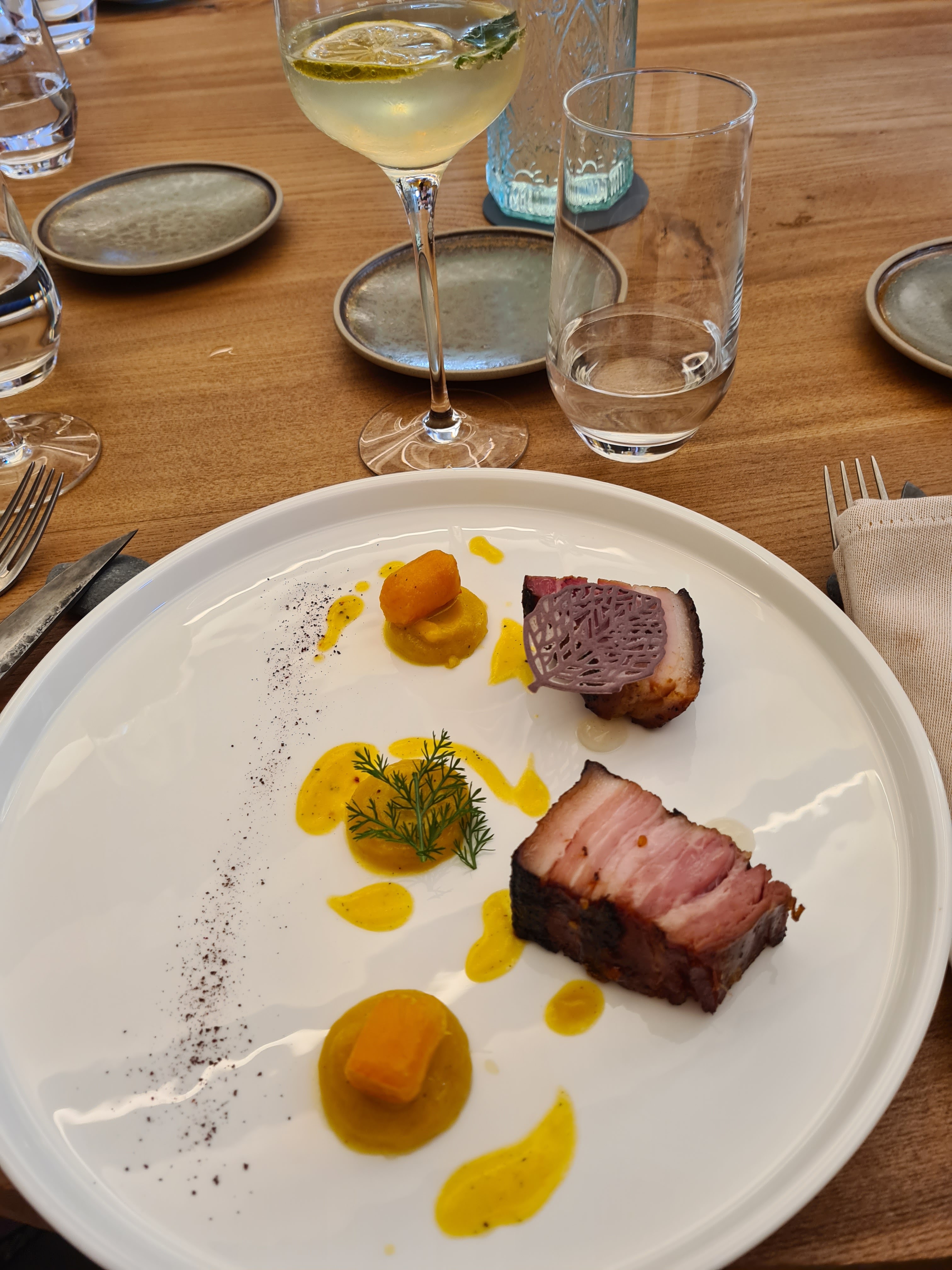 Une belle expérience. Les assiettes sont travaillées avec soin et c’est aussi bon que beau. Les produits sont locaux, allant même jusqu’au vin. En revanche à la fin du repas le rassasiement n’est pas évident pour le menu en 5 etapes.