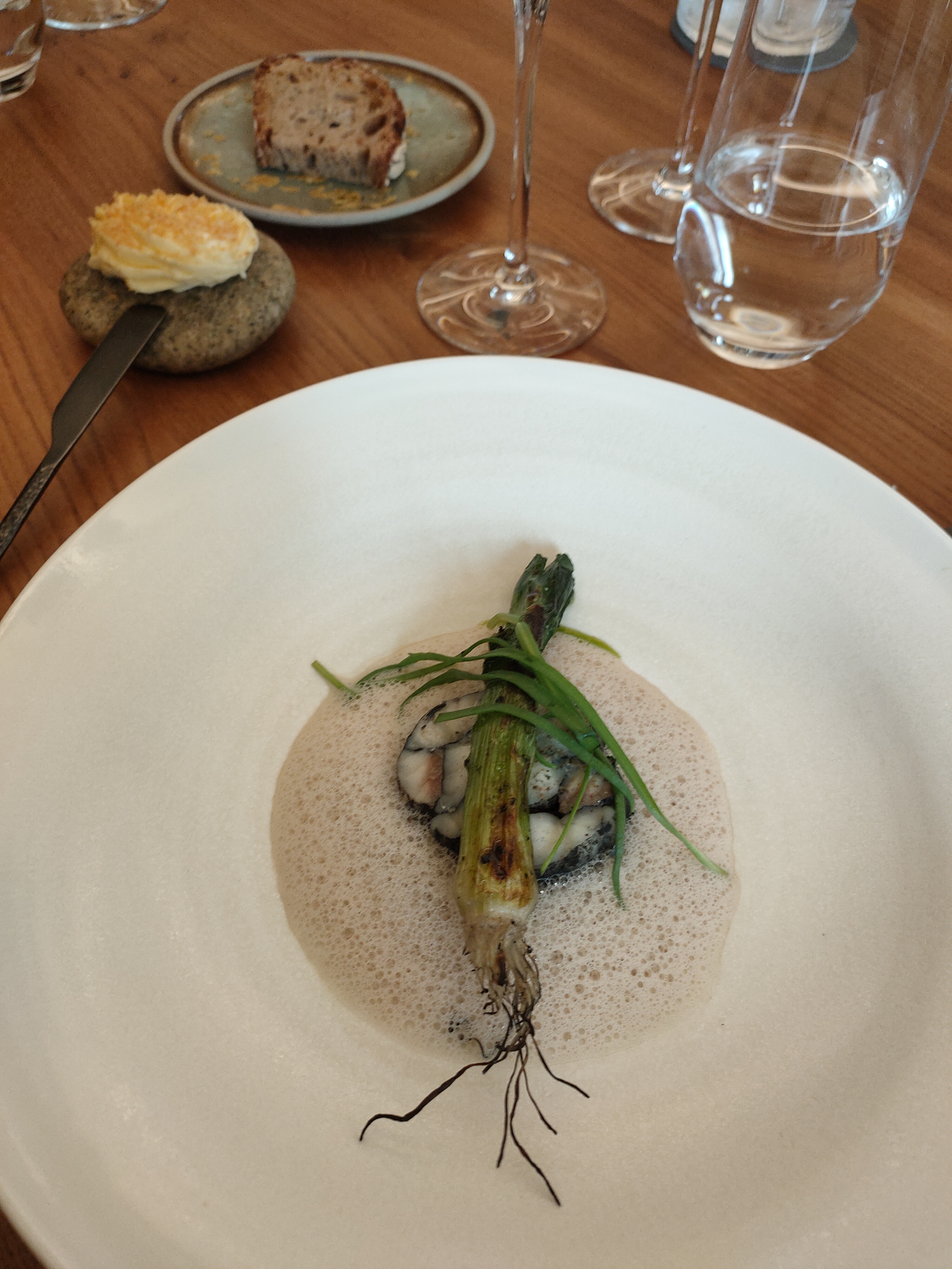 Cuisine très recherchée. Produits ultra locaux. Linge de table impeccable. Mobilier simple, authentique et élégant. Un jeune chef audacieux qui prend le temps de vous expliquer... Sa compagne, réservée mais ultra pro. Le service est parfait,tout est parfait.