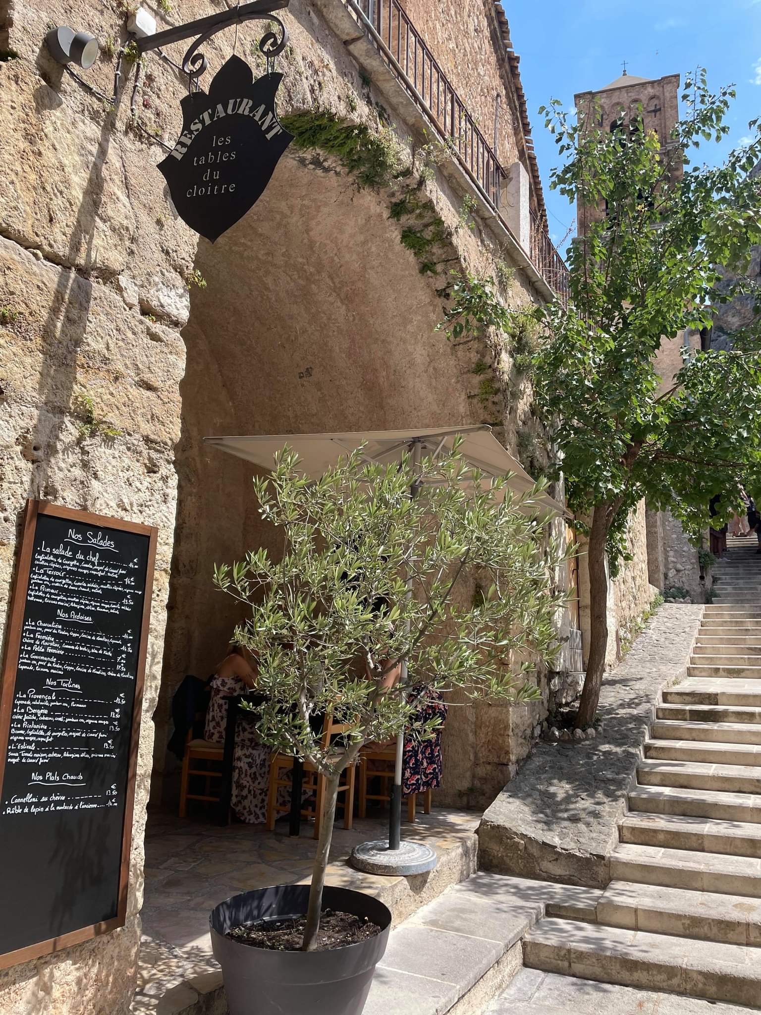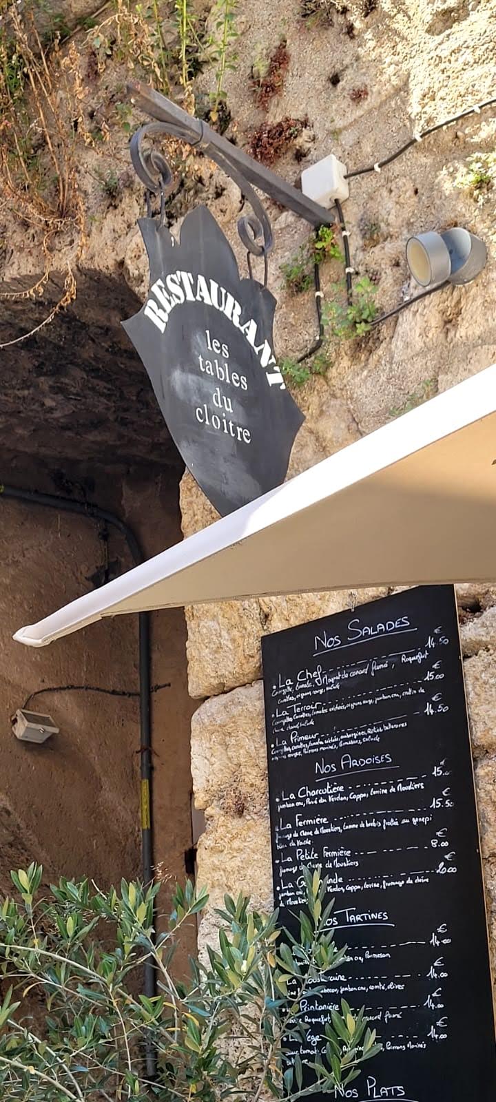 Très bon repas dans le centre du village. On est un peu à l'écart de la foule qui est sur l'axe principal. La terrasse est très petite et mieux vaut réserver à l'avance pour profiter du cloître en extérieur. Le repas est excellent et le service aussi. Tout est fait maison. Les prix ne sont pas exorbitant pour le lieu, adresse que je recommande.