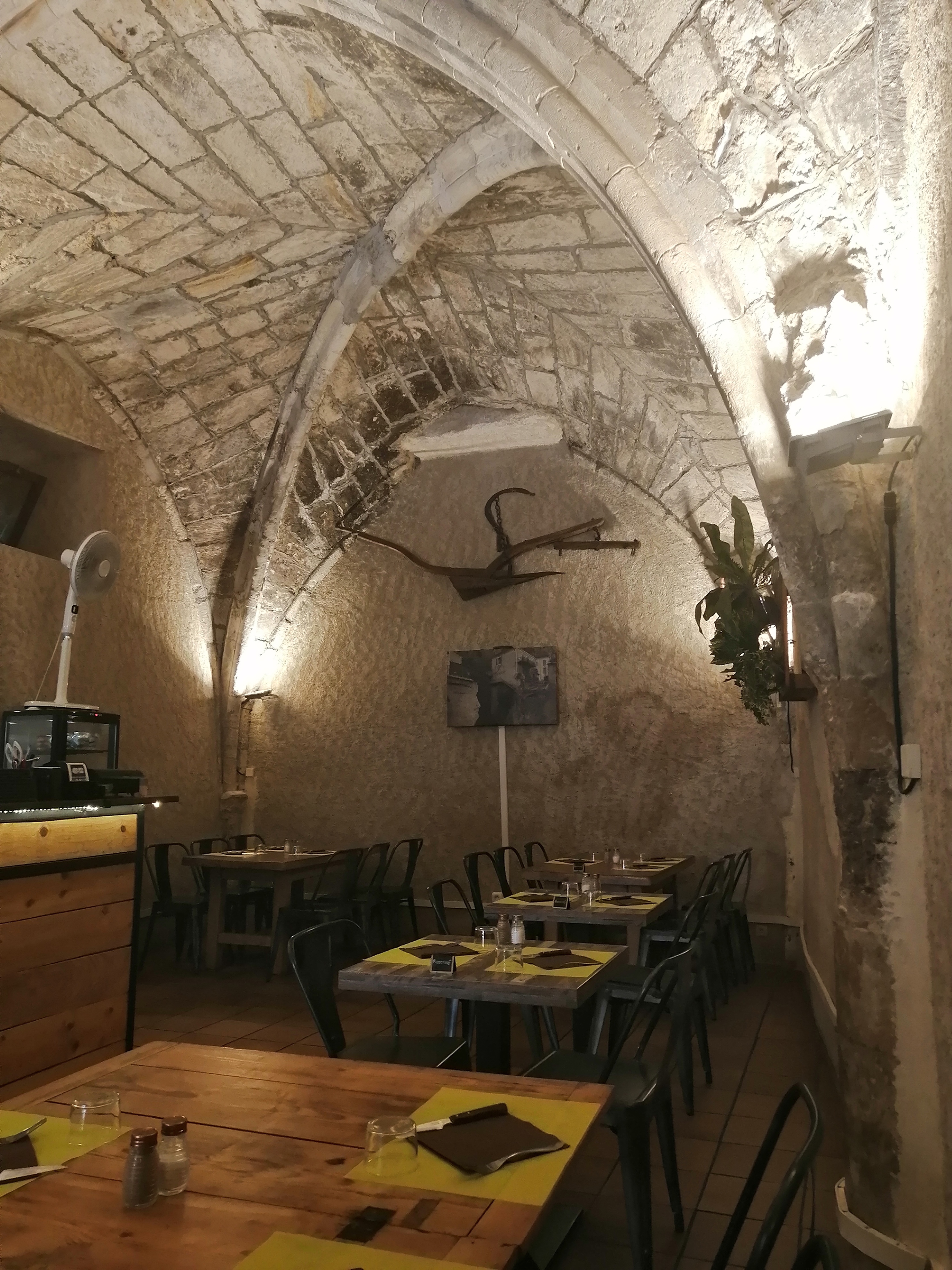 Très bel endroit au cœur de moustiers-sainte-marie. un ancien cloître avec encore les voûtes en ogives qui donnent vraiment un cachet très particulier. Le patron qui est également serveur est extrêmement sympathique et au petit soin avec vous. La cuisine est savoureuse bien que nos viandes par exemple manquaient un petit peu de cuisson mais sinon tout était très bien.