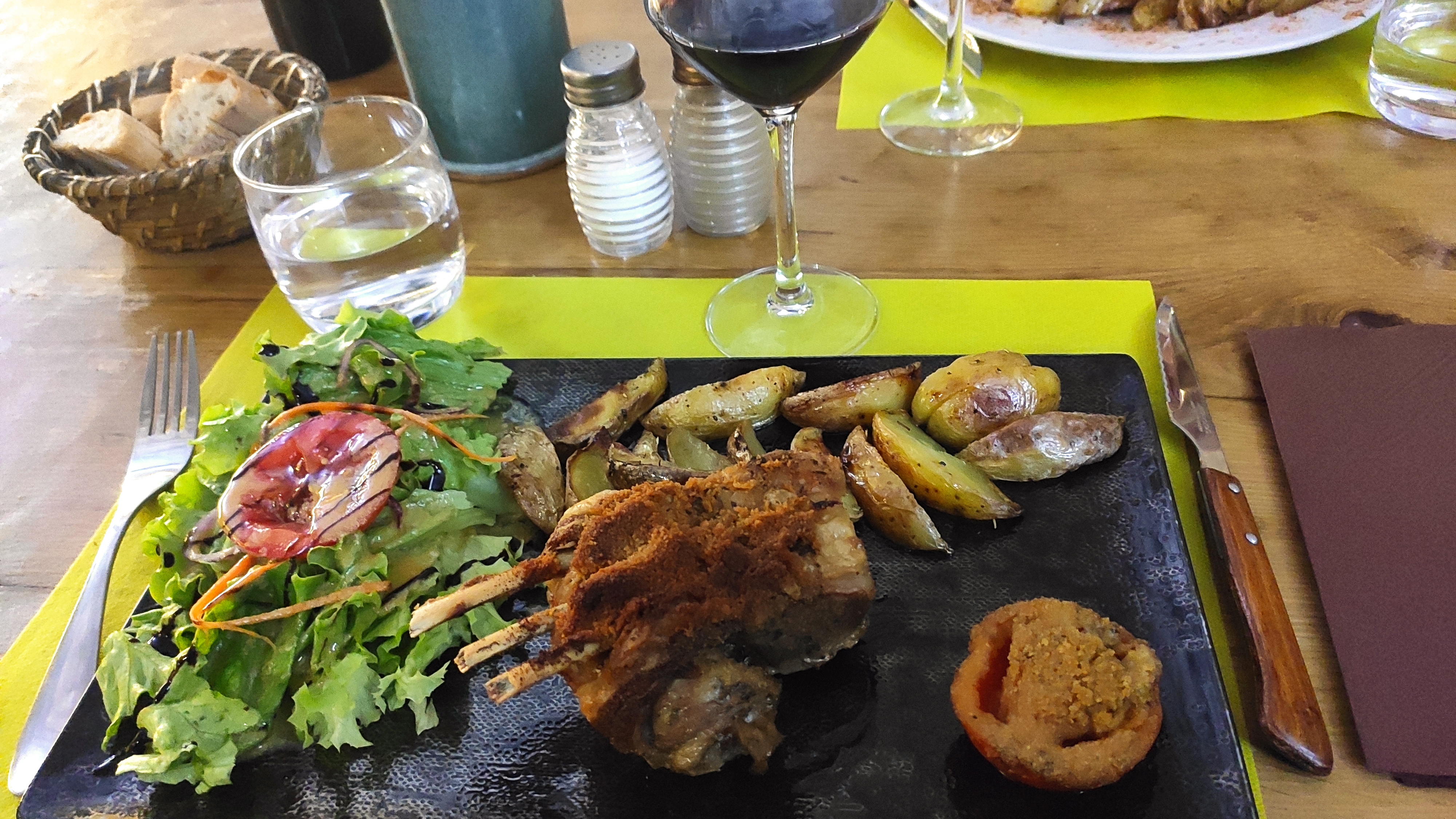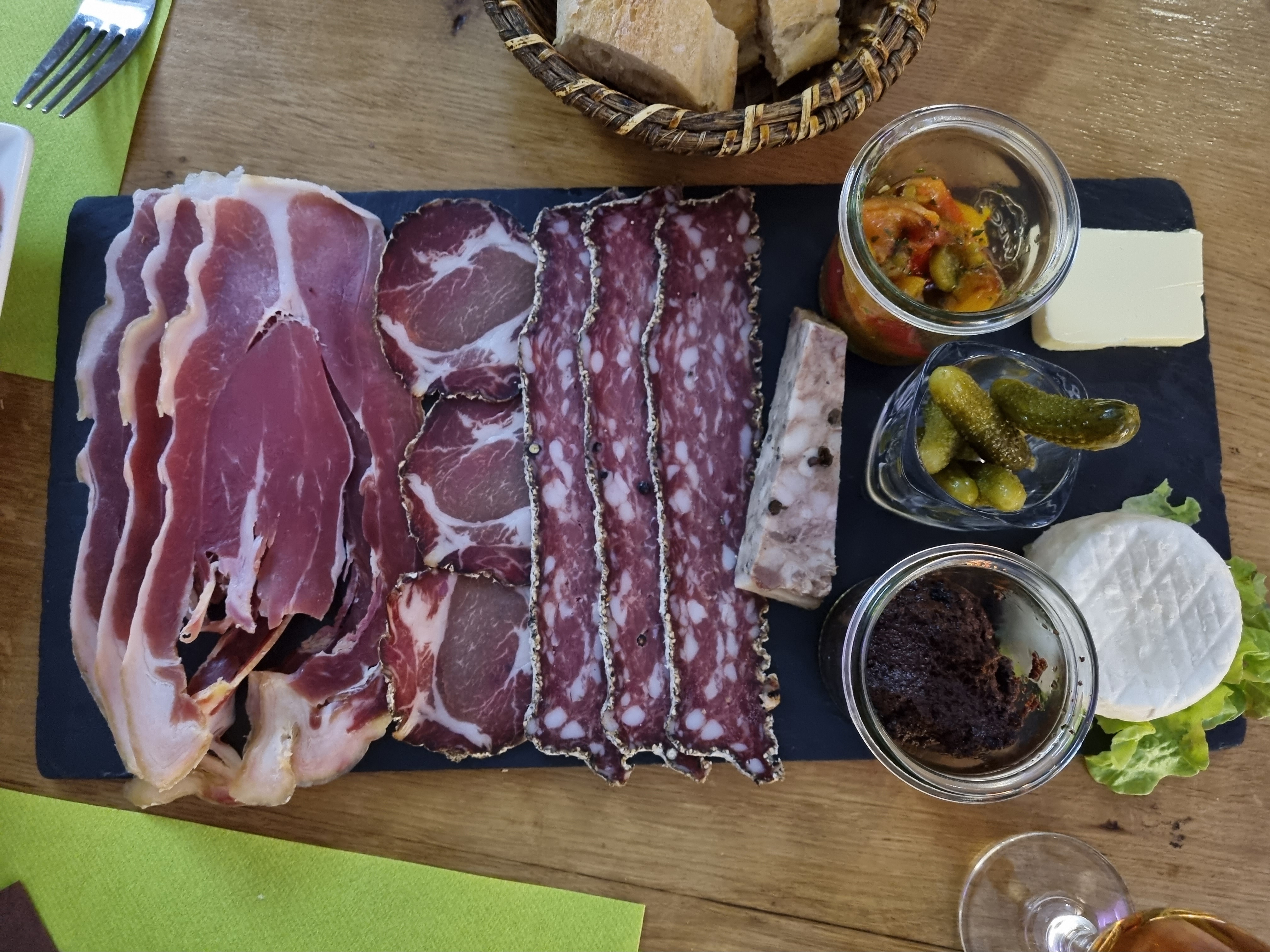 Endroit charmant. Accueil avenant, très familial. Les ardoises et tartines sont généreuses, garnies avec des produits du terroir de belle qualité. Mon fils et la femme étaient ravis. J'avais pris une souris d'agneau à se damner ! Le vin servi frais (et c'est une très bonne idée) car il se réchauffe assez vite au mois de juillet. Et les desserts maison délicieux et généreux. Bref, une cuisine authentique et savoureuse dans un bel endroit avec des gens charmants. Je comprends que les avis soient si bons.
