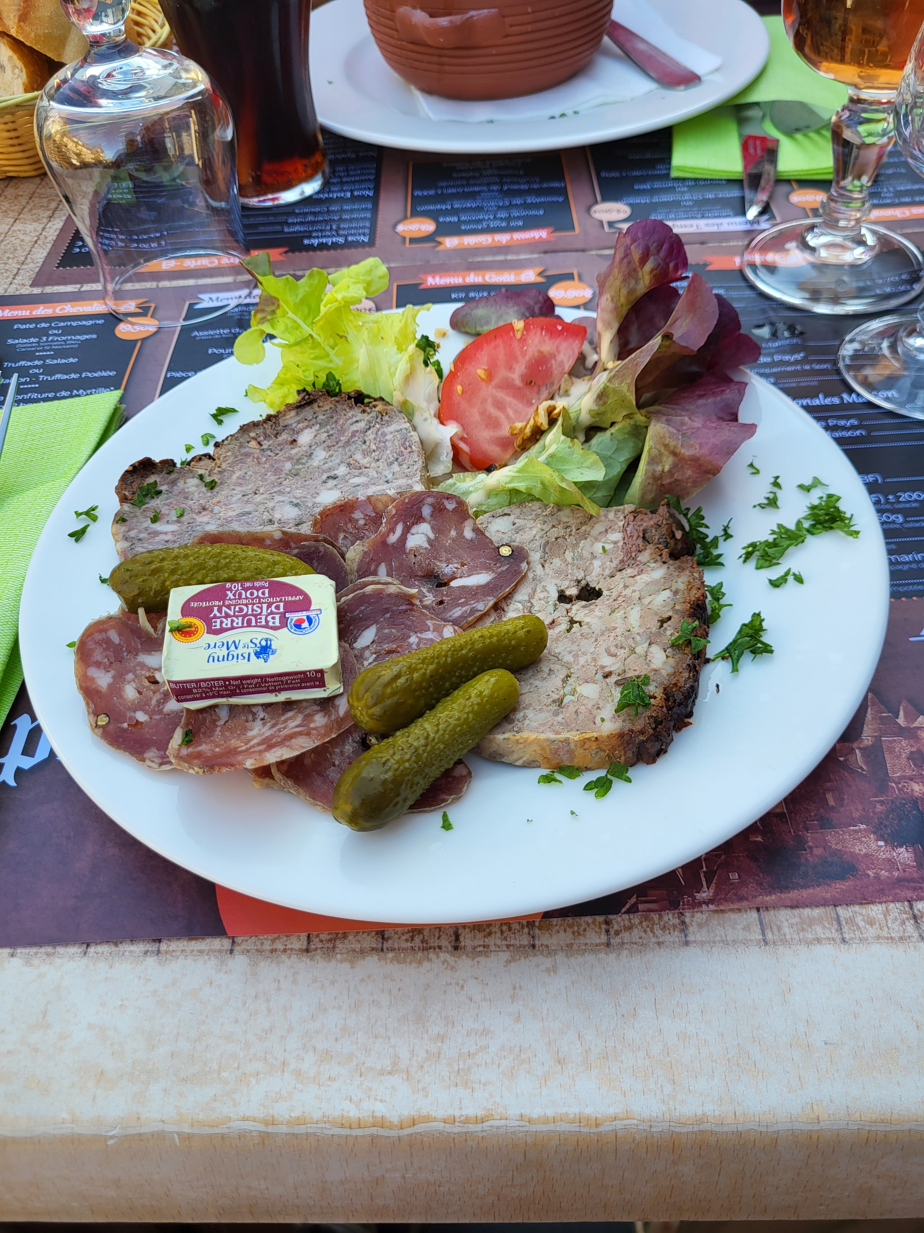 Très bon et pas cher... Menu a 30 euros , kir, planche charcuterie, 200 gr de viande salers + trufade, fromage de salers, dessert. Vraiment goutu, on regrette pas notre choix de resto