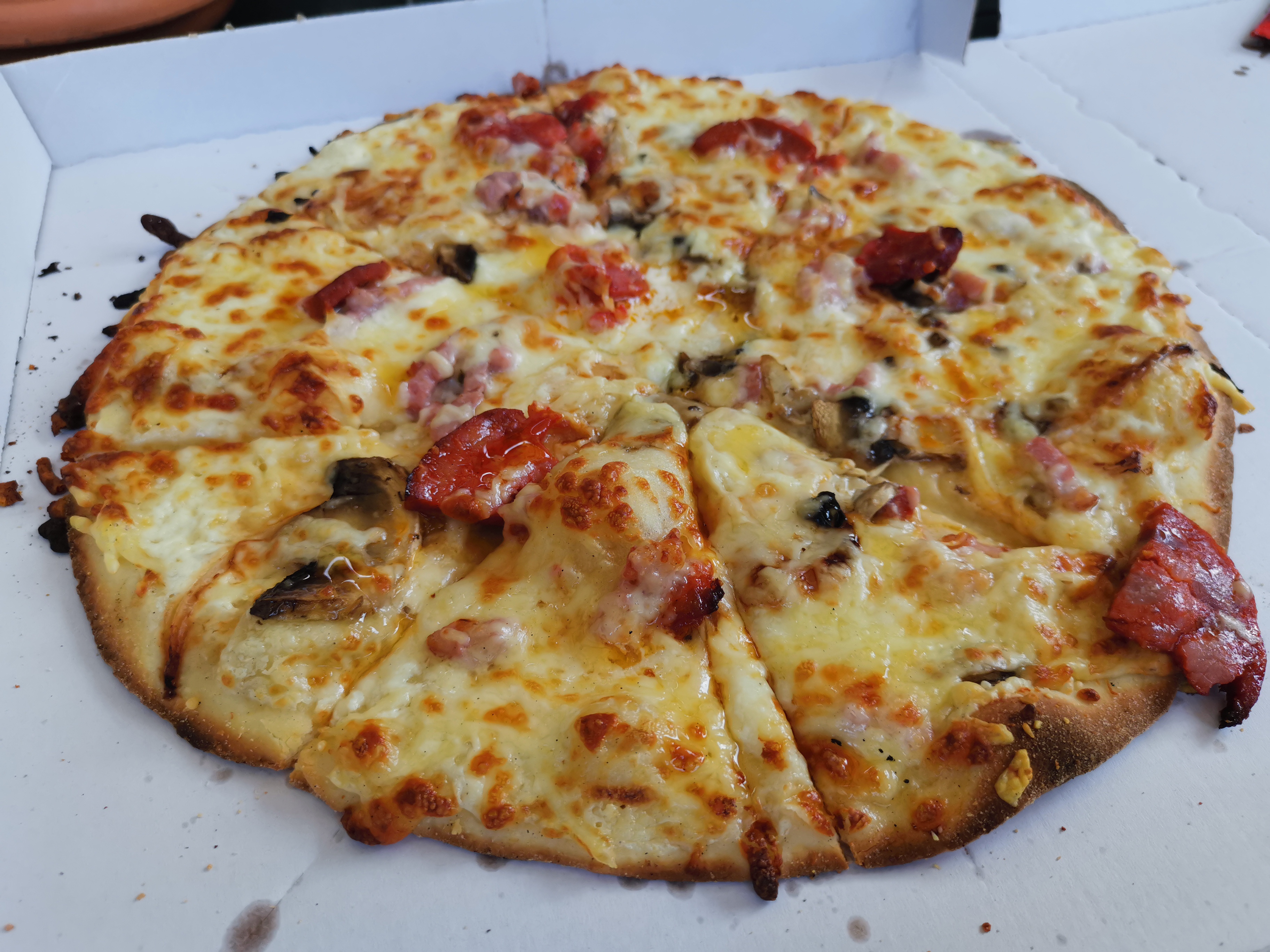 Service et traitement des commandes organisés et conviviaux. Les garnitures de la pizza étaient très savoureuses. Cependant, la base n'était apparemment pas de la pâte levée, elle avait le goût de la pâte à la semoule (il a fallu un certain temps pour s'y habituer).
