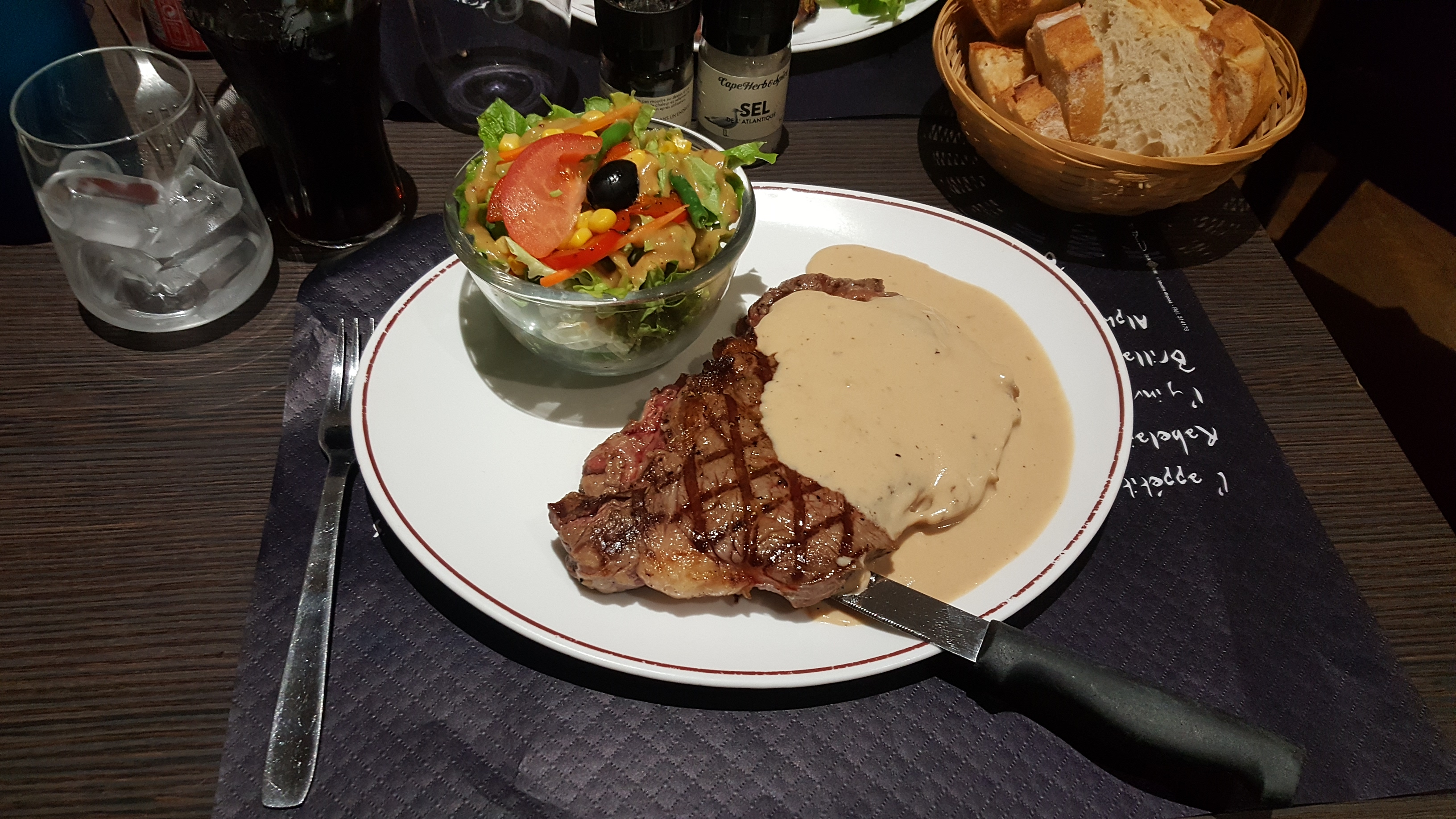 Bon resto avec plat principal autour de 10 euros. Bon choix de viande et de salade. J'ai apprécié leur poulet grille, les frites un peu moins.