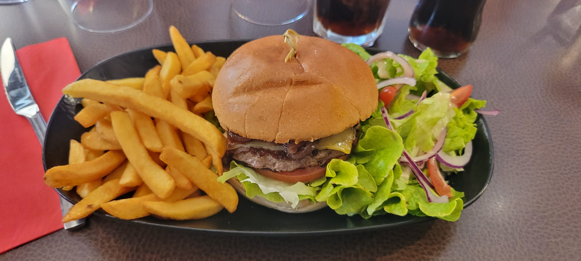 Hamburger correct , basse côté très bonne mais frite trop cuite dommage.