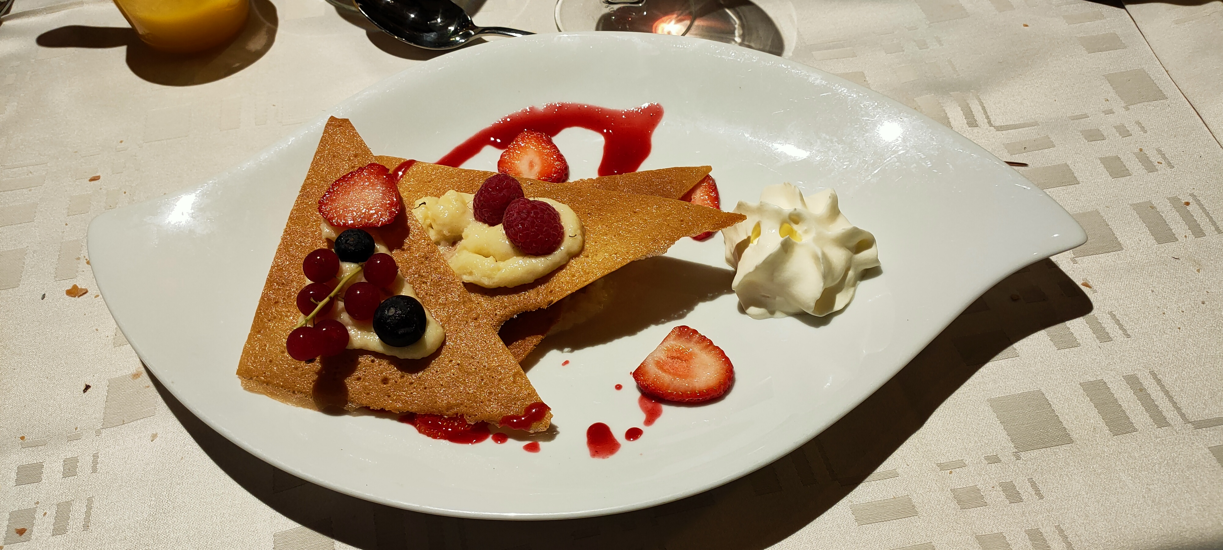 Un très bon dîner. Ne pas hésiter à prendre les moules ! (Cette fois ci, elles étaient à la pomme + curry) un véritable régal, très copieux !! On reprochera au poisson de ne pas être assez présent dans l’assiette… Cependant des petits accompagnements (type purée / compoté) n’étaient vraiment pas de trop et a été très apprécié Très belle salle ! Et grips plus pour le serveur ! Un homme très aimable, il nous a vraiment plu