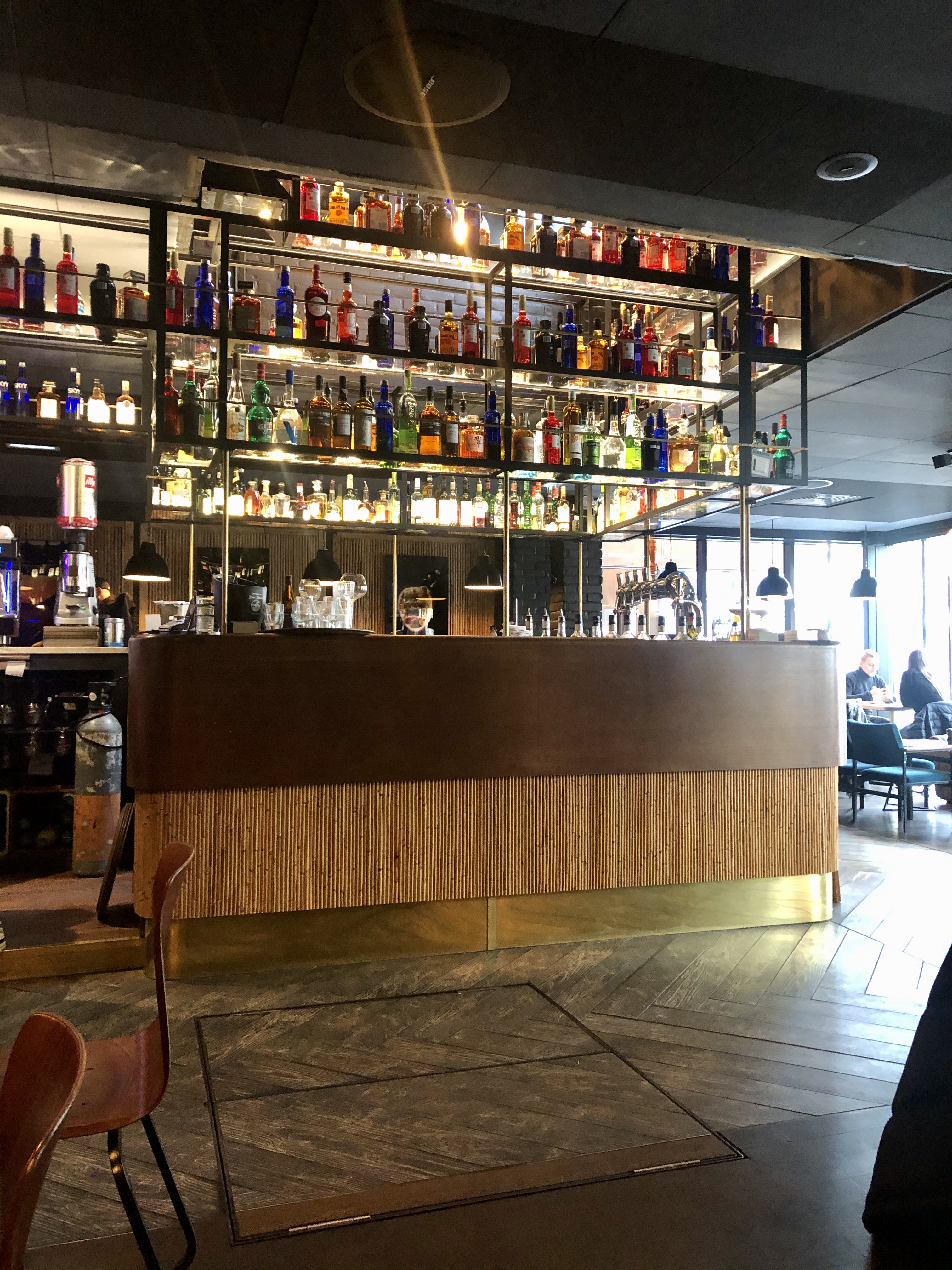La première expérience était mitigé, j'ai eu l'occasion d'y retourner à 3 reprises, dans différents cadres avec des succès... différents et une dernière visite laborieuse. Carte à rallonge qui permet de trouver forcément ce que l'on cherche. Côté qualité c'est très correct même si l'on reste dans un esprit bistrot. En revanche, c'est bien trop cher pour ce que l'on y mange, nous payons surtout le loyer ! Le service fait ce qu'il peut, mais est sans doute sous dimensionné. Côté ambiance, c'est une alliance entre le bruyant et la fréquentation m'as tu vu assez grossière. Décor global lounge pourtant bien travaillé. L'emplacement reste idéal, c'est vrai. Mais ne justifie pas tout.