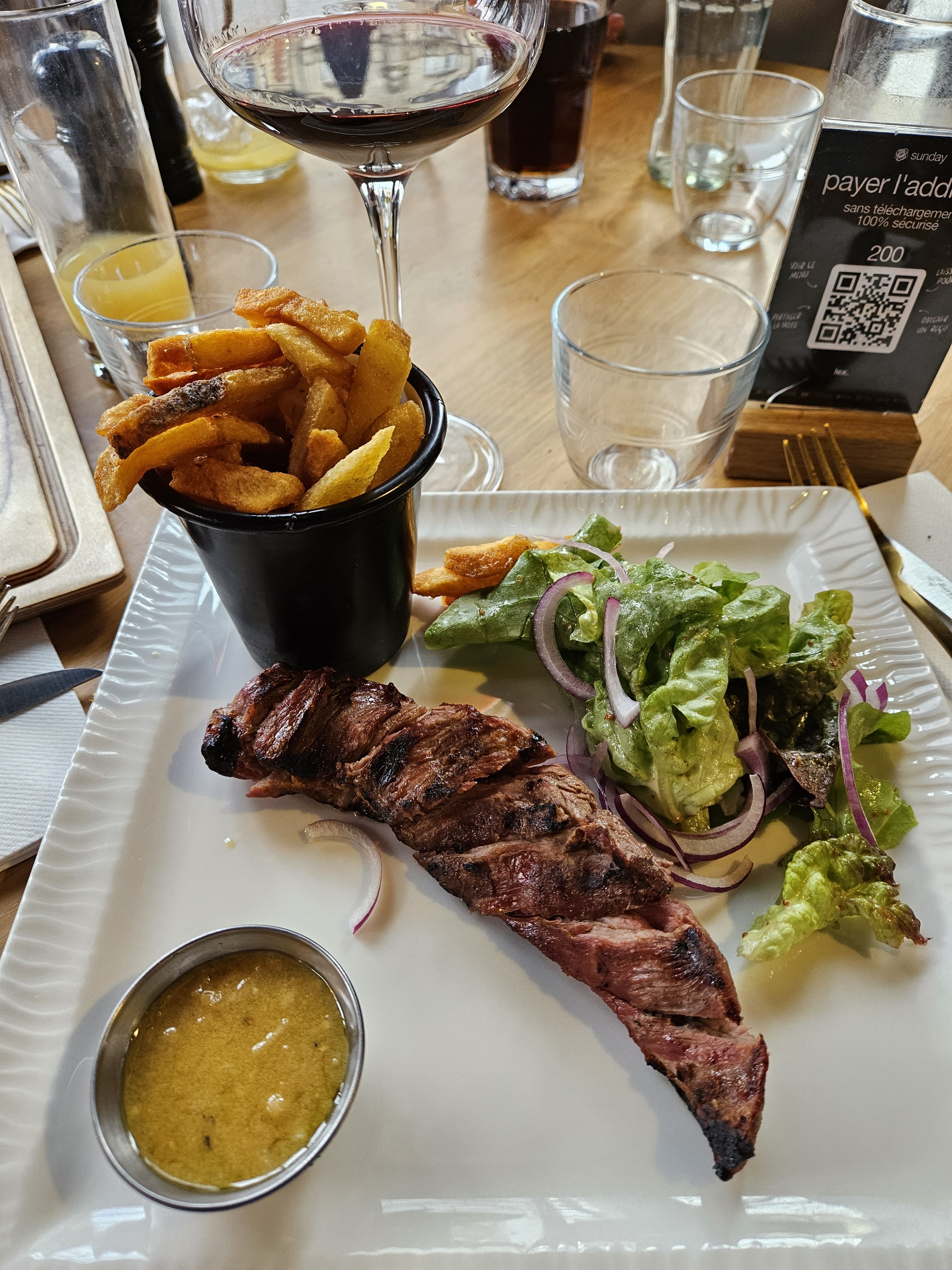 Repas très bon, avec des produits de qualité, dans une ambiance agréable ,un seul bémol qui n’est pas des moindres l’état de pots dans lesquelles les accompagnement sont servis, clairement dommage au vue de la qualité des aliments et du service