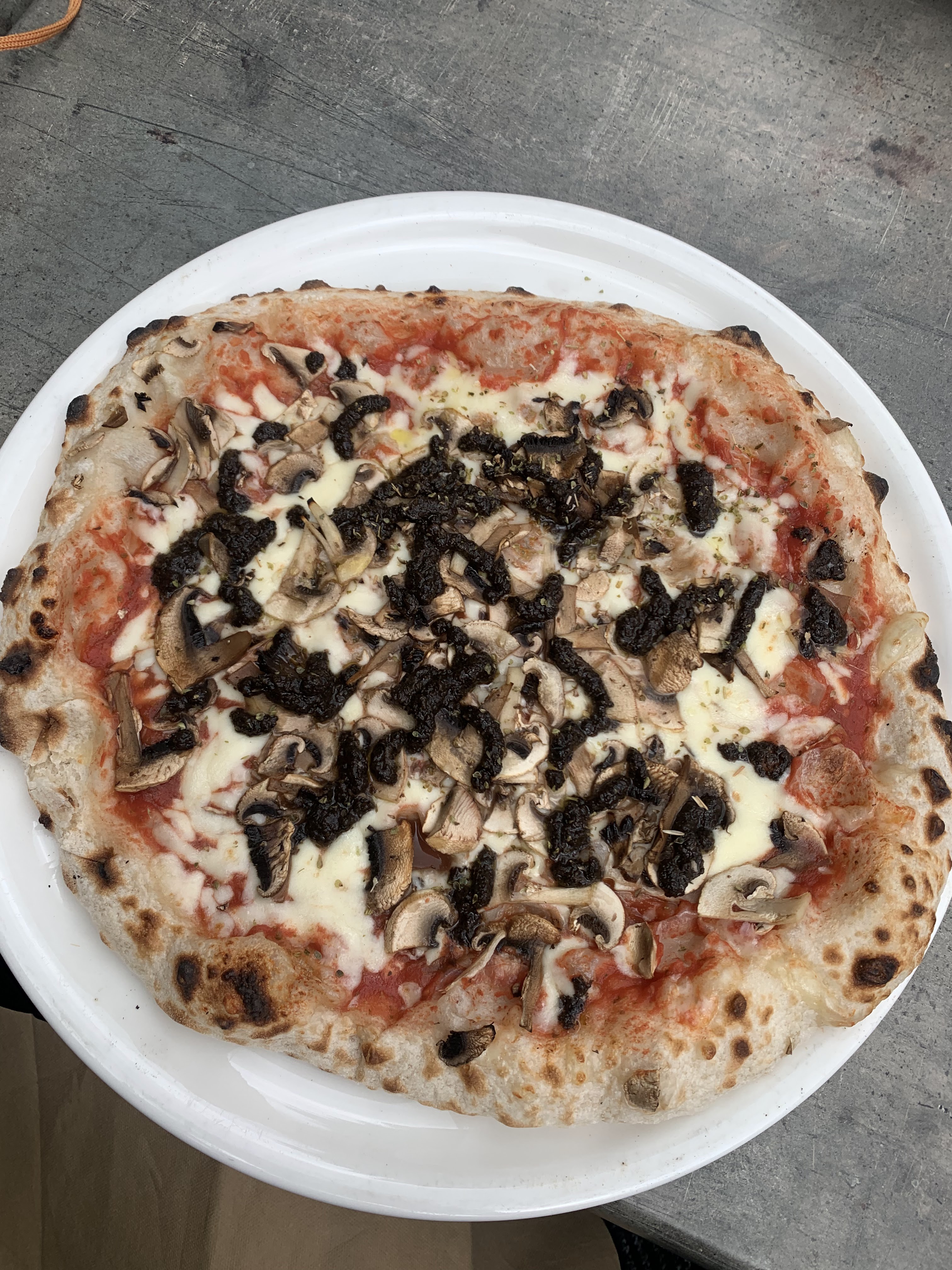 Je demande si la 'pizza du jour' est végétarienne car les ingrédients n'étaient pas précisés. Le serveur (apparemment un nouveau) me dit que oui et me liste tous les ingrédients. 20 minutes après, il me rapporte une pizza au chorizo... Je n'avais pas le temps d'attendre car j'avais un train à prendre, donc j'ai enlevé le chorizo et mangé la pizza comme ça. Dommage car la pâte était bonne.