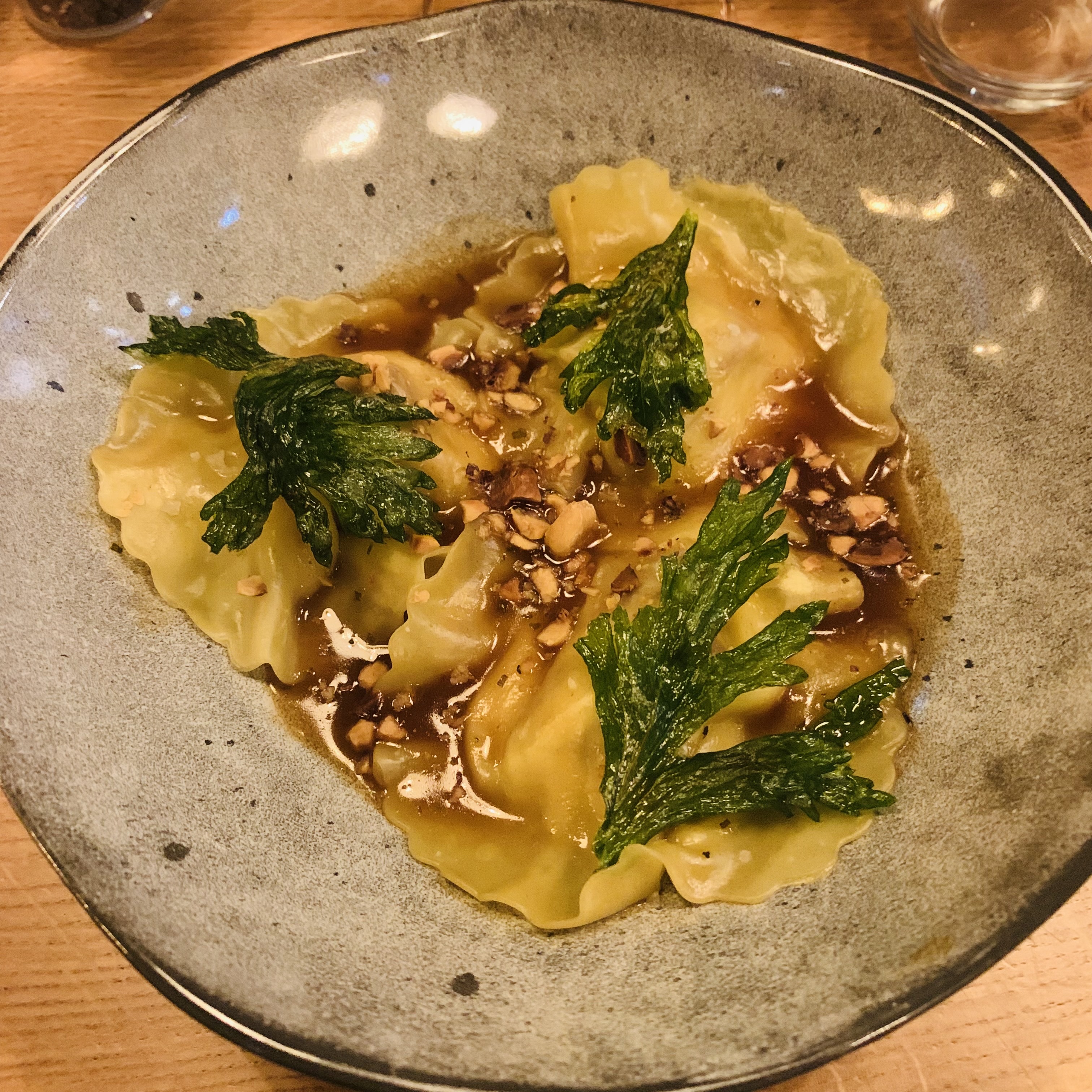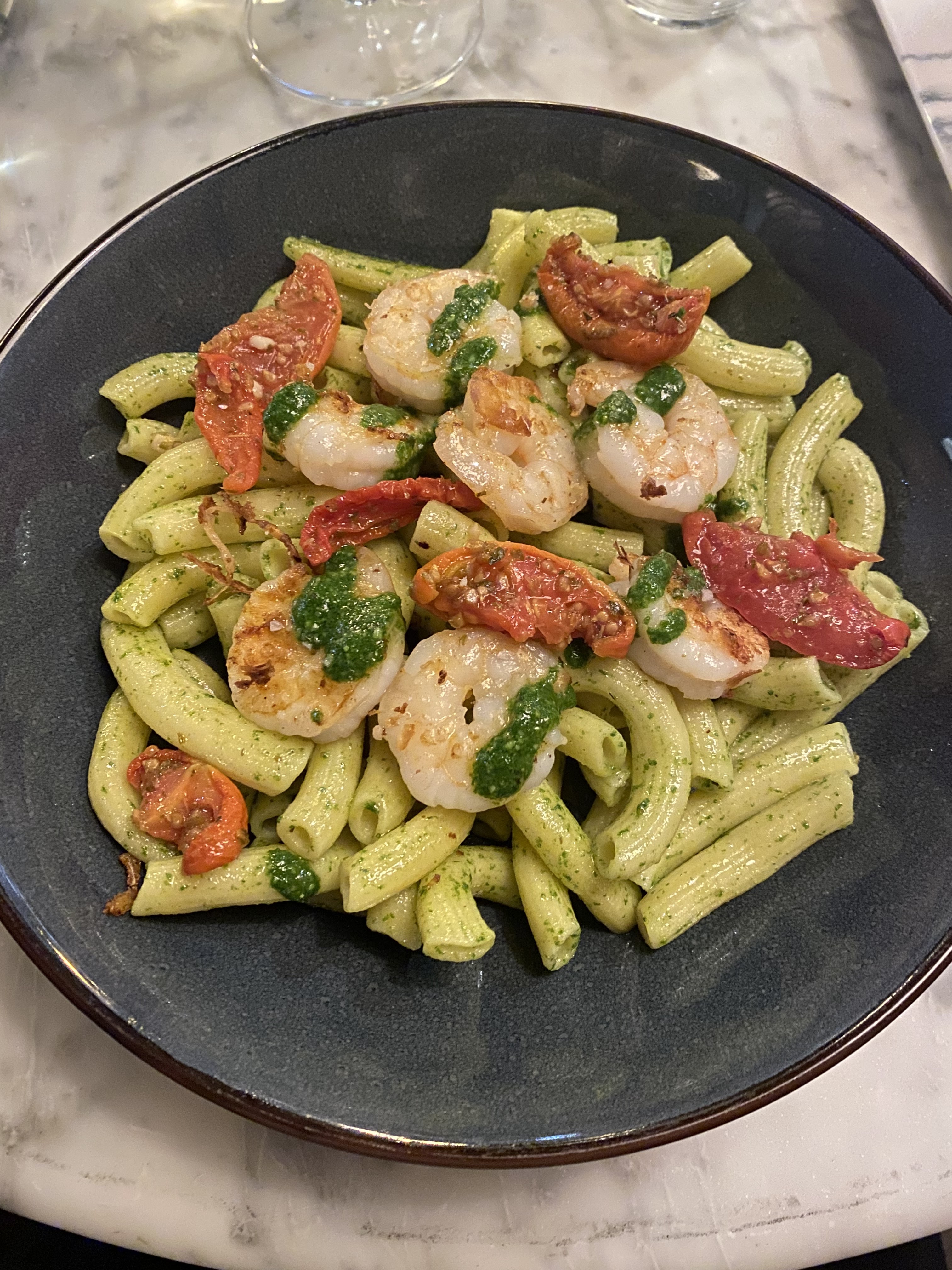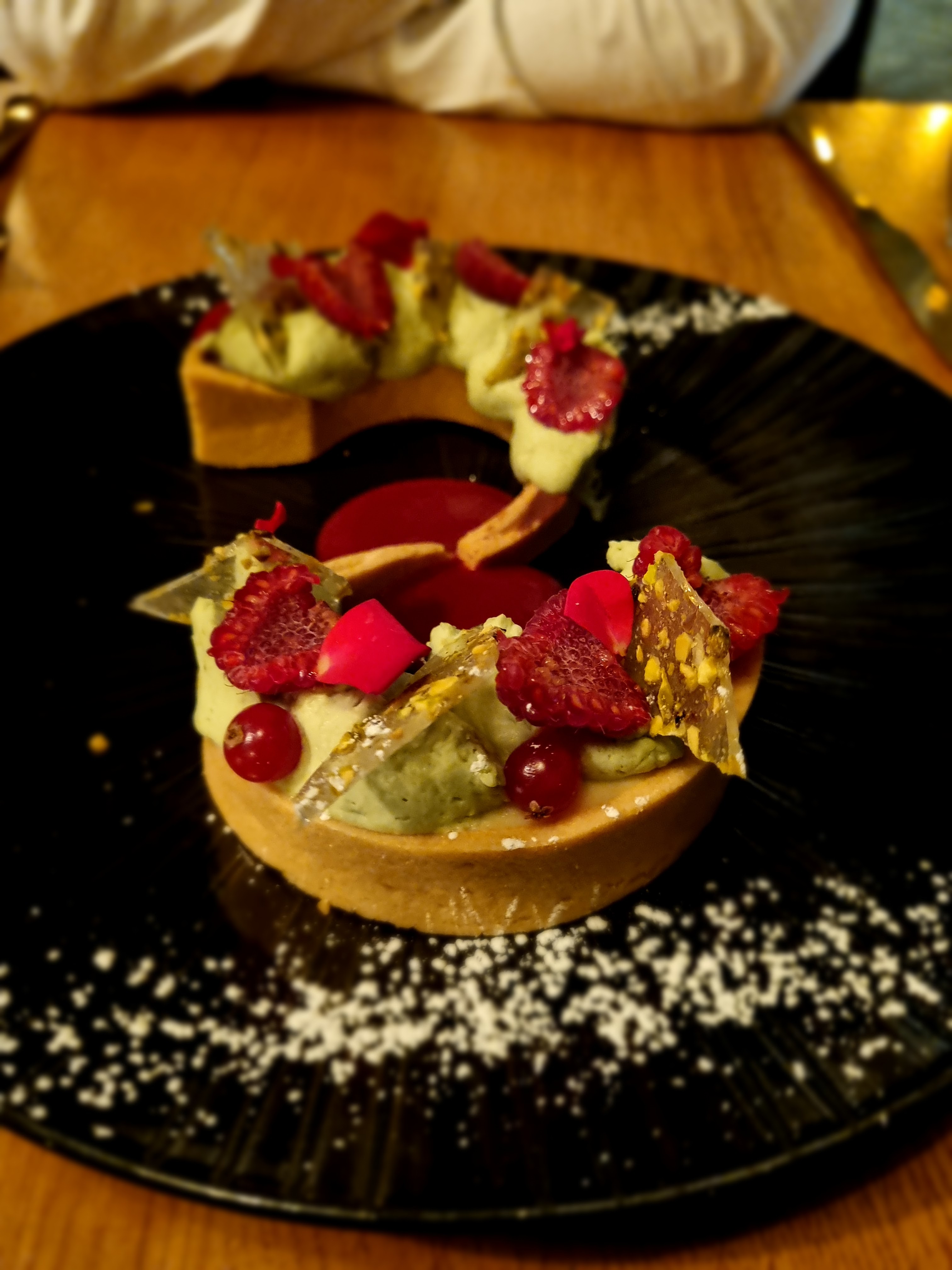 Déjeuner en terrasse très agréable avec la rue piétonne. La cuisson des pâtes était parfaite, mais un peu trop de crème dans la sauce à mon goût. En dessert j ai pris un croustillant pistache framboise, il etait 🤩. Serveurs très poli et professionnels.