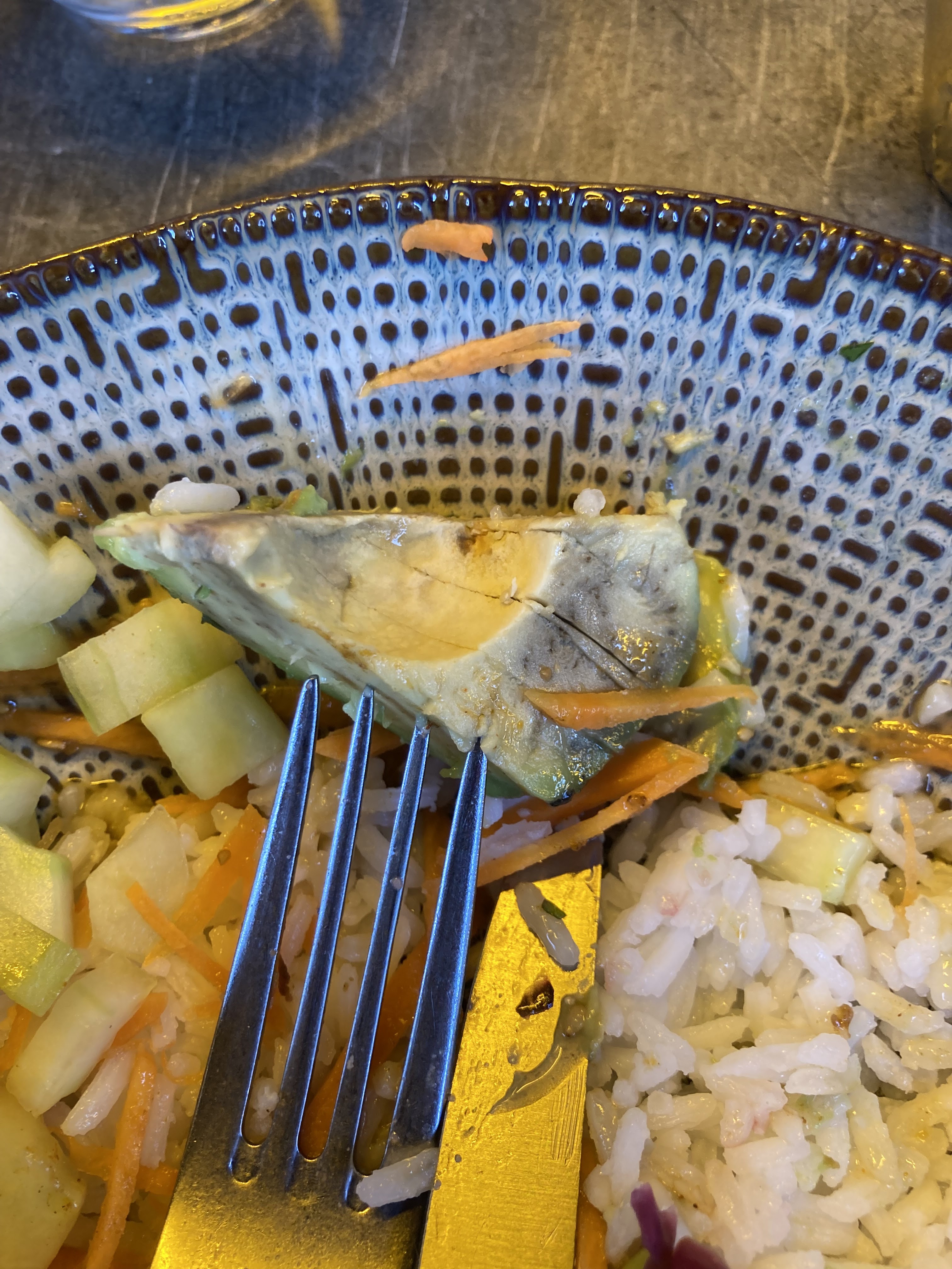 Dans le beef bowl, l’avocado était pourri. J’espère que je ne vais pas tomber malade. Incroyable !!!!!!!!!!