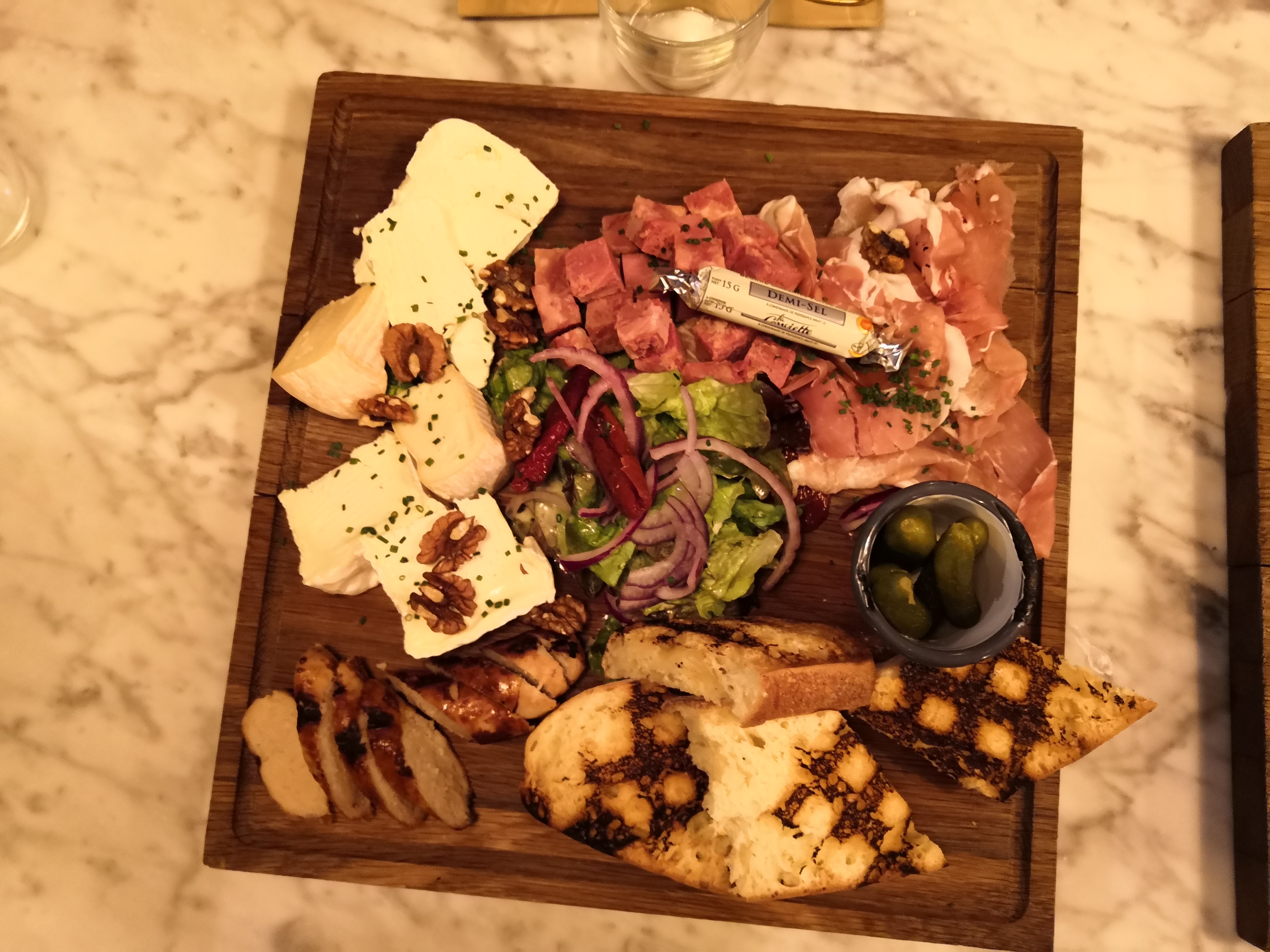 Nous avons extrêmement bien mangé, malheureusement nous étions attendu donc nous n’avons pas pu profiter d’un dessert. Le service est très professionnel. Je recommande! (Surtout les planches qui sont ultra copieuse et délicieuses)