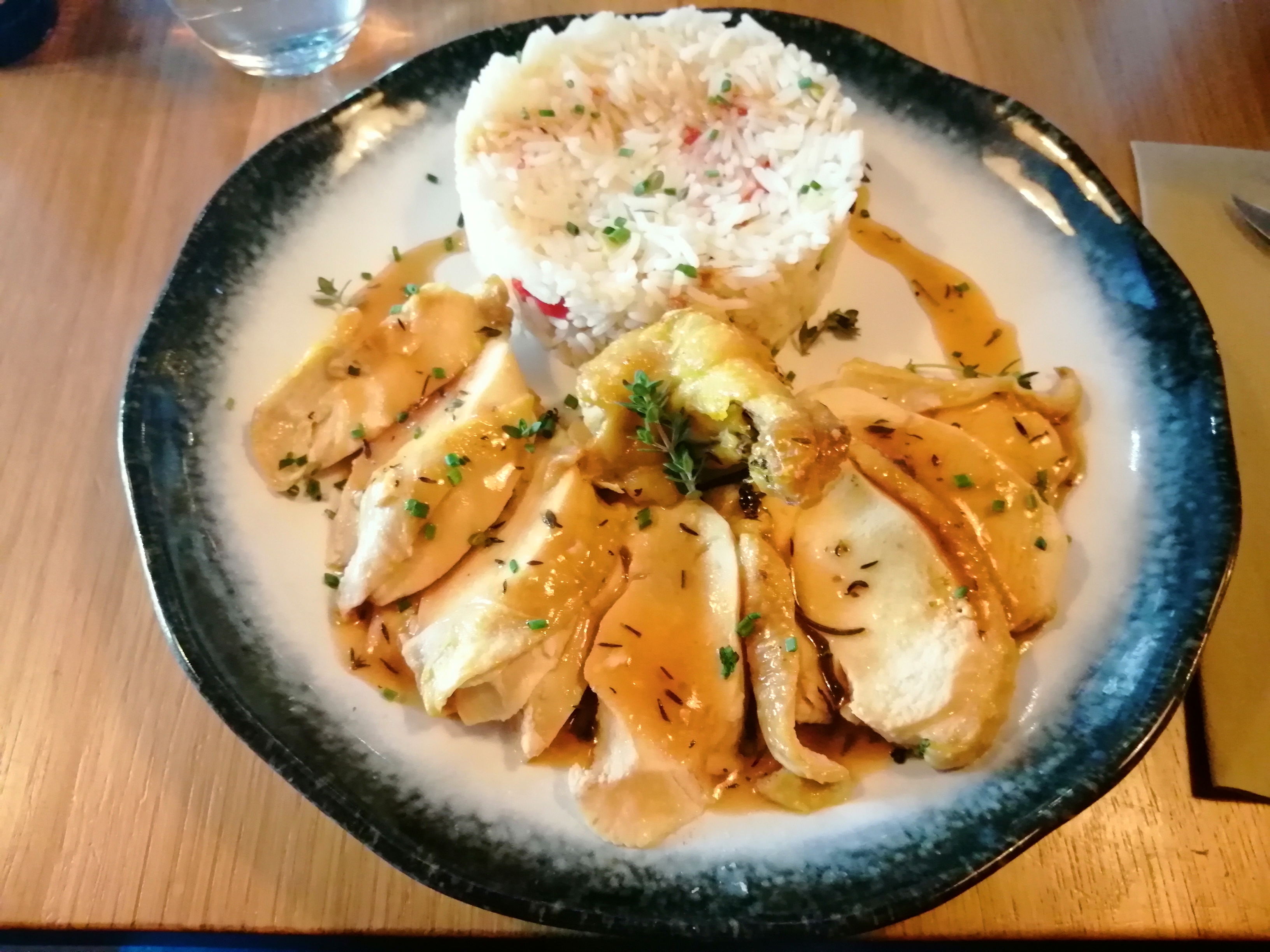 Premier déjeuner dans ce restaurant et très satisfaite du plat choisi ! Suprême de poulet, sauce thym citron zt riz. 😋
