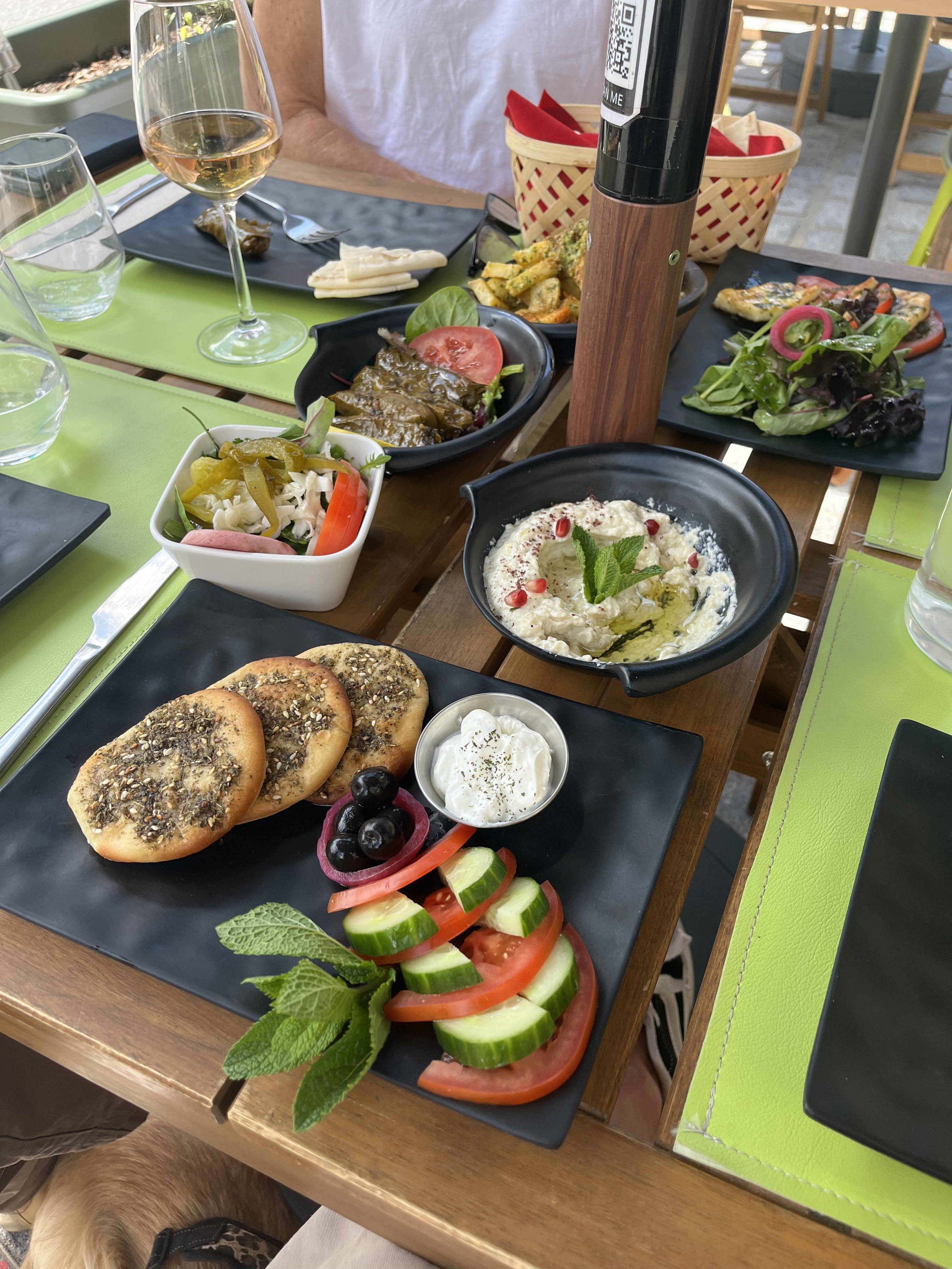 On a pris 2 salades et 1 houmous à emporter. Excellent. Très frais. Rafraîchissant. On va continuer d'explorer la carte.....
