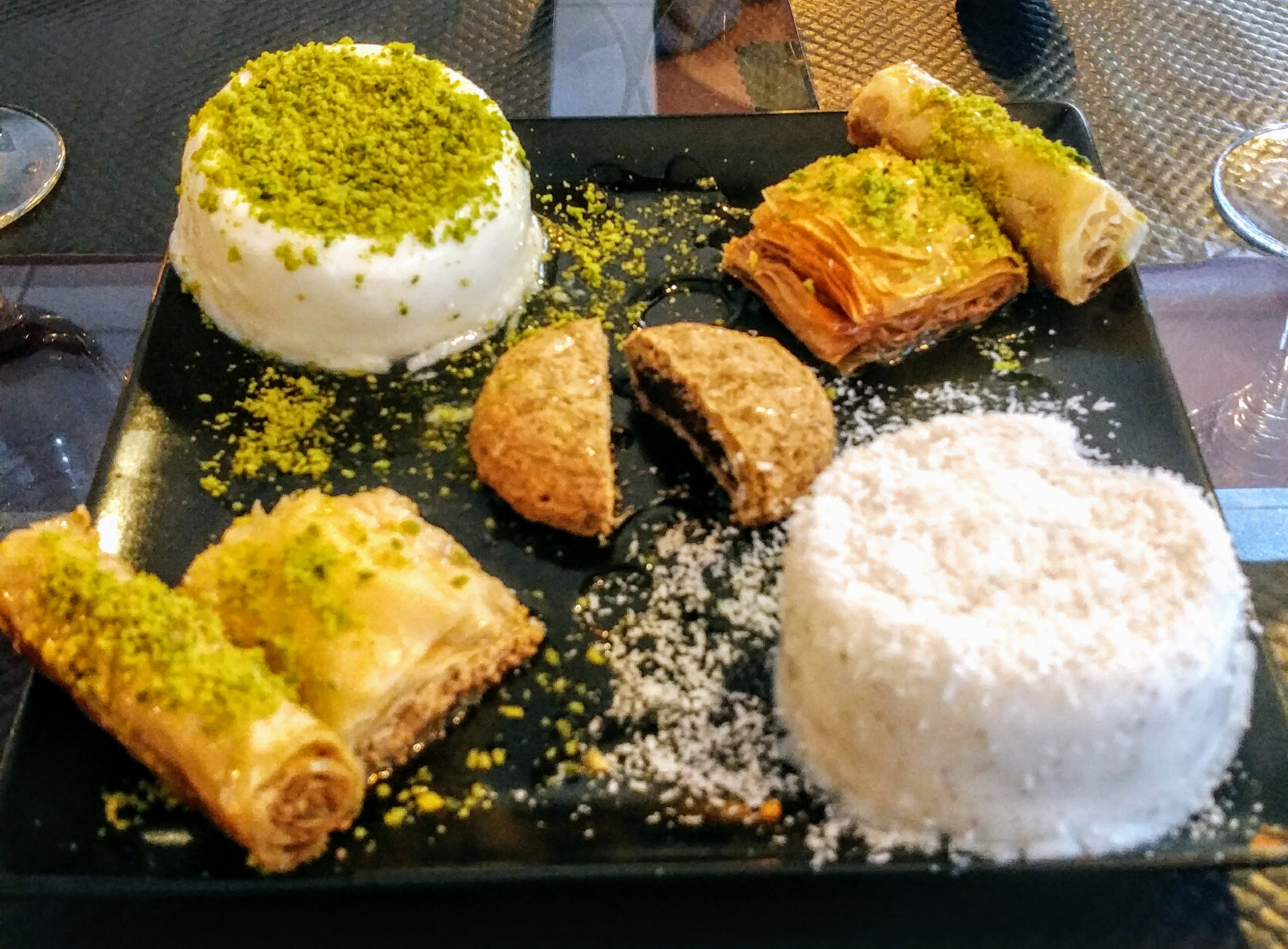 Resto terrible, petit accueil détente, mezze de dingue, vraiment hyper bon, dessert Light avec les petites pistaches, digestif local, un très bon moment avec ma fille qui ne demande qu'à revenir